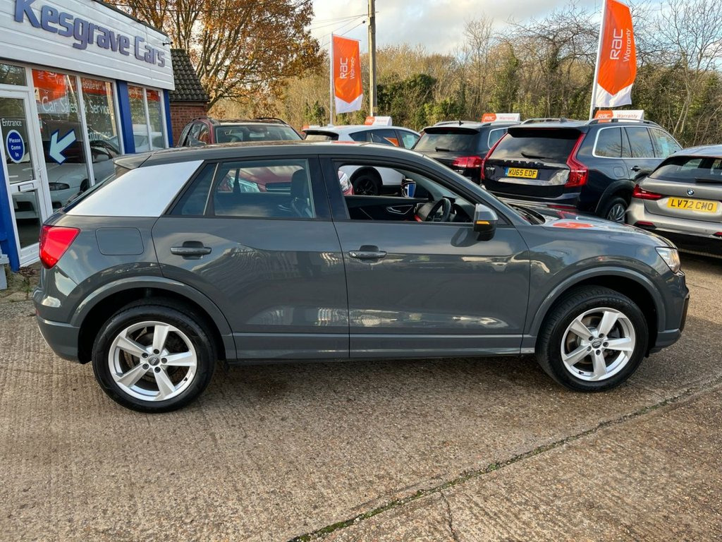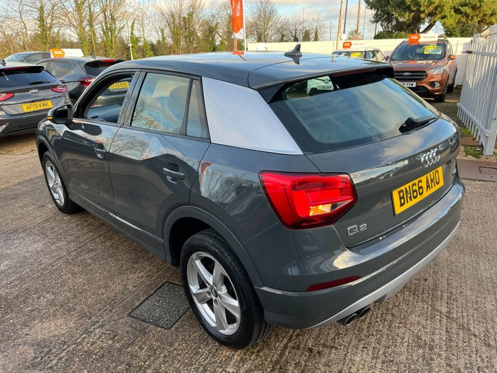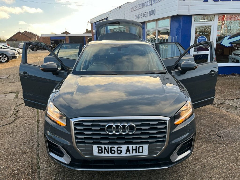 This 2017 Audi Q2 TFSI Sport is a stylish and practical compact SUV that has had just one former owner and comes with a clear vehicle history check. Powered by a responsive 1.4 litre Euro 6 petrol engine, it delivers an impressive 0 to 60mph time of 8.5 seconds while maintaining excellent efficiency. It achieves up to 51 miles per gallon, making it more economical than many similar vehicles. This example has covered 90,315 miles and will be supplied with two keys, a three month RAC warranty with options to extend, and part exchanges are welcome. The Sport trim level provides a strong level of equipment, including Bluetooth connectivity and the Audi Smartphone Interface, offering support for Android Auto and Apple CarPlay. The MMI Navigation system uses SD card data and is paired with a 7 inch colour display. Comfort and convenience are assured with manual air conditioning, cruise control and a light and rain sensor that activates the headlights automatically. Rear parking sensors are fitted to support everyday manoeuvres. This Q2 also benefits from several desirable upgrades, including the Audi Sound System, Nano Grey paint and the Manhattan Grey exterior styling elements. The interior features Sport Seats in Index Cloth with Rock Grey leatherette accents, complemented by red anodised inlays and aluminium details. Additional highlights include progressive steering, Audi Drive Select, electrically adjustable heated door mirrors and a comprehensive suite of safety systems suc Index Cloth - Sport Seats - Black-Silver, Audi Sound System, Rear Parking Sensors, C-Pillar Blade in Manhattan Grey - Metal, Nano Grey, 17in Alloy Wheels - 5-Arm Star Design, 2 x SDXC Card Readers, 2 x USB Charging Ports and 1 x AUX-IN, 3-Spoke Leather Trimmed Multi-Function S, 6-Airbag System, 8 Passive Speakers, AMI - Audi Music Interface, Air Inlet in Manhattan Grey - Metallic, Aluminium Interior Elements, Anti Theft Locking Wheel Bolts, Anti-Theft Alarm, Audi Drive Select, Audi Pre-Sense Front with Pedestrian Rec, Audi Smartphone Interface, Black Window Trims, Bluetooth Interface, Body Coloured Door Mirrors, C-Pillar Blade in Ice Silver - Metallic, CD Drive, Chrome-Plated Exhaust Tailpip