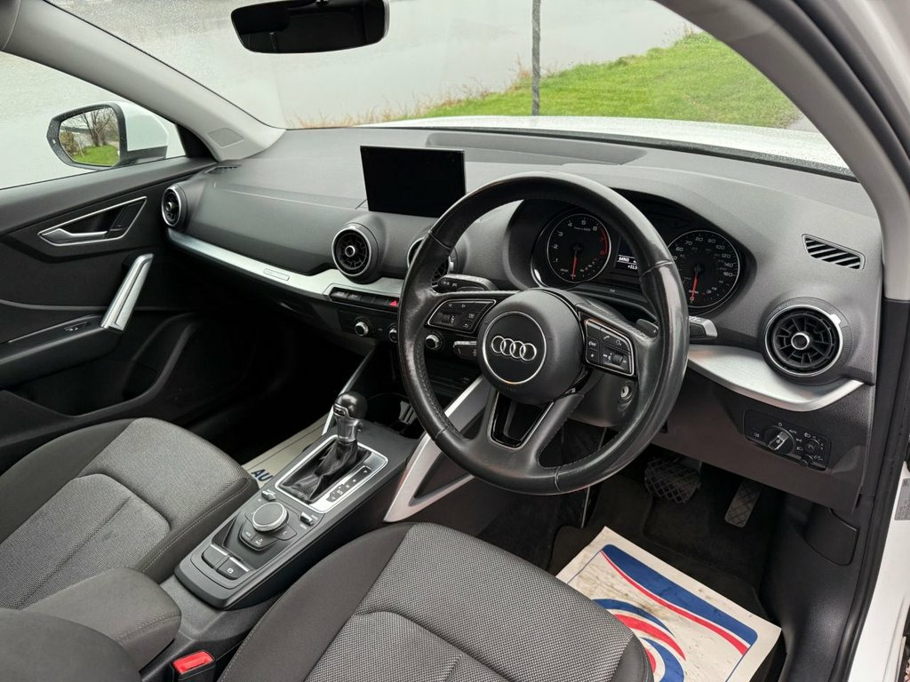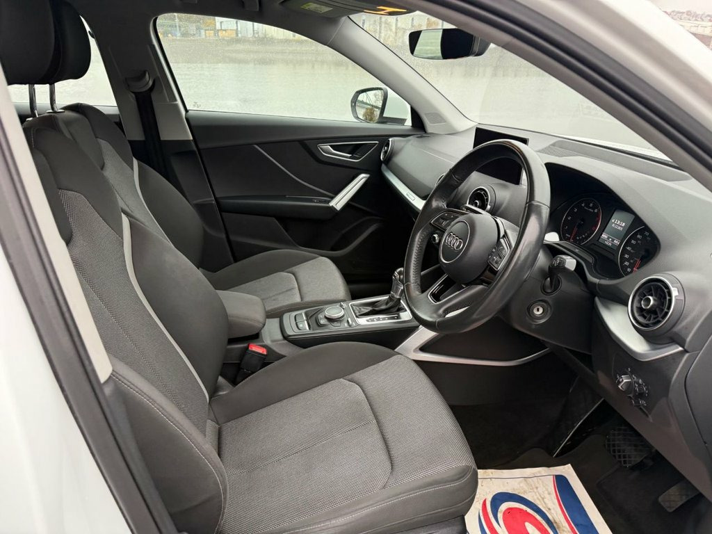 STUNNING AUDI Q2 IN IBIS WHITE WITH SPORTS BUMPERS, THIS CAR COMES WITH SOME LOVELY SPEC INCLUDING FOLDING MIRRORS, AUTO DIMMING REAR VIEW MIRROR, AUTO LIGHTS, MULTI FUNCTIONING STEERING WHEEL, CRUISE CONTROL, SAT NAV, DAB, BLUETOOTH, AIR CON AND LOTS MORE, THIS CAR HAS A FULL SERVICE HISTORY AND HAS JUST BEEN SERVICED AND MOT'D RECENTLY. PREPPED AND READY TO DRVIE AWAY TODAY. 17in Alloy Wheels - 5-Arm Star Design, 2 x SDXC Card Readers, 2 x USB Charging Ports and 1 x AUX-IN, 3-Spoke Leather Trimmed Multi-Function S, 6-Airbag System, 8 Passive Speakers, ABS - Anti-Lock Braking System, Air Inlet in Manhattan Grey - Metallic, Aluminium Interior Elements, AMI - Audi Music Interface, Anti Theft Locking Wheel Bolts, Anti-Theft Alarm, Audi Connect Infotainment Services - 3 M, Audi Drive Select, Audi Pre-Sense Front with Pedestrian Rec, Audi Smartphone Interface, Black Window Trims, Bluetooth Interface, Body Coloured Door Mirrors, C-Pillar Blade in Ice Silver - Metallic, CD Drive, Chrome-Plated Exhaust Tailpipe Trim, Contrast Bumpers in Manhattan Grey Paint, Cruise Contr