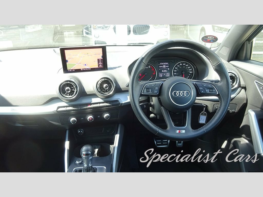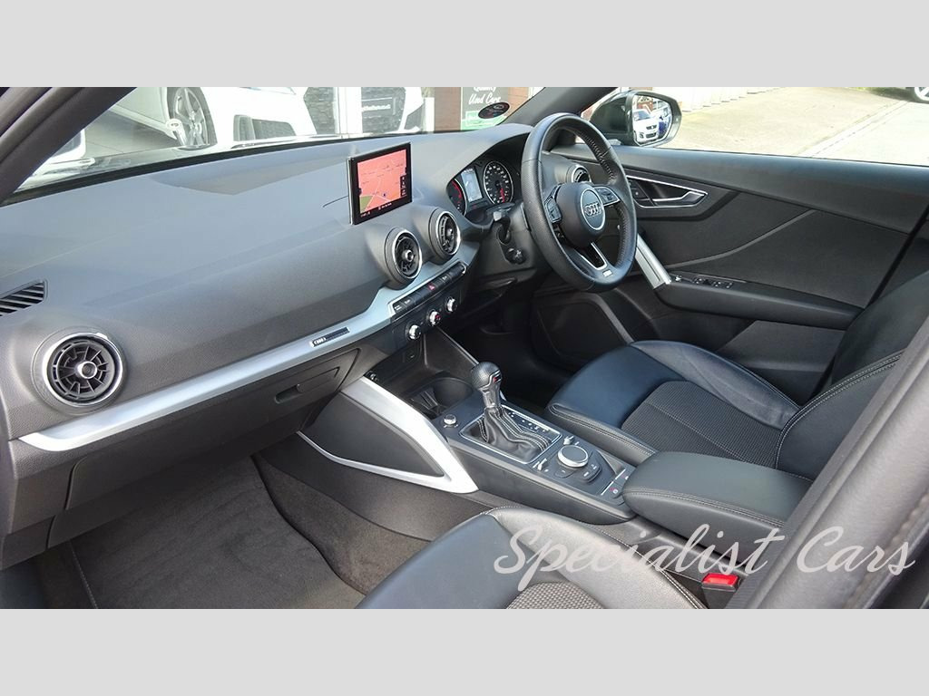 Audi Q2 S Line 1.4 TFSI S-Tronic 5dr. Mythos Black metallic. A beautiful low mileage example with full Audi service history. Superb specification: • SAT NAV • Bluetooth connectivity • 18in Alloy Wheels - 5-Spoke Y Design • 2 x SDXC Card Readers • 2 x USB Charging Ports and 1 x AUX-IN • 3-Spoke Leather Trimmed Multi-Function Sport Steering Wheel with Gear Shift Paddles • AMI - Audi Music Interface • Audi Connect Infotainment Services - 3 Month Trial • Audi Drive Select • Audi Pre-Sense Front with Pedestrian Recognition • Audi Smartphone Interface • Bluetooth Interface • C-Pillar Blade in Ice Silver - Metallic • CD Drive • Cruise Control • DAB Digital Radio • DIS - Drivers Information System - Monochrome • Door Mirrors - Electrically Adjustable and Heated with Integrated LED Side Indicators • Dynamic Suspension • Email - Calendar and Text Messages can be Displayed on your Vehicles MMI • Front Centre Armrest • Headlight Washers • Hill Hold Assist - £75.00 • Inlays - Matt Brushed Aluminium • LED Headlights with LED Rear Lights and Dynamic Rear Indicators • LED Interior Light Package • Light and Rain Sensor • Manual Air Conditioning • MMI Navigation - SD Card Based • MMI Radio Plus with 7in Colour Fixed MMI Screen and MMI Controller • Mythos Black - £550.00 • Non-Smoking Package • Rear Parking Sensors Hill Hold Assist, Mythos Black