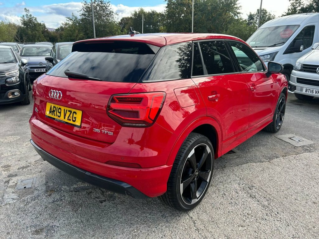 AUDI Q2 S-TRONIC 1.5 PETROL IN IMMACULATE CONDITION COMES WITH 2 KEYS AND SERVICE HISTORY ,THE COLOUR IS TANGO RED PEARL METALLIC,HALF LEATHER HEATER SEATS WITH CENTRE ARMREST,HAS SAT NAV WITH BLUETOOTH,FRONT AND REAR PARKING SENSORS,CRUISE CONROL ETC 19in Alloy Wheels - 10-Y-Spoke Design - , 2 x SDXC Card Readers, 6-Airbag System, 8 Passive Speakers, AMI - Audi Music Interface, Aluminium Interior Elements, Anti Theft Locking Wheel Bolts, Anti-Theft Alarm, Audi Connect Infotainment Services - 3 M, Audi Drive Select, Audi Pre-Sense Front with Pedestrian Rec, Audi Smartphone Interface, Black Styling Package, Black Window Trims, Bluetooth Interface, Body Coloured Bumpers, C-Pillar Blade in Brilliant Black, CD Drive, Chrome-Plated Exhaust Tailpipe Trim, Cloth Headlining in Black, Cruise Control, DAB Digital Radio, Door Mirrors - Electrically Adjustable a, Dynamic Suspension, ESC - Electronic Stabilisation Control, Electric Windows - Front, El