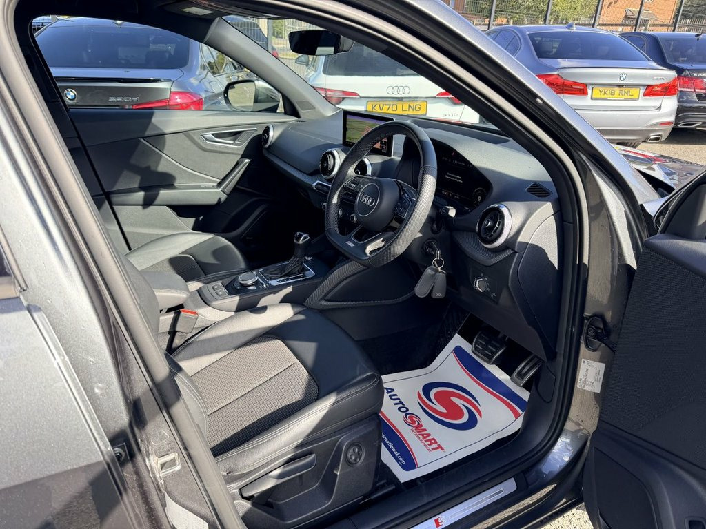 2023 Audi Q2 S LINE 35 TFSI S Tronic 150 bhp Automatic Great finance packages available. Only 21,000 miles Daytona Grey with Black interior Alloy wheels Part Leather interior Parking sensors Virtual dash Power tailgate Led daytime running lights Xenon headlights Heated seats Electric mirrors Electric windows Instant in-house finance Drive away today All finance packages can be adjusted to best suit your budget Low deposit options Credit and debit cards accepted £24500 07752058273 07763705142 02830263093 18in Alloy Wheels - 5-Segment-Spoke Desi, 2 x SDXC Card Readers, 3-Spoke Leather Trimmed Multi-Function S, 4-Way Electric Lumbar Support, 6-Airbag System, Aluminium Interior Elements, Anti Theft Wheel Bolts, Anti-Theft Alarm, Audi Connect Navigation and Infotainment, Audi Connect Remote and Control, Audi Drive Select, Audi Pre-Sense Front with Pedestrian Rec, Audi Smartphone Interface, Audi Virtual Cockpit, Auto-Dimming Rear-View Mirror, Black Window Trims, Bluetooth Interface, Body Coloured Bumpers, Body Coloured Door Mirrors, C-Pillar Blade in Platinum Grey - Matt, Cloth Headlining in Black, Cruise Control, DAB Digital Radio, Door Mirrors - Folding - Electrically Ad, Electric Windows - Fro