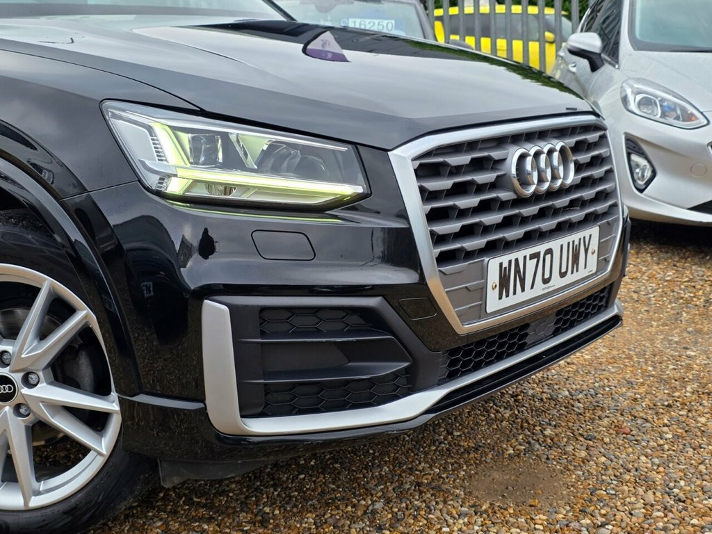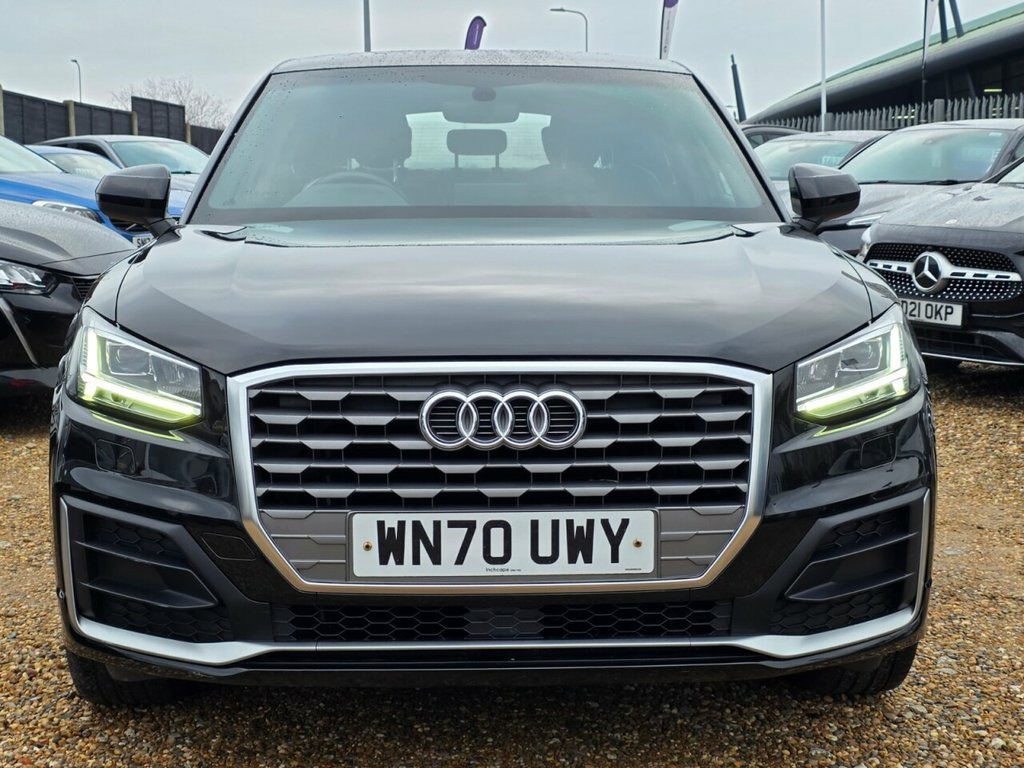 This 2020 Audi Q2 TFSI S line boasts a single owner and a full service history, ensuring excellent provenance. This stylish compact SUV features a 1.5 litre petrol engine, meeting Euro 6 emissions standards. Inside, you'll find premium Fine Nappa leather sport seats with an S embossed logo and distinctive rotor grey leatherette stripes with black stitching. Convenience is enhanced by automatic headlights activated by a light and rain sensor, manual air conditioning, and rear parking sensors for easier manoeuvring. The Audi Smartphone Interface seamlessly integrates your Android Auto or Apple CarPlay devices. The Q2 TFSI S line offers a dynamic driving experience, accelerating from 0 to 60mph in just 8.5 seconds, demonstrating its responsive performance. This particular vehicle's clear history check and single ownership further highlight its well cared for status, setting it apart from other models on the market. It represents a well maintained and feature rich option for those seeking an Audi SUV. Mythos Black, 18in Alloy Wheels - 5-Spoke Y Design, 2 x SDXC Card Readers, 3-Spoke Leather Trimmed Multi-Function S, 6-Airbag System, 8 Passive Speakers, AMI - Audi Music Interface, Aluminium Interior Elements, Anti Theft Locking Wheel Bolts, Anti-Theft Alarm, Audi Connect Infotainment Services - 3 M, Audi Drive Select, Audi Pre-Sense Front with Pedestrian Rec, Audi Smartphone Interface, Black Window Trims, Bluetooth Interface, Body Coloured Bumpers, Body Coloured Door Mirrors, C-Pillar Blade in Titanium Grey - Matt, CD Drive, Chrome-Plated Exhaust Tailpipe Trim, Cloth Headlining in Black, Cruise Control, DAB Digital Radio, Door Mirrors - Electrically Adjustable a, Dynamic Suspension, ESC -