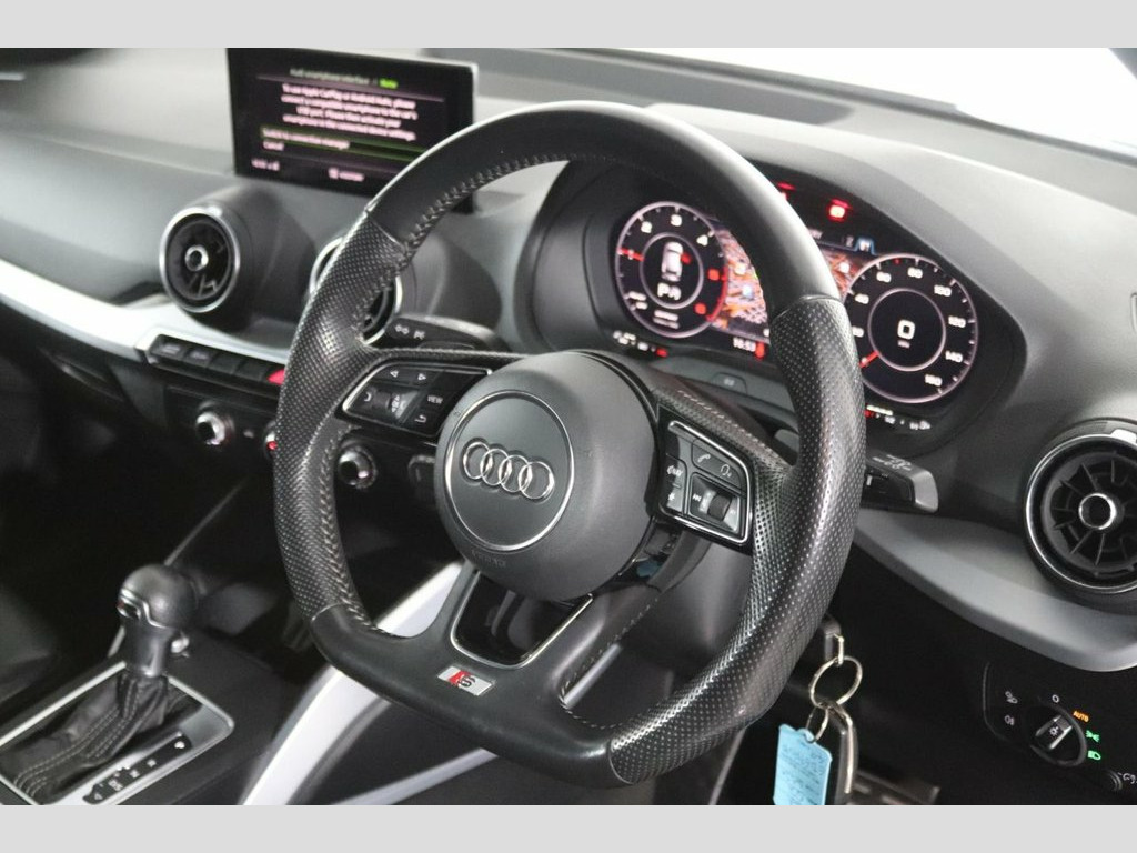 This well maintained Audi Q2 S Line finished in Ibis White looks fantastic complemented by 18 inch Alloy Wheels, S Line Body Styling and LED Headlights. Find your way with integrated SATELLITE NAVIGATION with Pop Up LCD Display. Keep connected with Audi Smart Phone Interface with APPLE CARPLAY and ANDROID AUTO. Park in ease with REAR PARKING SENSORS. Keep connected with BLUETOOTH phone system. Listen to your music through DAB Digital Radio and Audi Music Interface. Comfortable to drive with AIR CONDITIONING and CRUISE CONTROL. Sit in luxury with 1/2 LEATHER Upholstery and Sports S Line Seats. Well equipped with POWER TAILGATE, Power-Folding Mirrors, Auto Headlights and Rain-Activated Wipers. Also fitted with Multifunctional Paddle Shifting Flat Bottomed Steering Wheel, ISOFIX Seats, Audi Drive Select, Alarm, Immobiliser and Remote Door Locking with 2 x keys. Buy in confidence with FULL SERVICE HISTORY with 5 x Documented Services. MMI Navigation - SD Card Based, Audi Smartphone Interface, Rear Parking Sensors, Bluetooth Interface, DAB Digital Radio, Manual Air Conditioning, Cruise Control, 18in Alloy Wheels - 5-Spoke Y Design, Ibis White, LED Headlights with LED Rear Lights and , Flat-Bottomed 3-Spoke Leather-Trimmed Mu, Pulse Cloth-Leather - Sport Seats with S, Power Operated Tailgate, Light and Rain Sensor, ISOFIX Child Seat Mounting for Front Pas, Audi Drive Select, Anti-Theft Alarm, 2 x SDXC Card Readers, 3-Spoke Leather Trimmed Multi-Function S, 6-Airbag System, 8 Passive Speakers, AMI - Audi Music Interface, Aluminium Interior Elements, Anti Theft Locking Wheel Bolts, Audi Connect Infotainment Services - 3 M, Au