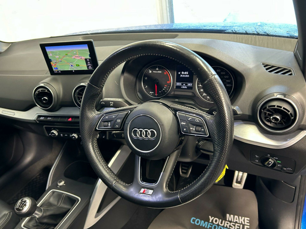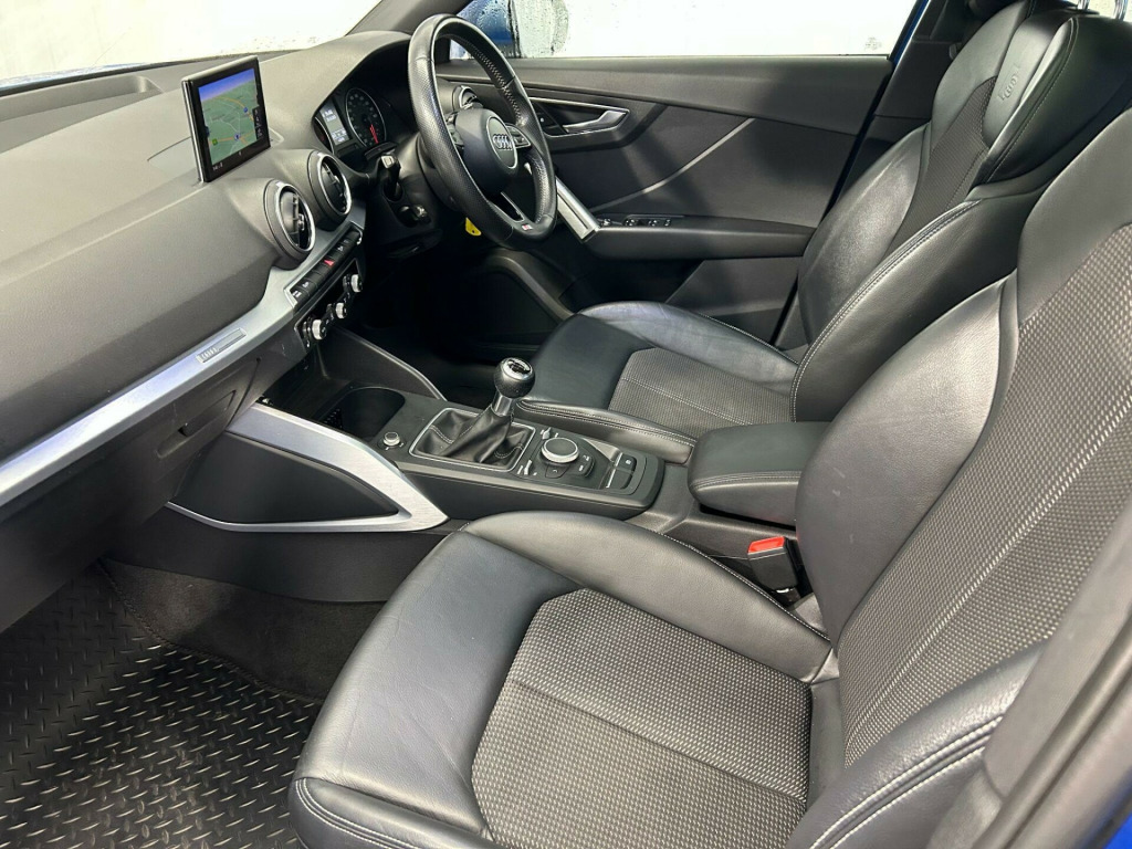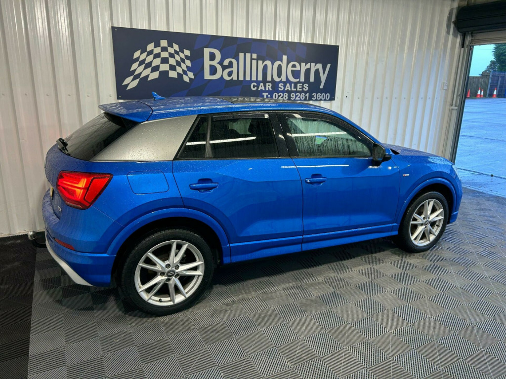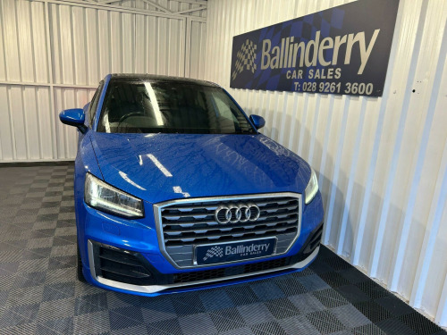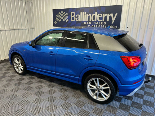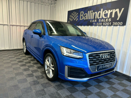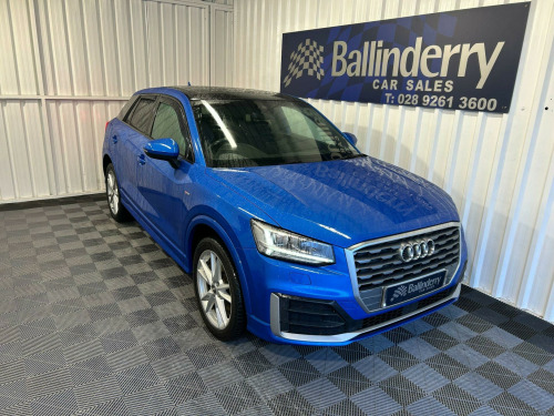 GREAT EXAMPLE OF THIS AUDI Q2 1.6 TDI S LINE IN BLUE: SPEC INCLUDES** GLASS PAN SUNROOF** 18'' ALLOYS** CRUISE CONTROL** PRIVACY GLASS** HALF LEATHER SPORTS SEATS** HEATED SEATS** SAT NAV** ONLY £35 ROAD TAX** NEW TIMING BELT & WATER PUMP** FULL YEAR MOTLOW RATE FINANCE DEALS AVAILABLE WITH NO DEPOSIT REQUIRED.ALL TRADE IN`S WELCOME.TELEPHONE MARK OR STUART ON 02892 613600 OR 07802 396444. 18in Alloy Wheels - 5-Spoke Y Design, 2 x SDXC Card Readers, 2 x USB Charging Ports and 1 x AUX-IN, 3-Spoke Leather Trimmed Multi-Function Sport Steering Wheel, 6-Airbag System, 8 Passive Speakers, AMI - Audi Music Interface, Aluminium Interior Elements, Anti Theft Locking Wheel Bolts, Anti-Theft Alarm, Audi Drive Select, Audi Pre-Sense Front with Pedestrian Recognition, Audi Smartphone Interface, Black Window Trims, Bluetooth Interface, Body Coloured Bumpers, Body Coloured Door Mirrors, C-Pillar Blade in Titanium Grey - Matt, CD Drive, Chrome-Plated Exhaust Tailpipe Trim, Cloth Headlining in Black, Cruise Control, DAB Digital Radio, DIS - Drivers Information System - Monochrome, Door Mirrors - Electrically Adjustable and Heated with Integrated LED Side Indicators, Dynamic Suspension, ESC - Electronic Stabilisation Control, Electric Windows - Front, Electromechanical Parking Brake, Electronically Operated Child Locks, Extended and Proactive Pedestrian Protection, First Aid Kit and Warning Triangle, Floor Mats with Contrast Stitching, Front Centre Armrest, Front Underbody Guard and Rear Diffuser Trim in Selenite Silver Finish, Front Windscreen with Grey Tinted Sunband, Headlight Washers, ISOFIX Child Seat Mounting for Front Passenger with Airbag Deactivation and Outer Rear Seats, Illuminated Door Sill Trims with S Logo, Inlays - Matt Brushed Aluminium, LED Headlights with LED Rear Lights and Dynamic Rear Indicators, LED Interior Light Package, Light and Rain Sensor, MMI Navigation - SD Card Based, MMI Radio Plus with 7in Colour Fixed MMI Screen and MMI Controller, Manual Air Conditioning, Multi Collision Brake Assist, Non-Smoking Package, Pedals in Stainless Steel, Progressive Steering, Remote Central Locking, S Line Badges on the Front Wings, S Line Design Body Styling, Seat Belt Monitoring, Split Folding Rear Seat Bench - 60-40 or Fully, Steering Wheel - Height and Reach Adjustable, Storage Compartments, Tool Kit and Car Jack, Tyre Pressure Warning Light, Tyre Repair Kit, Voice Control System.