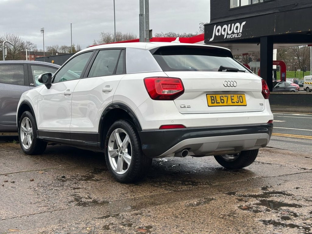 Drive away today! This car has been fully prepped and is ready to drive away same day. This This 2017 Audi Q2 TDI Sport presents an exceptional opportunity with its remarkably low mileage of just 54,160 miles for its age, complemented by a full service history. This stylish compact SUV, featuring a 1.6 litre Euro 6 diesel engine, offers a compelling blend of practicality and technology. Inside, you'll find convenient features such as Apple Carplay, Navigation, cruise control, handsfree, two USB charging ports and an AUX IN socket, alongside a voice control system for effortless operation. The Sport trim level ensures a well equipped cabin, with the MMI system capable of displaying emails, calendar appointments, and text messages, keeping you connected on the go. For passenger comfort, there are three rear head restraints, and the vehicle is secured with remote central locking. The Audi Q2 TDI Sport stands out with its impressive fuel economy, achieving an outstanding 64 miles per gallon, which indicates it is more economical than many other vehicles in its class. Furthermore, its low CO2 emissions and placement in a low insurance group highlight its cost effectiveness for everyday driving. These factors combined make this Q2 a sensible and appealing choice for those seeking a premium compact SUV that balances efficiency, technology, and a well maintained provenance. Audi Parking System Plus, Ibis White, Hill Hold Assist, LED Interior Light Package, Door Mirrors - Electrically Folding with, Privacy Glass, 17in Alloy Wheels - 5-Arm Star Design, 2 x SDXC Card Readers, 2 x USB Charging Ports and 1 x AUX-IN, 3-Spoke Leather Trimmed Multi-Function S, 6-Airbag System, 8 Passive Speakers, ABS - Anti-Lock Braking System, AMI - Audi Music Interface, Air Inlet in Manhattan Grey - Metallic, Aluminium Interior Elements, Anti Theft Locking Wheel Bolts, Anti-Theft Alarm, Audi Connect Infotainment Services - 3 M, Audi Drive Select, Audi Pre-Sense Front with Pedestrian Rec, Audi Smartphone Interface, Black Window Trims, Bluetooth Interface, Body Coloured Door Mirrors, C