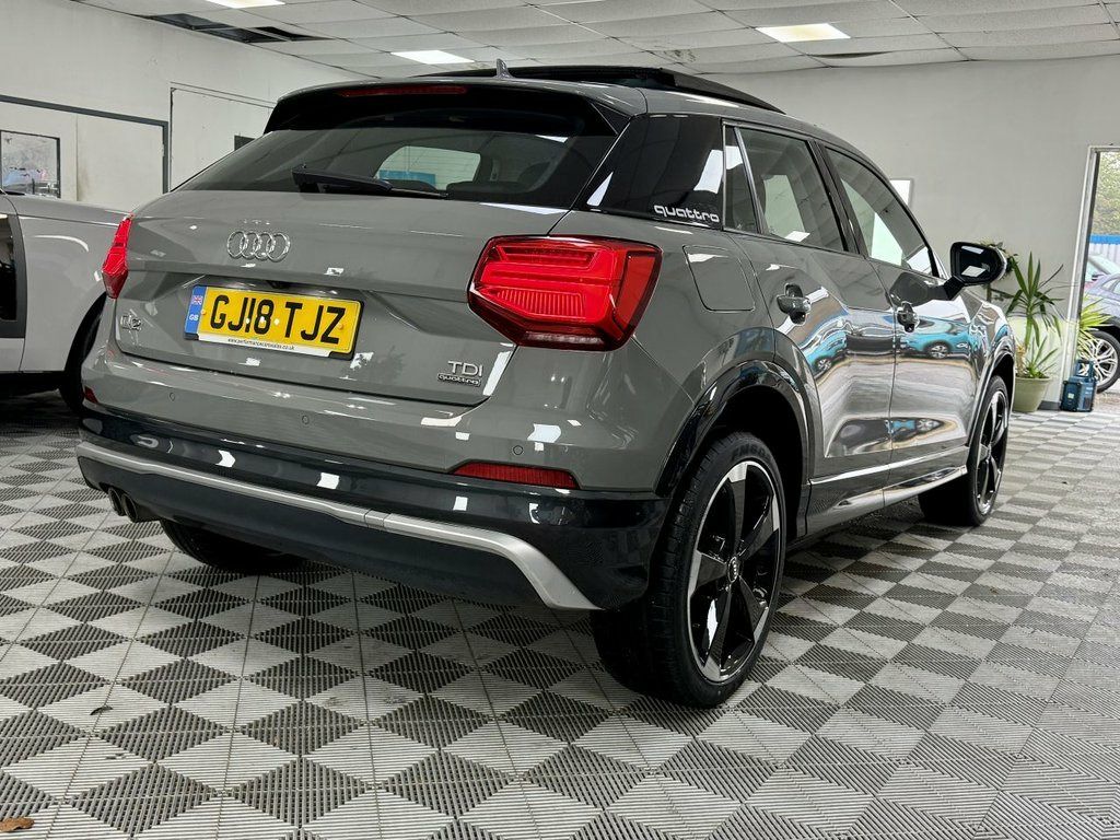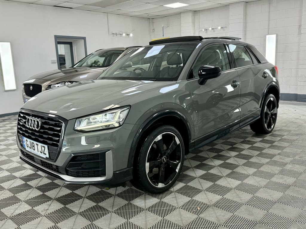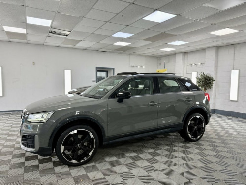 Lovely Big Specification Audi Q2 edition 1 In Nano Grey With Full Black Leather Leather Interior. Vehicle Comes With Service History Including a New Service, A New 12 Months MOT And 6 Months Months Nation Wide Warranty. Big Specification Panoramic Glass Sunroof, 19in Alloy Wheels - 5-Arm Rotor Design A, 2 x SDXC Card Readers, 2 x USB Charging Ports and 1 x AUX-IN, 3-Spoke Leather Trimmed Multi-Function S, 6-Airbag System, 8 Passive Speakers, ABS - Anti-Lock Braking System, AMI - Audi Music Interface, Aluminium Interior Elements, Anti Theft Locking Wheel Bolts, Anti-Theft Alarm, Audi Connect Infotainment Services - 3 M, Audi Drive Select, Audi Pre-Sense Front with Pedestrian Rec, Audi Smartphone Interface, Black Styling Package, Black Window Trims, Bluetooth Interface, C-pillar Blade in Brilliant Black - Soli, CD Drive, Chrome-Plated Exhaust Tailpipe Trim, Contrast Bumpers in Manhattan Grey Paint, Cruise Control, DAB Digital