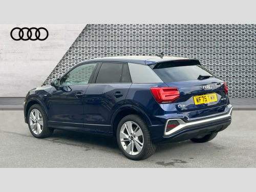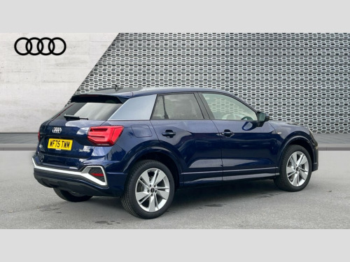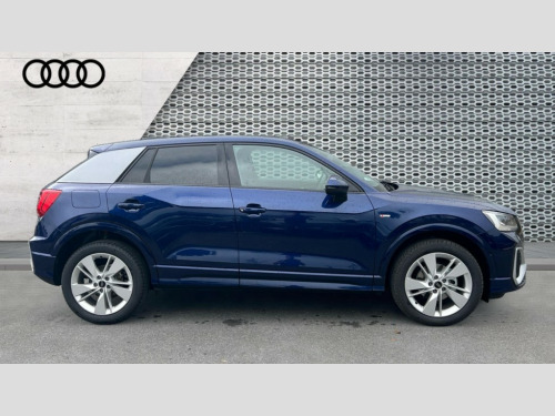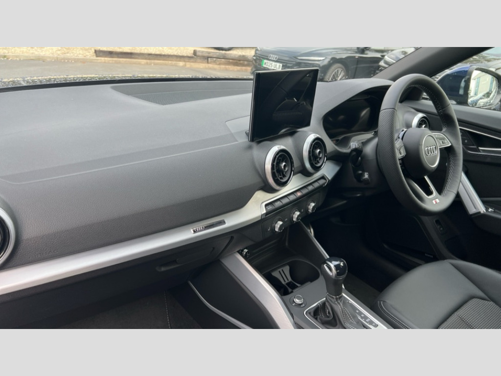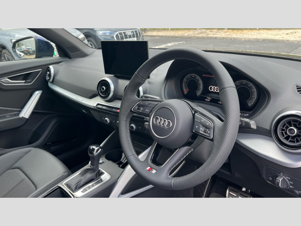Audi Q2 35 TFSI S Line 5dr S Tronic 3D map display, Audi connect navigation and infotainment includes innovative services, Audi connect remote and control connects your vehicle to your smartphone, Audi drive select: S tronic - power steering assistance + engine + gearshift (modes: comfort, auto, dynamic, efficiency, individual), Audi smartphone interface - Apple carplay/Android Auto, USB connect, 2xSDXC card readers, voice control for navi, telephone, music and 3rd party apps, Audi virtual cockpit, Automatic start/stop system with recuperation, Bluetooth interface includes bluetooth audio streaming, Camera based traffic sign recognition, Cruise control, Distraction and Fatigue warning, E-call, Jukebox hard drive memory for music (10GB), Lane departure warning, MMI navigation plus with 8.8" touchscreen, Natural voice recognition, Power operated tailgate, Progressive steering, Sport suspension, DAB Digital radio, USB type C port, Auto dimming rear view mirror, Black window trims, Body colour door mirrors, Electrically adjustable, folding, auto dimming and heated door mirrors with integrated LED side indicators, Front windscreen with grey tinted sunband, LED daytime running lights, LED headlights with dipped beam, high beam, position lights, indicators, LED rear lights, LED third brake light, Privacy glass - dark tinted rear and rear side windows from B-pillar backwards, Rear side wing doors, Rear wiper, S Line badges on the front wings, S Line body styling - front and rear bumpers, side skirts, radiator grille, rear diffuser insert and front air intakes, Variable front intermittent wipers, Wheel arch trims in manhattan grey, 12V socket in front, 3 seat bench in 2nd row, 3 spoke multi-function leather steering wheel with S badging, 4-way electric lumbar support for front seats including manual seat height adjustment for both front seats, 60/40 split folding rear seat bench, Black carpets, Black cloth headlining, Front and rear head restraints, Front centre armrest, Front sport seats, Front/rear floor mats, Height/reach adjust steering wheel, Illuminated door sill trims with S logo, ISOFIX child seat mounting in front passenger and rear outer seats, Manual air conditioning, Single front passenger seat, Stainless steel pedals, Technology pack - Q2, 3x3 point rear seatbelts, 6 airbags - Front, curtain and front side airbags, Electromechanical parking brake, Electronic stabilisation control including ABS, ASR and EDL, Front passenger airbag deactivation, Hill hold assist, Pre-sense front with pedestrian recognition, Seatbelt monitoring, Tyre pressure warning light with visual and acoustic warning, Warning triangle and first aid kit, Anti theft wheel bolts, Electronically operated child locks, Remote central door locking, Thatcham category 1 alarm, Aluminium interior element, Black dashboard, Gloss black centre console, Matt brushed aluminium trim inlays, Tool kit