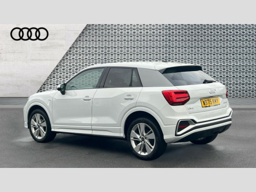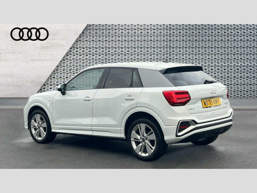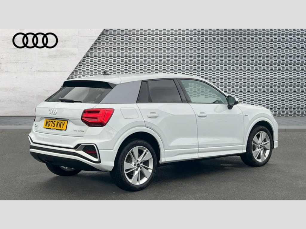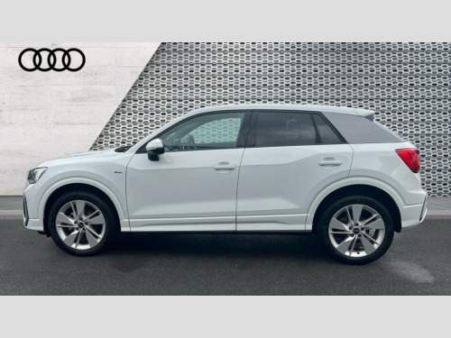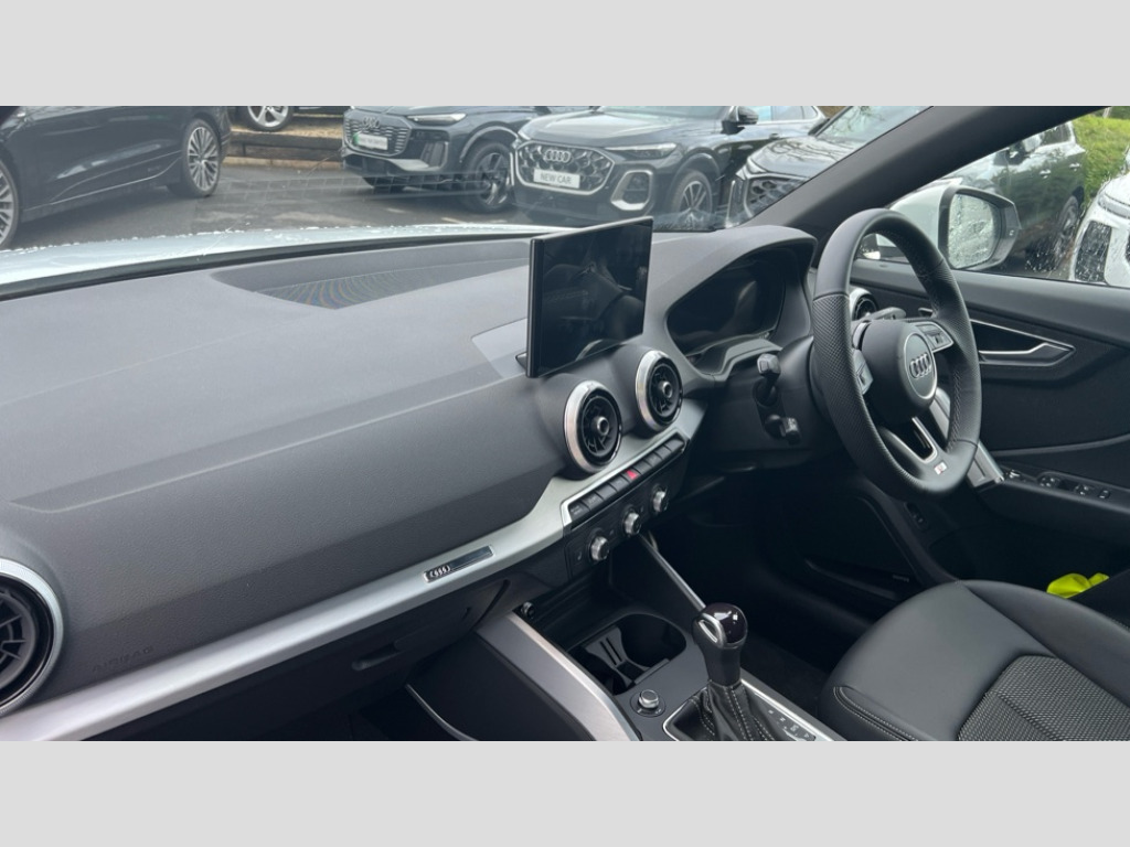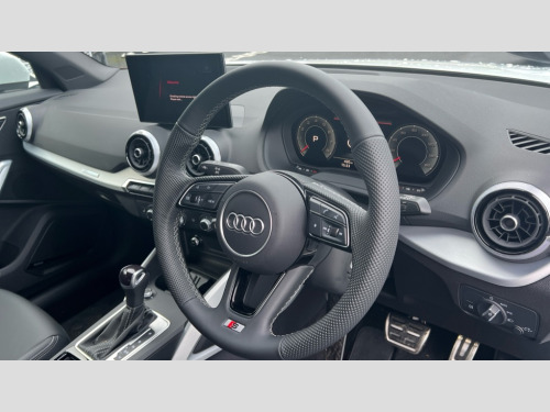 Audi Q2 35 TFSI S Line 5dr S Tronic 3D map display, Audi connect navigation and infotainment includes innovative services, Audi connect remote and control connects your vehicle to your smartphone, Audi drive select: S tronic - power steering assistance + engine + gearshift (modes: comfort, auto, dynamic, efficiency, individual), Audi smartphone interface - Apple carplay/Android Auto, USB connect, 2xSDXC card readers, voice control for navi, telephone, music and 3rd party apps, Audi virtual cockpit, Automatic start/stop system with recuperation, Bluetooth interface includes bluetooth audio streaming, Camera based traffic sign recognition, Cruise control, Distraction and Fatigue warning, E-call, Jukebox hard drive memory for music (10GB), Lane departure warning, MMI navigation plus with 8.8" touchscreen, Natural voice recognition, Power operated tailgate, Progressive steering, Sport suspension, DAB Digital radio, USB type C port, Auto dimming rear view mirror, Black window trims, Body colour door mirrors, Electrically adjustable, folding, auto dimming and heated door mirrors with integrated LED side indicators, Front windscreen with grey tinted sunband, LED daytime running lights, LED headlights with dipped beam, high beam, position lights, indicators, LED rear lights, LED third brake light, Privacy glass - dark tinted rear and rear side windows from B-pillar backwards, Rear side wing doors, Rear wiper, S Line badges on the front wings, S Line body styling - front and rear bumpers, side skirts, radiator grille, rear diffuser insert and front air intakes, Variable front intermittent wipers, Wheel arch trims in manhattan grey, 12V socket in front, 3 seat bench in 2nd row, 3 spoke multi-function leather steering wheel with S badging, 4-way electric lumbar support for front seats including manual seat height adjustment for both front seats, 60/40 split folding rear seat bench, Black carpets, Black cloth headlining, Front and rear head restraints, Front centre armrest, Front sport seats, Front/rear floor mats, Height/reach adjust steering wheel, Illuminated door sill trims with S logo, ISOFIX child seat mounting in front passenger and rear outer seats, Manual air conditioning, Single front passenger seat, Stainless steel pedals, Technology pack - Q2, 3x3 point rear seatbelts, 6 airbags - Front, curtain and front side airbags, Electromechanical parking brake, Electronic stabilisation control including ABS, ASR and EDL, Front passenger airbag deactivation, Hill hold assist, Pre-sense front with pedestrian recognition, Seatbelt monitoring, Tyre pressure warning light with visual and acoustic warning, Warning triangle and first aid kit, Anti theft wheel bolts, Electronically operated child locks, Remote central door locking, Thatcham category 1 alarm, Aluminium interior element, Black dashboard, Gloss black centre console, Matt brushed aluminium trim inlays, Tool kit