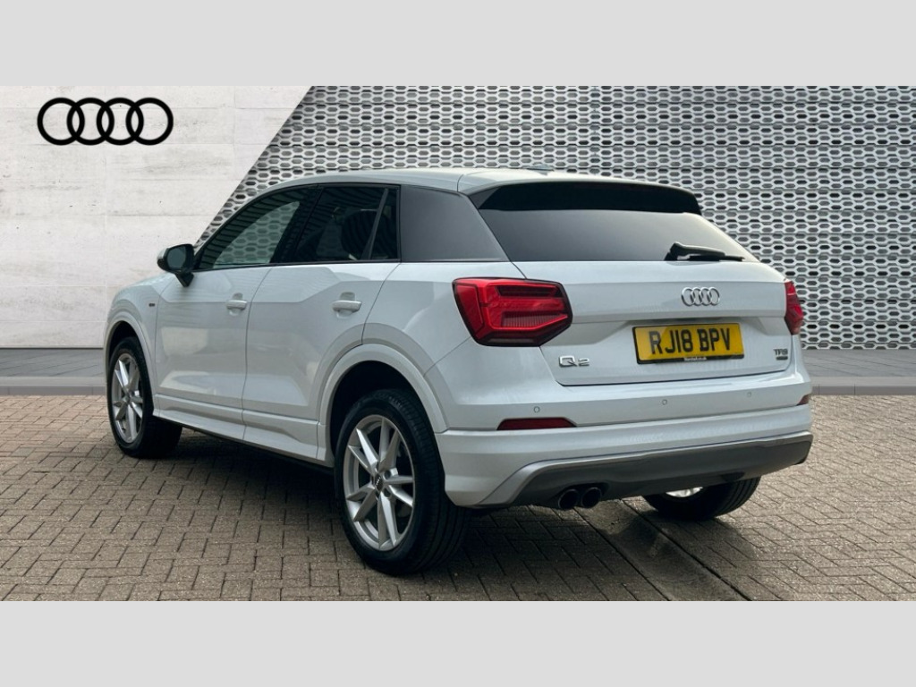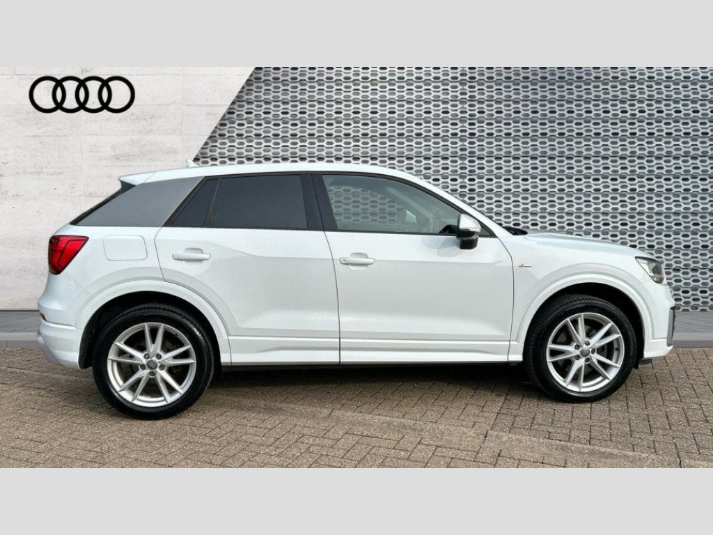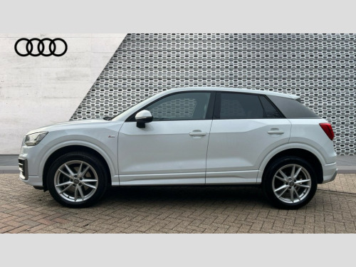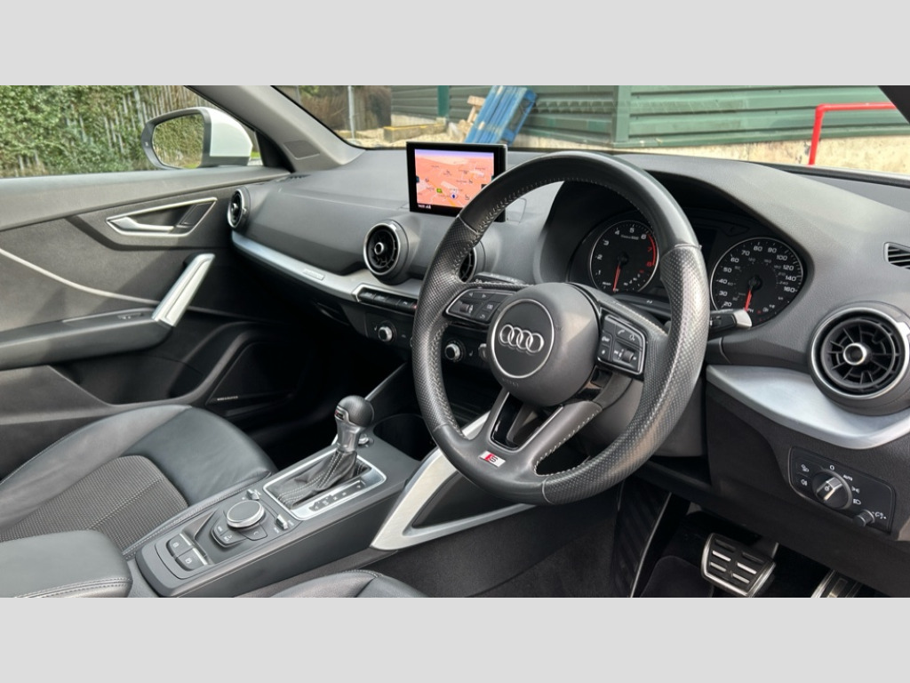 Audi Q2 2.0 TFSI Quattro S Line 5dr S Tronic Audi drive select, Audi smartphone interface, Bluetooth hands free telephone connection, MMI - Multi Media Interface control system, MMI SD card Navigation, PAS, Service interval indicator, Voice control system, Audi music interface, Aux input, CD player, DAB digital radio module, MMI radio plus with 7" colour MMI screen and MMI controller, USB port, Body colour door mirrors, Chrome exhaust tailpipe, Door mirror integrated indicators, Electrically adjustable and heated door mirrors, Front and rear electric windows, Headlight washers, LED headlights with LED rear lights + dynamic rear indicators, Rear wiper, S Line body styling, Sunband for windscreen, Black cloth headlining, Centre console with storage/cupholders, Floor mats with contrast stitching, Front and rear door pockets, Front and rear headrests, Front centre armrest, Front sports seats, Glovebox, Height adjustable front seats, Height/reach adjust steering wheel, Illuminated door sills, ISOFIX on front passenger and rear outer seats, Stainless steel pedals, Storage compartment in rear centre console, Full body colour bumper pack - Q2, Non smoking pack - Q2, 3x3 point rear seatbelts, ABS+Electronic Brake force Distribution, Curtain airbags, Driver and passenger airbags, Driver and passenger side airbags, EDL + ASR, Electrically operated child locks on rear doors, Electromechanical parking brake, ESP, Multi-Collision braking, Pre-sense front with pedestrian recognition, Seatbelt warning light, Tyre pressure monitoring system, Warning triangle and first aid kit, Locking wheel bolts, Remote central locking, Thatcham category 1 alarm + immobiliser, Aluminium interior trim, Matt brushed aluminium fascia and door trim inlays