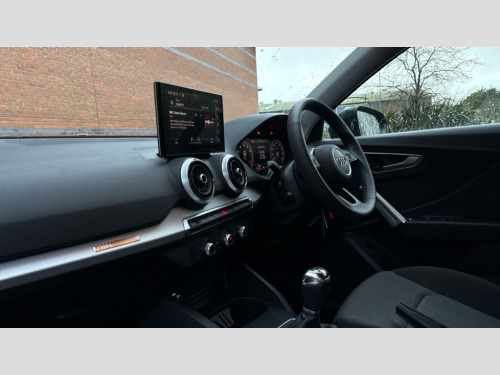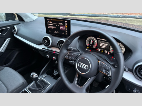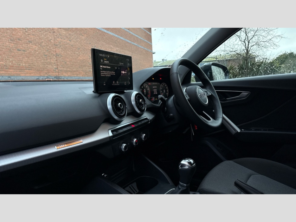 Audi Q2 30 TFSI 116 Sport 5dr 3D map display, Audi connect navigation and infotainment includes innovative services, Audi connect remote and control connects your vehicle to your smartphone, Audi drive select: power steering assistance + engine (modes: comfort, auto, dynamic, individual), Audi smartphone interface - Apple carplay/Android Auto, USB connect, 2xSDXC card readers, voice control for navi, telephone, music and 3rd party apps, Audi virtual cockpit, Automatic start/stop system with recuperation, Bluetooth interface includes bluetooth audio streaming, Camera based traffic sign recognition, Cruise control, Distraction and Fatigue warning, E-call, Jukebox hard drive memory for music (10GB), Lane departure warning, MMI navigation plus with 8.8" touchscreen, Natural voice recognition, Power operated tailgate, Progressive steering, Rear parking sensors, 6 passive loudspeakers, DAB Digital radio, USB type C port, Auto dimming rear view mirror, Black window trims, Body colour door mirrors, Contrast bumpers in Manhattan grey, Electrically adjustable, folding, auto dimming and heated door mirrors with integrated LED side indicators, Front windscreen with grey tinted sunband, LED daytime running lights, LED headlights with dipped beam, high beam, position lights, indicators, LED third brake light, Rear side wing doors, Rear wiper, Side skirts in manhattan grey, Variable front intermittent wipers, Wheel arch trims in manhattan grey, 12V socket in front, 3 seat bench in 2nd row, 3 spoke leather trimmed multi-function steering wheel with height and reach adjustable, 4-way electric lumbar support for front seats including manual seat height adjustment for both front seats, 60/40 split folding rear seat bench, Black carpets, Front and rear head restraints, Front centre armrest, Front sport seats, Front/rear floor mats, Grey cloth headlining, Height/reach adjust steering wheel, Index cloth upholstery, ISOFIX child seat mounting in front passenger and rear outer seats, Manual air conditioning, Single front passenger seat, 3x3 point rear seatbelts, 6 airbags - Front, curtain and front side airbags, Electromechanical parking brake, Electronic stabilisation control including ABS, ASR and EDL, Front passenger airbag deactivation, Hill hold assist, Pre-sense front with pedestrian recognition, Seatbelt monitoring, Tyre pressure warning light with visual and acoustic warning, Warning triangle and first aid kit, Anti theft wheel bolts, Electronically operated child locks, Remote central door locking, Thatcham category 1 alarm, Aluminium interior element, Black dashboard, Gloss black centre console, Inlays in silver grey diamond paint, Tool kit