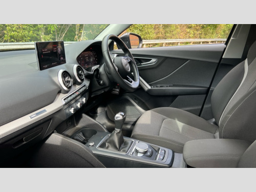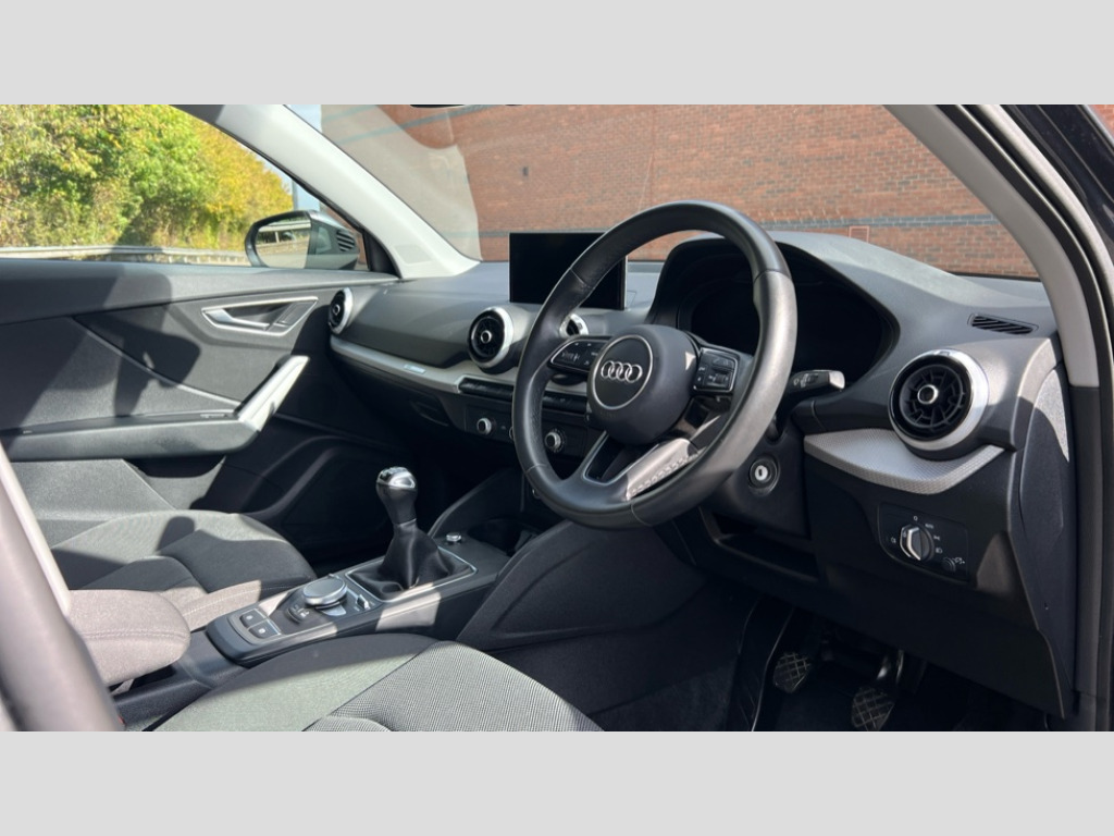 Audi Q2 30 TFSI Sport 5dr Audi connect navigation and infotainment includes innovative services, Audi connect remote and control connects your vehicle to your smartphone, Audi drive select, Audi smartphone interface, Audi virtual cockpit, Automatic start/stop system with recuperation, Bluetooth interface includes bluetooth audio streaming, Cruise control, E-call, MMI navigation plus with MMI touch, Power operated tailgate, Progressive steering, Rear parking sensors, 2 x SDXC card reader, 6 passive loudspeakers, DAB Digital radio, DVD Drive, Auto dimming rear view mirror, Black window trims, Body colour door mirrors, Electrically adjustable, folding, auto dimming and heated door mirrors with integrated LED side indicators, Front windscreen with grey tinted sunband, LED daytime running lights, LED headlights with dynamic rear indicators, LED third brake light, Rear side wing doors, Rear wiper, Side skirts in manhattan grey, Variable front intermittent wipers, Wheel arch trims in manhattan grey, 12v socket in front, 3 seat bench in 2nd row, 4-way electric lumbar support for front seats including seat height adjustment for both front seat, 60/40 split folding rear seat bench, Front and rear head restraints, Front centre armrest, Front/rear floor mats, Height/reach adjust steering wheel, Index cloth upholstery + front sports seats, ISOFIX child seat mounting in front passenger and rear outer seats, Single front passenger seat, Titanium grey cloth headlining, 3x3 point rear seatbelts, 6 airbags - Front, curtain and front side airbags, Electromechanical parking brake, Electronic stabilisation control including ABS, ASR and EDL, Front passenger airbag deactivation, Hill hold assist, Pre-sense front with pedestrian recognition, Seatbelt monitoring, Tyre pressure warning light, Warning triangle and first aid kit, Anti theft alarm, Anti theft wheel bolts, Electronically operated child locks, Aluminium interior element, Inlays in silver grey diamond paint, Tool kit