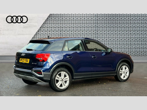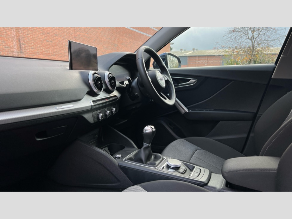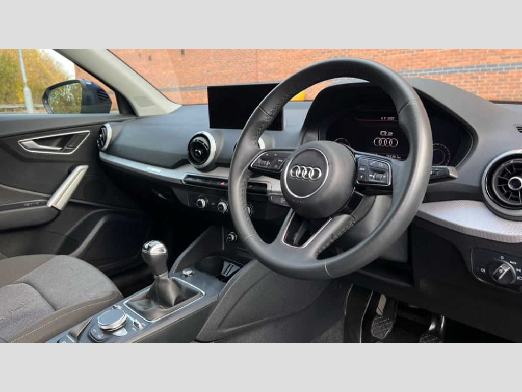 Audi Q2 30 TFSI Sport 5dr Audi connect navigation and infotainment includes innovative services, Audi connect remote and control connects your vehicle to your smartphone, Audi drive select: power steering assistance + engine (modes: comfort, auto, dynamic, individual), Audi smartphone interface - Apple carplay/Android Auto, USB connect, 2xSDXC card readers, voice control for navi, telephone, music and 3rd party apps, Audi virtual cockpit, Automatic start/stop system with recuperation, Bluetooth interface includes bluetooth audio streaming, Cruise control, E-call, MMI navigation plus with MMI touch, Power operated tailgate, Progressive steering, Rear parking sensors, 6 passive loudspeakers, DAB Digital radio, Auto dimming rear view mirror, Black window trims, Body colour door mirrors, Contrast bumpers in Manhattan grey, Electrically adjustable, folding, auto dimming and heated door mirrors with integrated LED side indicators, Front windscreen with grey tinted sunband, LED daytime running lights, LED headlights with dipped beam, high beam, position lights, indicators, LED third brake light, Rear side wing doors, Rear wiper, Side skirts in manhattan grey, Variable front intermittent wipers, Wheel arch trims in manhattan grey, 12V socket in front, 3 seat bench in 2nd row, 3 spoke leather trimmed multi-function steering wheel with height and reach adjustable, 4-way electric lumbar support for front seats including manual seat height adjustment for both front seats, 60/40 split folding rear seat bench, Front and rear head restraints, Front centre armrest, Front sport seats, Front/rear floor mats, Grey cloth headlining, Height/reach adjust steering wheel, Index cloth upholstery, ISOFIX child seat mounting in front passenger and rear outer seats, Manual air conditioning, Single front passenger seat, 3x3 point rear seatbelts, 6 airbags - Front, curtain and front side airbags, Electromechanical parking brake, Electronic stabilisation control including ABS, ASR and EDL, Front passenger airbag deactivation, Hill hold assist, Pre-sense front with pedestrian recognition, Seatbelt monitoring, Tyre pressure warning light with visual and acoustic warning, Warning triangle and first aid kit, Anti theft alarm, Anti theft wheel bolts, Electronically operated child locks, Remote central door locking, Aluminium interior element, Inlays in silver grey diamond paint, Tool kit