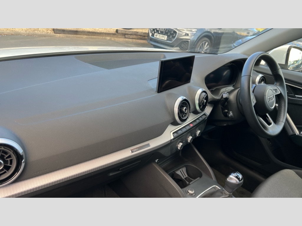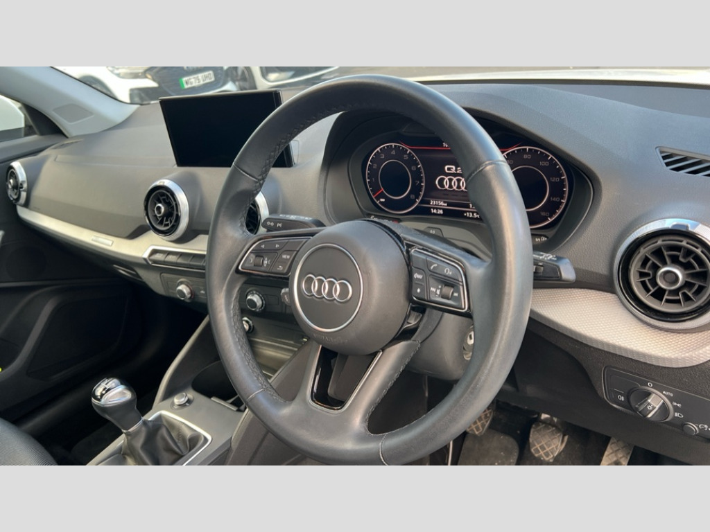 Audi Q2 30 TFSI Sport 5dr Audi connect navigation and infotainment includes innovative services, Audi connect remote and control connects your vehicle to your smartphone, Audi drive select: power steering assistance + engine (modes: comfort, auto, dynamic, individual), Audi smartphone interface - Apple carplay/Android Auto, USB connect, 2xSDXC card readers, voice control for navi, telephone, music and 3rd party apps, Audi virtual cockpit, Automatic start/stop system with recuperation, Bluetooth interface includes bluetooth audio streaming, Cruise control, E-call, MMI navigation plus with MMI touch, Power operated tailgate, Progressive steering, Rear parking sensors, 6 passive loudspeakers, DAB Digital radio, Auto dimming rear view mirror, Black window trims, Body colour door mirrors, Contrast bumpers in Manhattan grey, Electrically adjustable, folding, auto dimming and heated door mirrors with integrated LED side indicators, Front windscreen with grey tinted sunband, LED daytime running lights, LED headlights with dipped beam, high beam, position lights, indicators, LED third brake light, Rear side wing doors, Rear wiper, Side skirts in manhattan grey, Variable front intermittent wipers, Wheel arch trims in manhattan grey, 12V socket in front, 3 seat bench in 2nd row, 3 spoke leather trimmed multi-function steering wheel with height and reach adjustable, 4-way electric lumbar support for front seats including manual seat height adjustment for both front seats, 60/40 split folding rear seat bench, Front and rear head restraints, Front centre armrest, Front sport seats, Front/rear floor mats, Grey cloth headlining, Height/reach adjust steering wheel, Index cloth upholstery, ISOFIX child seat mounting in front passenger and rear outer seats, Manual air conditioning, Single front passenger seat, 3x3 point rear seatbelts, 6 airbags - Front, curtain and front side airbags, Electromechanical parking brake, Electronic stabilisation control including ABS, ASR and EDL, Front passenger airbag deactivation, Hill hold assist, Pre-sense front with pedestrian recognition, Seatbelt monitoring, Tyre pressure warning light with visual and acoustic warning, Warning triangle and first aid kit, Anti theft alarm, Anti theft wheel bolts, Electronically operated child locks, Remote central door locking, Aluminium interior element, Inlays in silver grey diamond paint, Tool kit