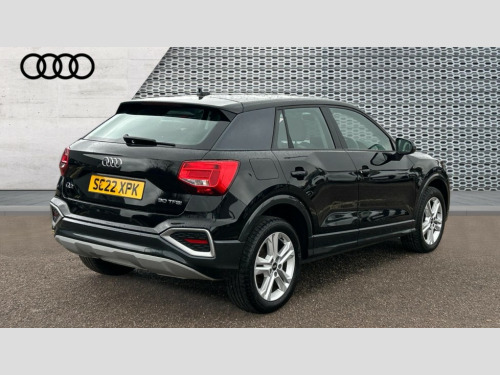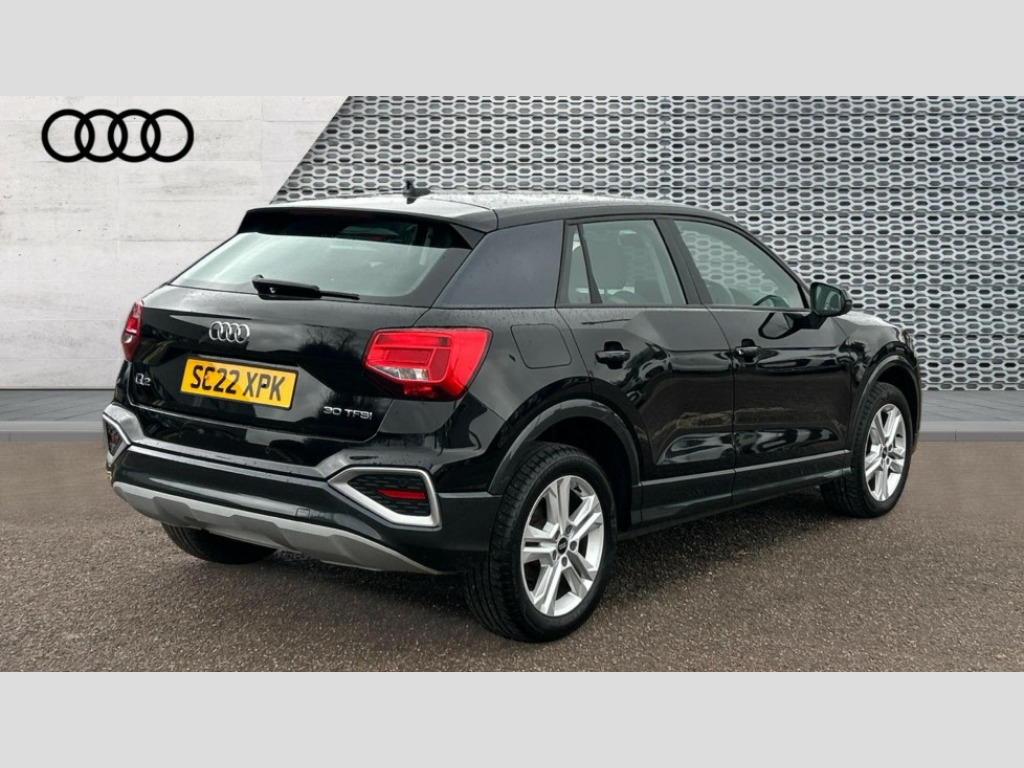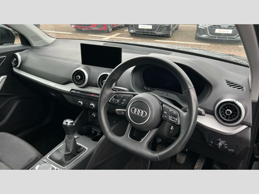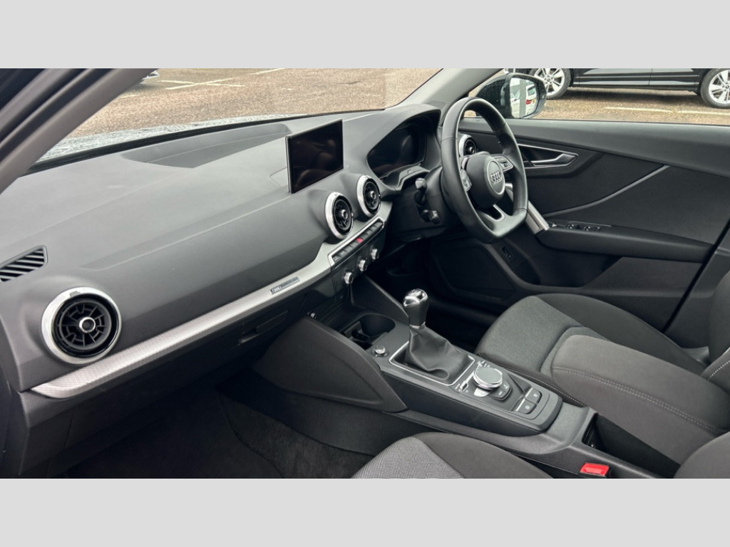 Audi Q2 30 TFSI Sport 5dr Audi connect navigation and infotainment includes innovative services, Audi connect remote and control connects your vehicle to your smartphone, Audi drive select, Audi smartphone interface, Audi virtual cockpit, Automatic start/stop system with recuperation, Bluetooth interface includes bluetooth audio streaming, Cruise control, E-call, MMI navigation plus with MMI touch, Power operated tailgate, Progressive steering, Rear parking sensors, 2 x SDXC card reader, 6 passive loudspeakers, DAB Digital radio, DVD Drive, Auto dimming rear view mirror, Black window trims, Body colour door mirrors, Electrically adjustable, folding, auto dimming and heated door mirrors with integrated LED side indicators, Front windscreen with grey tinted sunband, LED daytime running lights, LED headlights with dynamic rear indicators, LED third brake light, Rear side wing doors, Rear wiper, Side skirts in manhattan grey, Variable front intermittent wipers, Wheel arch trims in manhattan grey, 12V socket in front, 3 seat bench in 2nd row, 4-way electric lumbar support for front seats including seat height adjustment for both front seat, 60/40 split folding rear seat bench, Front and rear head restraints, Front centre armrest, Front/rear floor mats, Height/reach adjust steering wheel, Index cloth upholstery + front sports seats, Single front passenger seat, Titanium grey cloth headlining, 3x3 point rear seatbelts, 6 airbags - Front, curtain and front side airbags, Electromechanical parking brake, Electronic stabilisation control including ABS, ASR and EDL, Front passenger airbag deactivation, Hill hold assist, Pre-sense front with pedestrian recognition, Seatbelt monitoring, Tyre pressure warning light, Warning triangle and first aid kit, Anti theft alarm, Anti theft wheel bolts, Manual child locks, Aluminium interior element, Inlays in silver grey diamond paint, Tool kit