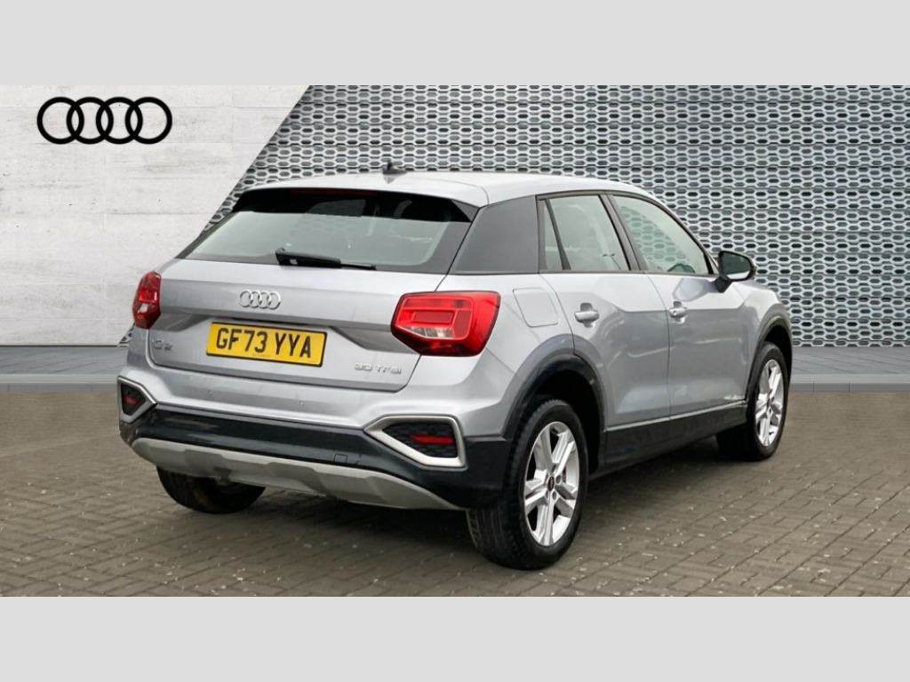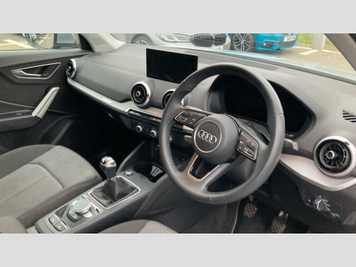 Audi Q2 30 TFSI Sport 5dr 3D map display, Audi connect navigation and infotainment includes innovative services, Audi connect remote and control connects your vehicle to your smartphone, Audi drive select: power steering assistance + engine (modes: comfort, auto, dynamic, individual), Audi smartphone interface - Apple carplay/Android Auto, USB connect, 2xSDXC card readers, voice control for navi, telephone, music and 3rd party apps, Audi virtual cockpit, Automatic start/stop system with recuperation, Bluetooth interface includes bluetooth audio streaming, Cruise control, E-call, Jukebox hard drive memory for music (10GB), MMI navigation plus with 8.3" colour MMI screen and MMI touch, Natural voice recognition, Power operated tailgate, Progressive steering, Rear parking sensors, 6 passive loudspeakers, DAB Digital radio, Auto dimming rear view mirror, Black window trims, Body colour door mirrors, Contrast bumpers in Manhattan grey, Electrically adjustable, folding, auto dimming and heated door mirrors with integrated LED side indicators, Front windscreen with grey tinted sunband, LED daytime running lights, LED headlights with dipped beam, high beam, position lights, indicators, LED third brake light, Rear side wing doors, Rear wiper, Side skirts in manhattan grey, Variable front intermittent wipers, Wheel arch trims in manhattan grey, 12V socket in front, 3 seat bench in 2nd row, 3 spoke leather trimmed multi-function steering wheel with height and reach adjustable, 4-way electric lumbar support for front seats including manual seat height adjustment for both front seats, 60/40 split folding rear seat bench, Black carpets, Front and rear head restraints, Front centre armrest, Front sport seats, Front/rear floor mats, Grey cloth headlining, Height/reach adjust steering wheel, Index cloth upholstery, ISOFIX child seat mounting in front passenger and rear outer seats, Manual air conditioning, Single front passenger seat, 3x3 point rear seatbelts, 6 airbags - Front, curtain and front side airbags, Electromechanical parking brake, Electronic stabilisation control including ABS, ASR and EDL, Front passenger airbag deactivation, Hill hold assist, Pre-sense front with pedestrian recognition, Seatbelt monitoring, Tyre pressure warning light with visual and acoustic warning, Warning triangle and first aid kit, Anti theft alarm, Anti theft wheel bolts, Electronically operated child locks, Remote central door locking, Aluminium interior element, Black dashboard, Inlays in silver grey diamond paint, Tool kit