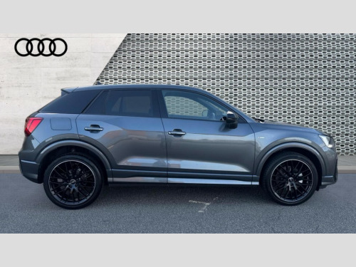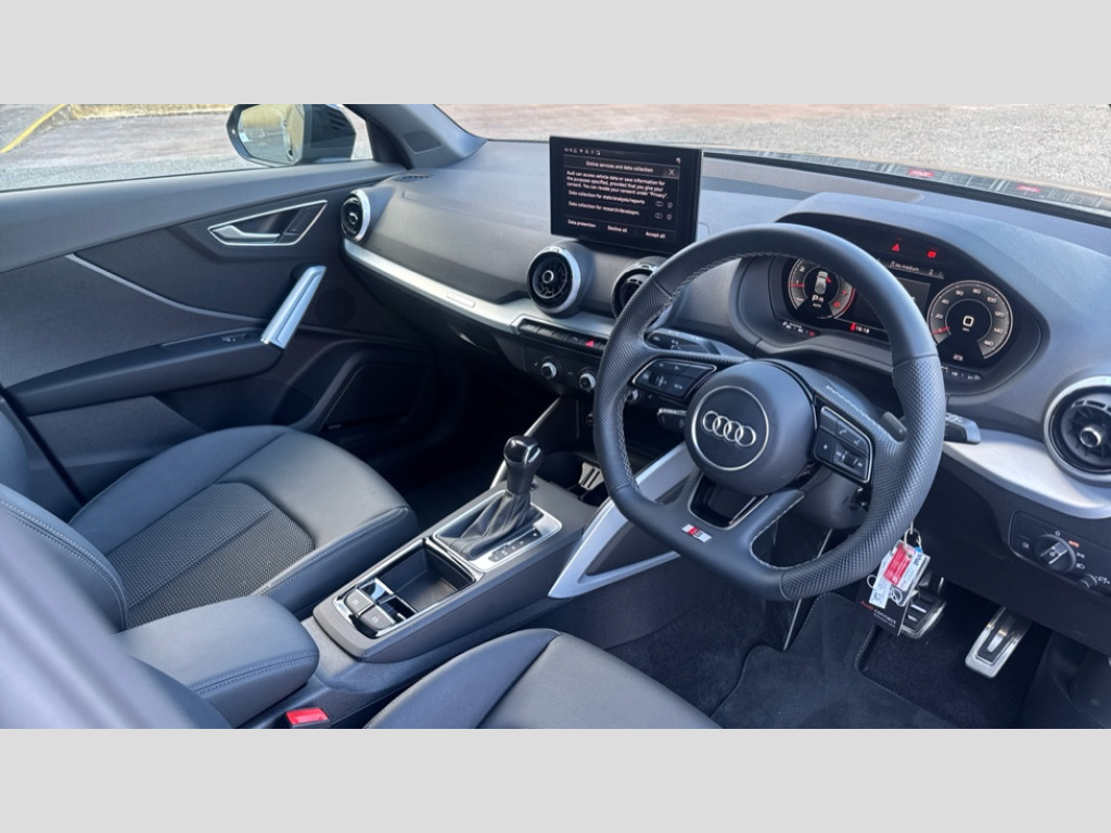 Audi Q2 35 TFSI Black Edition 5dr S Tronic 3D map display, Audi connect navigation and infotainment includes innovative services, Audi connect remote and control connects your vehicle to your smartphone, Audi drive select: S tronic - power steering assistance + engine + gearshift (modes: comfort, auto, dynamic, efficiency, individual), Audi smartphone interface - Apple carplay/Android Auto, USB connect, 2xSDXC card readers, voice control for navi, telephone, music and 3rd party apps, Audi virtual cockpit, Automatic start/stop system with recuperation, Bluetooth interface includes bluetooth audio streaming, Camera based traffic sign recognition, Cruise control, Distraction and Fatigue warning, E-call, Jukebox hard drive memory for music (10GB), Lane departure warning, MMI navigation plus with 8.8" touchscreen, Natural voice recognition, Power operated tailgate, Progressive steering, Rear parking sensors, Sport suspension, 6 passive loudspeakers, DAB Digital radio, USB type C port, Audi beam, Auto dimming rear view mirror, Black window trims, Bumper in full body colour paint finish, Electrically adjustable, folding, auto dimming and heated door mirrors with integrated LED side indicators, Front windscreen with grey tinted sunband, LED daytime running lights, LED headlights with dipped beam, high beam, position lights, indicators, LED rear lights, LED third brake light, Privacy glass - dark tinted rear and rear side windows from B-pillar backwards, Rear side wing doors, Rear wiper, Variable front intermittent wipers, Wheel arch trims in manhattan grey, 12V socket in front, 3 seat bench in 2nd row, 3 spoke flat bottomed multi-function leather sport steering wheel with gear shift paddles, 4-way electric lumbar support for front seats including manual seat height adjustment for both front seats, 60/40 split folding rear seat bench, Black carpets, Black cloth headlining, Front and rear head restraints, Front centre armrest, Front sport seats, Front/rear floor mats, Height/reach adjust steering wheel, Illuminated door sill trims with S logo, ISOFIX child seat mounting in front passenger and rear outer seats, Manual air conditioning, Single front passenger seat, Stainless steel pedals, Black styling pack - Q2, 3x3 point rear seatbelts, 6 airbags - Front, curtain and front side airbags, Electromechanical parking brake, Electronic stabilisation control including ABS, ASR and EDL, Front passenger airbag deactivation, Hill hold assist, Pre-sense front with pedestrian recognition, Seatbelt monitoring, Tyre pressure warning light with visual and acoustic warning, Warning triangle and first aid kit, Anti theft wheel bolts, Electronically operated child locks, Remote central door locking, Thatcham category 1 alarm, Aluminium interior element, Black dashboard, Gloss black centre console, Matt brushed aluminium trim inlays, Tool kit