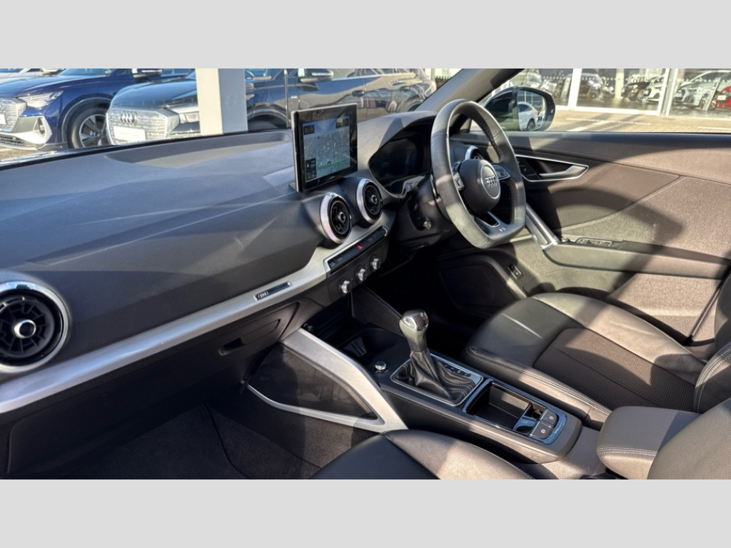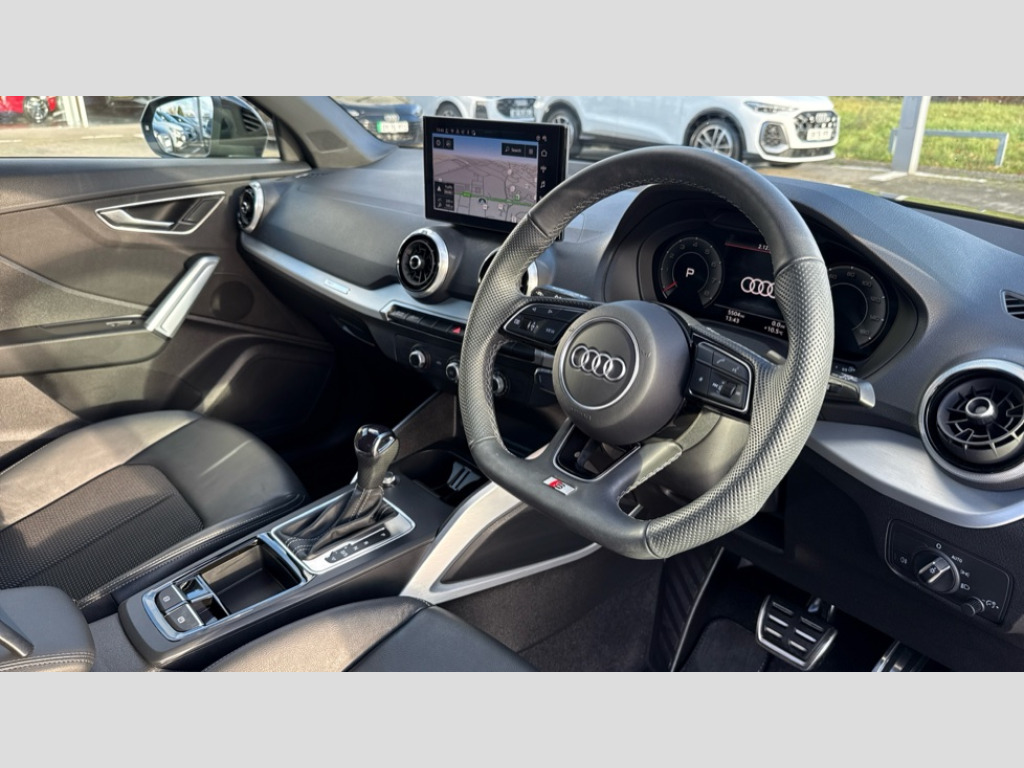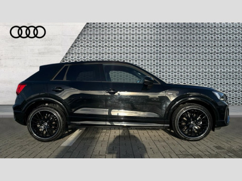 Audi Q2 35 TFSI Black Edition 5dr S Tronic 3D map display, Audi connect navigation and infotainment includes innovative services, Audi connect remote and control connects your vehicle to your smartphone, Audi drive select: S tronic - power steering assistance + engine + gearshift (modes: comfort, auto, dynamic, efficiency, individual), Audi smartphone interface - Apple carplay/Android Auto, USB connect, 2xSDXC card readers, voice control for navi, telephone, music and 3rd party apps, Audi virtual cockpit, Automatic start/stop system with recuperation, Bluetooth interface includes bluetooth audio streaming, Camera based traffic sign recognition, Cruise control, Distraction and Fatigue warning, E-call, Jukebox hard drive memory for music (10GB), Lane departure warning, MMI navigation plus with 8.8" touchscreen, Natural voice recognition, Power operated tailgate, Progressive steering, Rear parking sensors, Sport suspension, 6 passive loudspeakers, DAB Digital radio, USB type C port, Audi beam, Auto dimming rear view mirror, Black window trims, Bumper in full body colour paint finish, Electrically adjustable, folding, auto dimming and heated door mirrors with integrated LED side indicators, Front windscreen with grey tinted sunband, LED daytime running lights, LED headlights with dipped beam, high beam, position lights, indicators, LED rear lights, LED third brake light, Privacy glass - dark tinted rear and rear side windows from B-pillar backwards, Rear side wing doors, Rear wiper, Variable front intermittent wipers, Wheel arch trims in manhattan grey, 12V socket in front, 3 seat bench in 2nd row, 3 spoke flat bottomed multi-function leather sport steering wheel with gear shift paddles, 4-way electric lumbar support for front seats including manual seat height adjustment for both front seats, 60/40 split folding rear seat bench, Black carpets, Black cloth headlining, Front and rear head restraints, Front centre armrest, Front sport seats, Front/rear floor mats, Height/reach adjust steering wheel, Illuminated door sill trims with S logo, ISOFIX child seat mounting in front passenger and rear outer seats, Manual air conditioning, Single front passenger seat, Stainless steel pedals, Black styling pack - Q2, 3x3 point rear seatbelts, 6 airbags - Front, curtain and front side airbags, Electromechanical parking brake, Electronic stabilisation control including ABS, ASR and EDL, Front passenger airbag deactivation, Hill hold assist, Pre-sense front with pedestrian recognition, Seatbelt monitoring, Tyre pressure warning light with visual and acoustic warning, Warning triangle and first aid kit, Anti theft alarm, Anti theft wheel bolts, Electronically operated child locks, Remote central door locking, Aluminium interior element, Black dashboard, Gloss black centre console, Matt brushed aluminium trim inlays, Tool kit