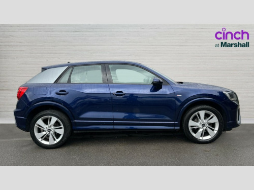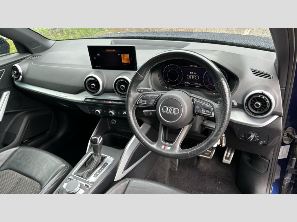 Audi Q2 35 TFSI S Line 5dr S Tronic Audi connect navigation and infotainment includes innovative services, Audi connect remote and control connects your vehicle to your smartphone, Audi drive select - Power steering assistance + engine + gearshift, Audi drive select with efficiency, Audi smartphone interface, Audi virtual cockpit, Automatic start/stop system with recuperation, Bluetooth interface includes bluetooth audio streaming, Cruise control, E-call, MMI navigation plus with MMI touch, Power operated tailgate, Progressive steering, Rear parking sensors, 2 x SDXC card reader, 6 passive loudspeakers, DAB Digital radio, DVD Drive, Auto dimming rear view mirror, Black window trims, Electrically adjustable, folding, auto dimming and heated door mirrors with integrated LED side indicators, Front windscreen with grey tinted sunband, LED daytime running lights, LED headlights with LED rear lights, LED third brake light, Rear side wing doors, Rear wiper, S Line badges on the front wings, S Line body styling - front and rear bumpers, side skirts, radiator grille, rear diffuser insert and front air intakes, Variable front intermittent wipers, Wheel arch trims in manhattan grey, 12V socket in front, 3 seat bench in 2nd row, 4-way electric lumbar support for front seats including seat height adjustment for both front seat, 60/40 split folding rear seat bench, Black cloth headlining, Front and rear head restraints, Front centre armrest, Front/rear floor mats, Height/reach adjust steering wheel, Illuminated door sill trims with S logo, Single front passenger seat, Stainless steel pedals, 3x3 point rear seatbelts, 6 airbags - Front, curtain and front side airbags, Electromechanical parking brake, Electronic stabilisation control including ABS, ASR and EDL, Front passenger airbag deactivation, Hill hold assist, Pre-sense front with pedestrian recognition, Seatbelt monitoring, Tyre pressure warning light, Warning triangle and first aid kit, Anti theft alarm, Anti theft wheel bolts, Manual child locks, Remote central door locking, Aluminium interior element, Matt brushed aluminium trim inlays, Tool kit
