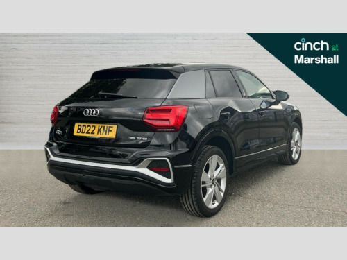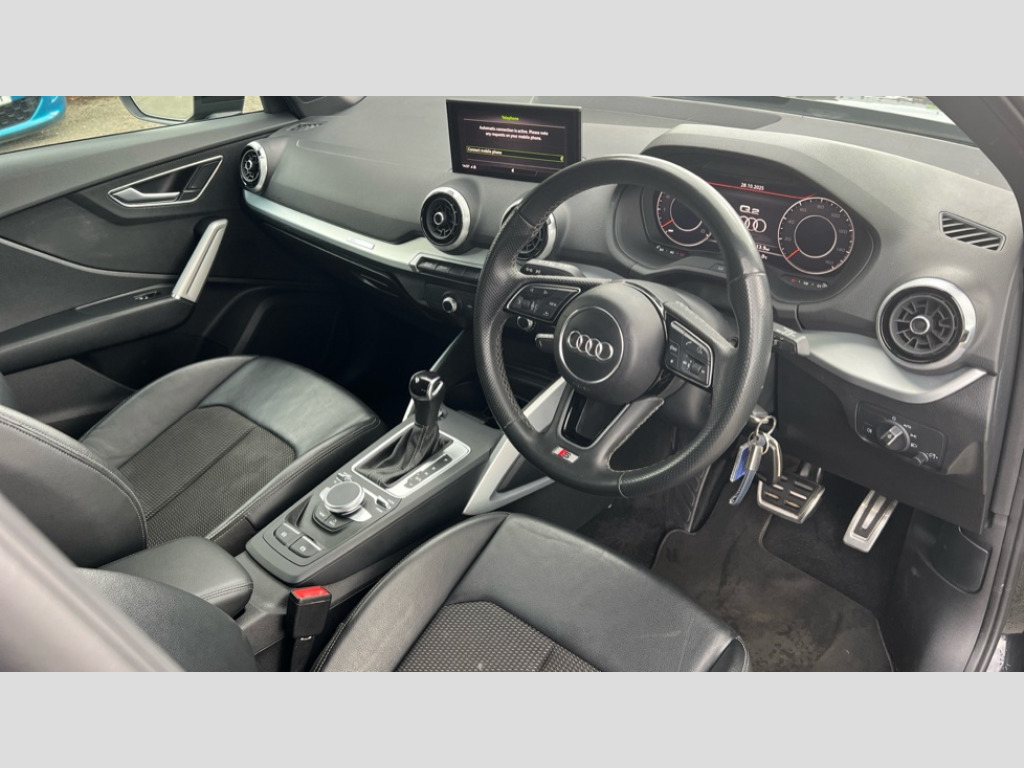 Audi Q2 35 TFSI S Line 5dr S Tronic Audi connect navigation and infotainment includes innovative services, Audi connect remote and control connects your vehicle to your smartphone, Audi drive select - Power steering assistance + engine + gearshift, Audi drive select with efficiency, Audi smartphone interface, Audi virtual cockpit, Automatic start/stop system with recuperation, Bluetooth interface includes bluetooth audio streaming, Cruise control, E-call, MMI navigation plus with MMI touch, Power operated tailgate, Progressive steering, Rear parking sensors, 2 x SDXC card reader, 6 passive loudspeakers, DAB Digital radio, DVD Drive, Auto dimming rear view mirror, Black window trims, Body colour door mirrors, Electrically adjustable, folding, auto dimming and heated door mirrors with integrated LED side indicators, Front windscreen with grey tinted sunband, LED daytime running lights, LED headlights with LED rear lights, LED third brake light, Rear side wing doors, Rear wiper, S Line badges on the front wings, S Line body styling - front and rear bumpers, side skirts, radiator grille, rear diffuser insert and front air intakes, Variable front intermittent wipers, Wheel arch trims in manhattan grey, 12V socket in front, 3 seat bench in 2nd row, 4-way electric lumbar support for front seats including seat height adjustment for both front seat, 60/40 split folding rear seat bench, Black cloth headlining, Front and rear head restraints, Front centre armrest, Front/rear floor mats, Height/reach adjust steering wheel, Illuminated door sill trims with S logo, Single front passenger seat, Stainless steel pedals, 3x3 point rear seatbelts, 6 airbags - Front, curtain and front side airbags, Electromechanical parking brake, Electronic stabilisation control including ABS, ASR and EDL, Front passenger airbag deactivation, Hill hold assist, Pre-sense front with pedestrian recognition, Seatbelt monitoring, Tyre pressure warning light, Warning triangle and first aid kit, Anti theft alarm, Anti theft wheel bolts, Manual child locks, Remote central door locking, Aluminium interior element, Matt brushed aluminium trim inlays, Tool kit