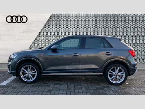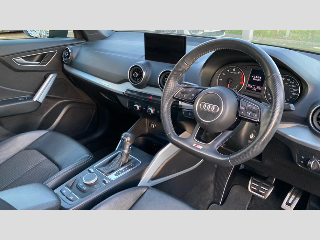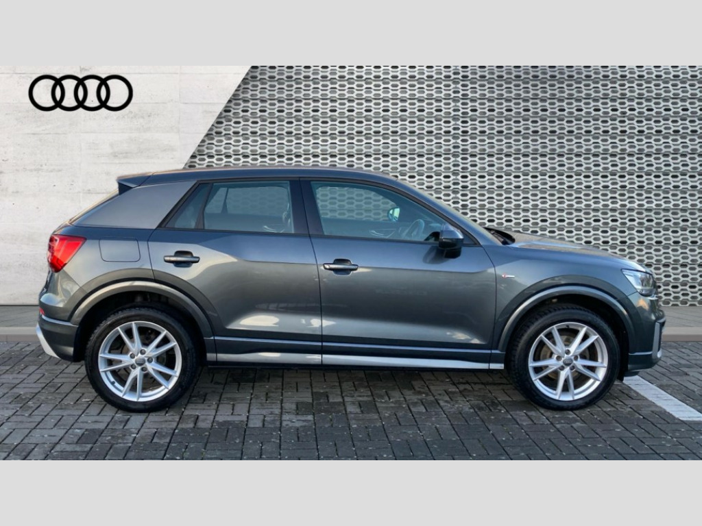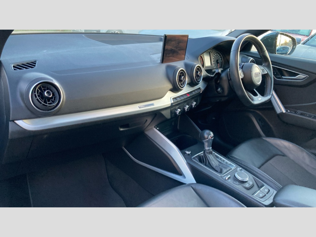 Audi Q2 35 TFSI S Line 5dr S Tronic Audi drive select, Audi smartphone interface, Automatic start/stop system with recuperation, Bluetooth interface includes bluetooth audio streaming, Cruise control, MMI - Multi Media Interface control system, MMI SD card integrated nav with 3D map display, dynamic route guidance with TMC, MMI search, natural voice recognition and myAudi special destinations, Power operated tailgate, Progressive steering, Service interval indicator, Dynamic suspension, 2 x SDXC card reader, Audi music interface - apple iPod, apple iPhone, USB storage media, compatible MP3 players, 2 x USB charging points and 1 x Aux-in, CD Drive, DAB digital radio and AM/FM radio, MMI radio plus with 7" colour MMI screen and MMI controller, Black window trims, Bumper in full body colour paint finish, Chrome exhaust tailpipe, Electrically adjustable and heated door mirrors with integrated LED side indicators, Front and rear electric windows, Front underbody guard and rear diffuser trim in selenite silver, Front windscreen with grey tinted sunband, Headlight washers, Interior mirror, LED headlights with LED rear lights + dynamic rear indicators, LED indicator lights, Manual folding door mirrors, Rain and light sensors, Rear wiper, S Line badges on the front wings, S Line body styling - front and rear bumpers, side skirts, radiator grille, rear diffuser insert and front air intakes, 60/40 split folding rear seat bench, Black cloth headlining, Floor mats with contrast stitching, Front centre armrest, Front headrests, Front sport seats with S embossed logo, Height/reach adjust steering wheel, Illuminated door sill trims with S logo, ISOFIX child seat mounting for front passenger with airbag deactivation and outer rear seat including top tether attachment point for outer rear seats, Manual seat adjustment including seat height adjustment for front seats, Stainless steel pedals, Storage compartments - Glovebox, cupholder compartment in centre console, storage compartment in rear centre console, front and rear door pockets, Three rear headrests, Non smoking pack - Q2, 3x3 point rear seatbelts, 6 airbags - Front, curtain and front side airbags, Electromechanical parking brake, Electronic stabilisation control including ABS, ASR and EDL, Extended and proactive pedestrian protection, Hill hold assist, Multi collision brake assist, Pre-sense front with pedestrian recognition, Seatbelt monitoring, Tyre pressure warning light, Warning triangle and first aid kit, Anti theft alarm, Anti theft wheel bolts, Central locking system with remote control key, Electronically operated child locks, Aluminium interior element