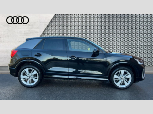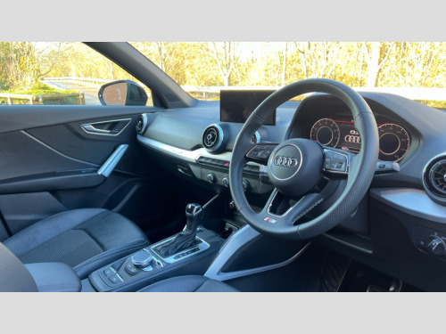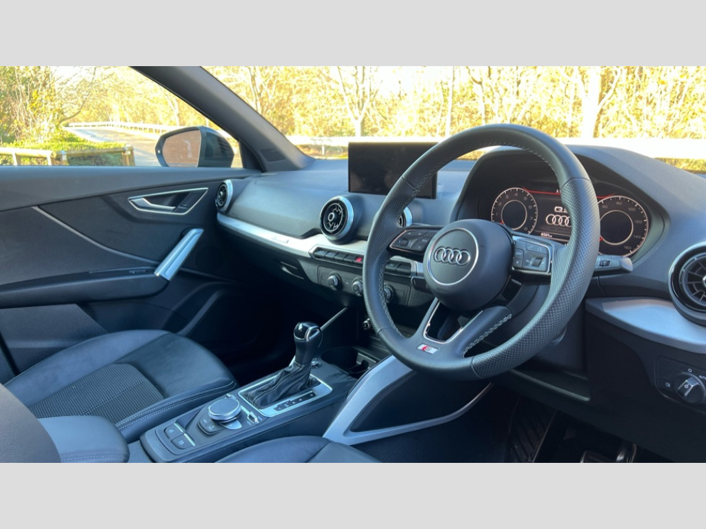 Audi Q2 35 TFSI S Line 5dr S Tronic 3D map display, Audi connect navigation and infotainment includes innovative services, Audi connect remote and control connects your vehicle to your smartphone, Audi drive select: S tronic - power steering assistance + engine + gearshift (modes: comfort, auto, dynamic, efficiency, individual), Audi smartphone interface - Apple carplay/Android Auto, USB connect, 2xSDXC card readers, voice control for navi, telephone, music and 3rd party apps, Audi virtual cockpit, Automatic start/stop system with recuperation, Bluetooth interface includes bluetooth audio streaming, Camera based traffic sign recognition, Cruise control, Distraction and Fatigue warning, E-call, Jukebox hard drive memory for music (10GB), Lane departure warning, MMI navigation plus with 8.8" touchscreen, Natural voice recognition, Power operated tailgate, Progressive steering, Rear parking sensors, Sport suspension, 6 passive loudspeakers, DAB Digital radio, USB type C port, Auto dimming rear view mirror, Black window trims, Body colour door mirrors, Electrically adjustable, folding, auto dimming and heated door mirrors with integrated LED side indicators, Front windscreen with grey tinted sunband, LED daytime running lights, LED headlights with dipped beam, high beam, position lights, indicators, LED rear lights, LED third brake light, Privacy glass - dark tinted rear and rear side windows from B-pillar backwards, Rear side wing doors, Rear wiper, S Line badges on the front wings, S Line body styling - front and rear bumpers, side skirts, radiator grille, rear diffuser insert and front air intakes, Variable front intermittent wipers, Wheel arch trims in manhattan grey, 12V socket in front, 3 seat bench in 2nd row, 3 spoke multi-function leather steering wheel with S badging, 4-way electric lumbar support for front seats including manual seat height adjustment for both front seats, 60/40 split folding rear seat bench, Black carpets, Black cloth headlining, Front and rear head restraints, Front centre armrest, Front sport seats, Front/rear floor mats, Height/reach adjust steering wheel, Illuminated door sill trims with S logo, ISOFIX child seat mounting in front passenger and rear outer seats, Manual air conditioning, Single front passenger seat, Stainless steel pedals, 3x3 point rear seatbelts, 6 airbags - Front, curtain and front side airbags, Electromechanical parking brake, Electronic stabilisation control including ABS, ASR and EDL, Front passenger airbag deactivation, Hill hold assist, Pre-sense front with pedestrian recognition, Seatbelt monitoring, Tyre pressure warning light with visual and acoustic warning, Warning triangle and first aid kit, Anti theft alarm, Anti theft wheel bolts, Electronically operated child locks, Remote central door locking, Aluminium interior element, Black dashboard, Gloss black centre console, Matt brushed aluminium trim inlays, Tool kit
