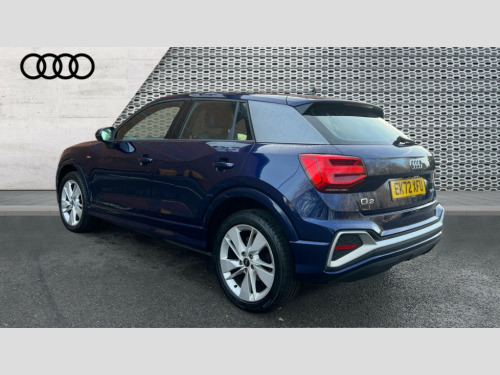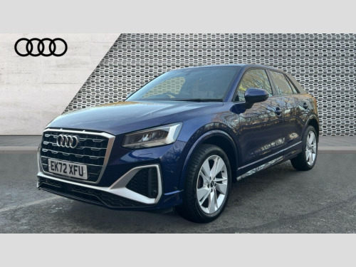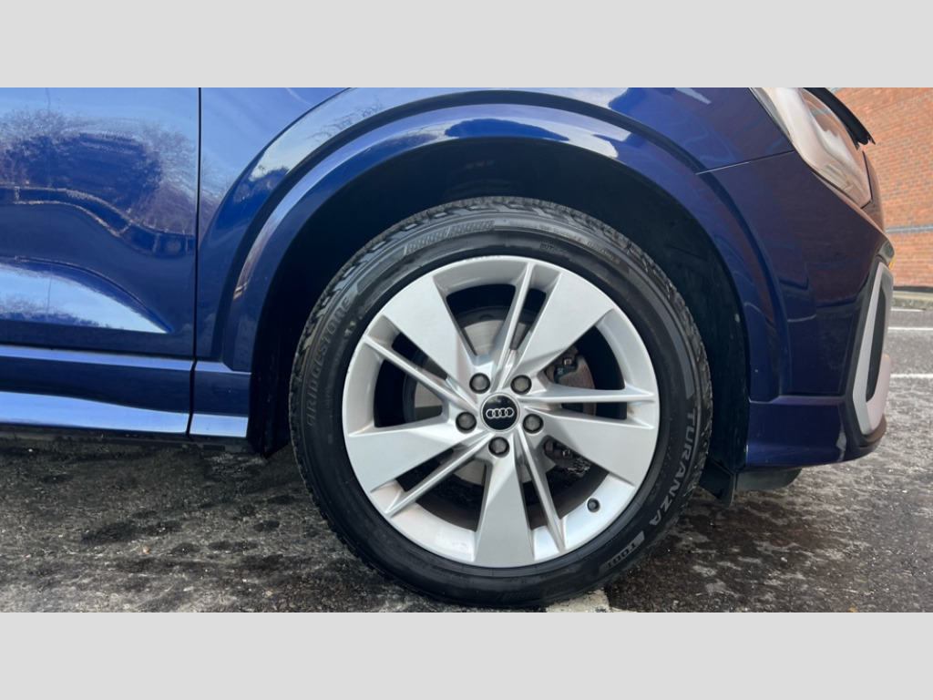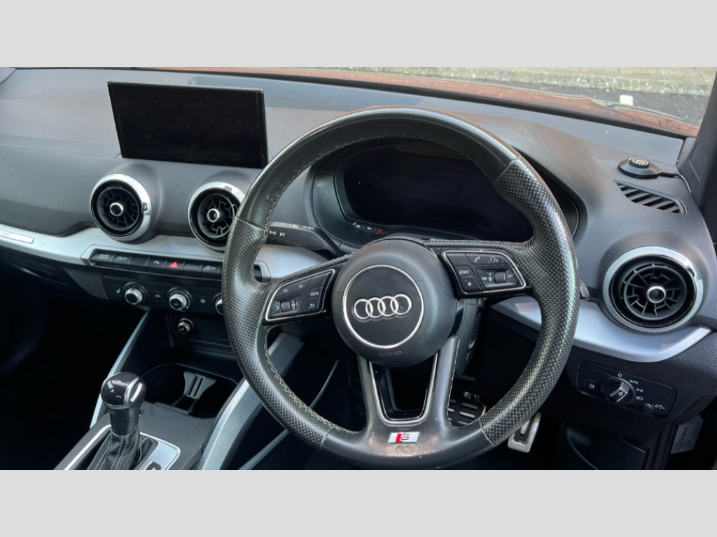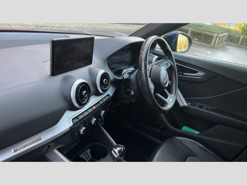 Audi Q2 35 TFSI S Line 5dr S Tronic Audi connect navigation and infotainment includes innovative services, Audi connect remote and control connects your vehicle to your smartphone, Audi drive select - Power steering assistance + engine + gearshift, Audi drive select with efficiency, Audi smartphone interface, Audi virtual cockpit, Automatic start/stop system with recuperation, Bluetooth interface includes bluetooth audio streaming, Cruise control, E-call, MMI navigation plus with MMI touch, Power operated tailgate, Progressive steering, Rear parking sensors, 2 x SDXC card reader, 6 passive loudspeakers, DAB Digital radio, DVD Drive, Auto dimming rear view mirror, Black window trims, Electrically adjustable, folding, auto dimming and heated door mirrors with integrated LED side indicators, Front windscreen with grey tinted sunband, LED daytime running lights, LED headlights with LED rear lights, LED third brake light, Rear side wing doors, Rear wiper, S Line badges on the front wings, S Line body styling - front and rear bumpers, side skirts, radiator grille, rear diffuser insert and front air intakes, Variable front intermittent wipers, Wheel arch trims in manhattan grey, 12V socket in front, 3 seat bench in 2nd row, 4-way electric lumbar support for front seats including seat height adjustment for both front seat, 60/40 split folding rear seat bench, Black cloth headlining, Front and rear head restraints, Front centre armrest, Front/rear floor mats, Height/reach adjust steering wheel, Illuminated door sill trims with S logo, ISOFIX child seat mounting in front passenger and rear outer seats, Single front passenger seat, Stainless steel pedals, 3x3 point rear seatbelts, 6 airbags - Front, curtain and front side airbags, Electromechanical parking brake, Electronic stabilisation control including ABS, ASR and EDL, Front passenger airbag deactivation, Hill hold assist, Pre-sense front with pedestrian recognition, Seatbelt monitoring, Tyre pressure warning light, Warning triangle and first aid kit, Anti theft alarm, Anti theft wheel bolts, Electronically operated child locks, Remote central door locking, Aluminium interior element, Matt brushed aluminium trim inlays, Tool kit