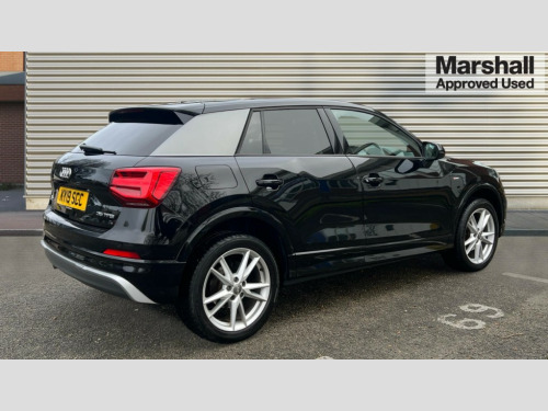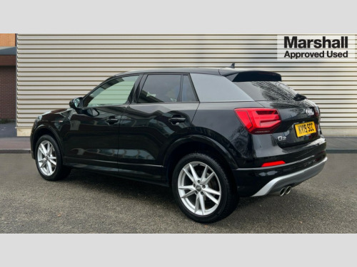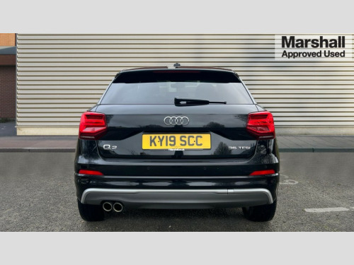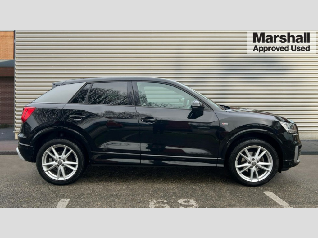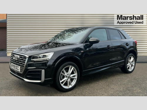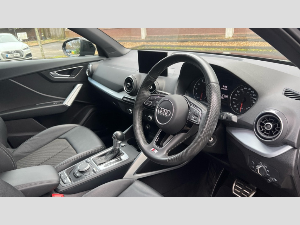 Audi Q2 35 TFSI S Line 5dr S Tronic Audi drive select, Audi smartphone interface, Automatic start/stop system with recuperation, Bluetooth interface includes bluetooth audio streaming, Cruise control, MMI - Multi Media Interface control system, MMI SD card integrated nav with 3D map display, dynamic route guidance with TMC, MMI search, natural voice recognition and myAudi special destinations, Power operated tailgate, Progressive steering, Service interval indicator, Dynamic suspension, 2 x SDXC card reader, Audi music interface - apple iPod, apple iPhone, USB storage media, compatible MP3 players, 2 x USB charging points and 1 x Aux-in, CD Drive, DAB digital radio and AM/FM radio, MMI radio plus with 7" colour MMI screen and MMI controller, Black window trims, Bumper in full body colour paint finish, Chrome exhaust tailpipe, Electrically adjustable and heated door mirrors with integrated LED side indicators, Front and rear electric windows, Front underbody guard and rear diffuser trim in selenite silver, Front windscreen with grey tinted sunband, Headlight washers, Interior mirror, LED headlights with LED rear lights + dynamic rear indicators, LED indicator lights, Manual folding door mirrors, Rain and light sensors, Rear wiper, S Line badges on the front wings, S Line body styling - front and rear bumpers, side skirts, radiator grille, rear diffuser insert and front air intakes, 60/40 split folding rear seat bench, Black cloth headlining, Floor mats with contrast stitching, Front centre armrest, Front headrests, Front sport seats with S embossed logo, Height/reach adjust steering wheel, Illuminated door sill trims with S logo, ISOFIX child seat mounting for front passenger with airbag deactivation and outer rear seat including top tether attachment point for outer rear seats, Manual seat adjustment including seat height adjustment for front seats, Stainless steel pedals, Storage compartments - Glovebox, cupholder compartment in centre console, storage compartment in rear centre console, front and rear door pockets, Three rear headrests, Non smoking pack - Q2, 3x3 point rear seatbelts, 6 airbags - Front, curtain and front side airbags, Electromechanical parking brake, Electronic stabilisation control including ABS, ASR and EDL, Extended and proactive pedestrian protection, Hill hold assist, Multi collision brake assist, Pre-sense front with pedestrian recognition, Seatbelt monitoring, Tyre pressure warning light, Warning triangle and first aid kit, Anti theft alarm, Anti theft wheel bolts, Central locking system with remote control key, Electronically operated child locks, Aluminium interior element, Matt brushed aluminium trim inlays