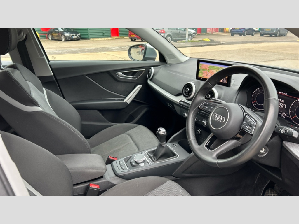 Audi Q2 35 TFSI Sport 5dr Audi connect navigation and infotainment includes innovative services, Audi connect remote and control connects your vehicle to your smartphone, Audi drive select, Audi drive select with efficiency, Audi smartphone interface, Audi virtual cockpit, Automatic start/stop system with recuperation, Bluetooth interface includes bluetooth audio streaming, Cruise control, MMI navigation plus with MMI touch, Power operated tailgate, Progressive steering, Rear parking sensors, 2 x SDXC card reader, 8 passive loudspeakers, DAB Digital radio, DVD Drive, Auto dimming rear view mirror, Black window trims, Body colour door mirrors, Electrically adjustable, folding, auto dimming and heated door mirrors with integrated LED side indicators, Front windscreen with grey tinted sunband, LED headlights with dynamic rear indicators, Side skirts in manhattan grey, Wheel arch trims in manhattan grey, 4-way electric lumbar support for front seats including seat height adjustment for both front seat, 60/40 split folding rear seat bench, Front and rear head restraints, Front centre armrest, Front/rear floor mats, Height/reach adjust steering wheel, Index cloth upholstery + front sports seats, ISOFIX child seat mounting for front passenger with airbag deactivation and outer rear seat including top tether attachment point for outer rear seats, Titanium grey cloth headlining, 3x3 point rear seatbelts, 6 airbags - Front, curtain and front side airbags, Electromechanical parking brake, Electronic stabilisation control including ABS, ASR and EDL, Hill hold assist, Pre-sense front with pedestrian recognition, Seatbelt monitoring, Tyre pressure warning light, Warning triangle and first aid kit, Anti theft alarm, Anti theft wheel bolts, Electronically operated child locks, Aluminium interior element, Inlays in silver grey diamond paint, Tool kit