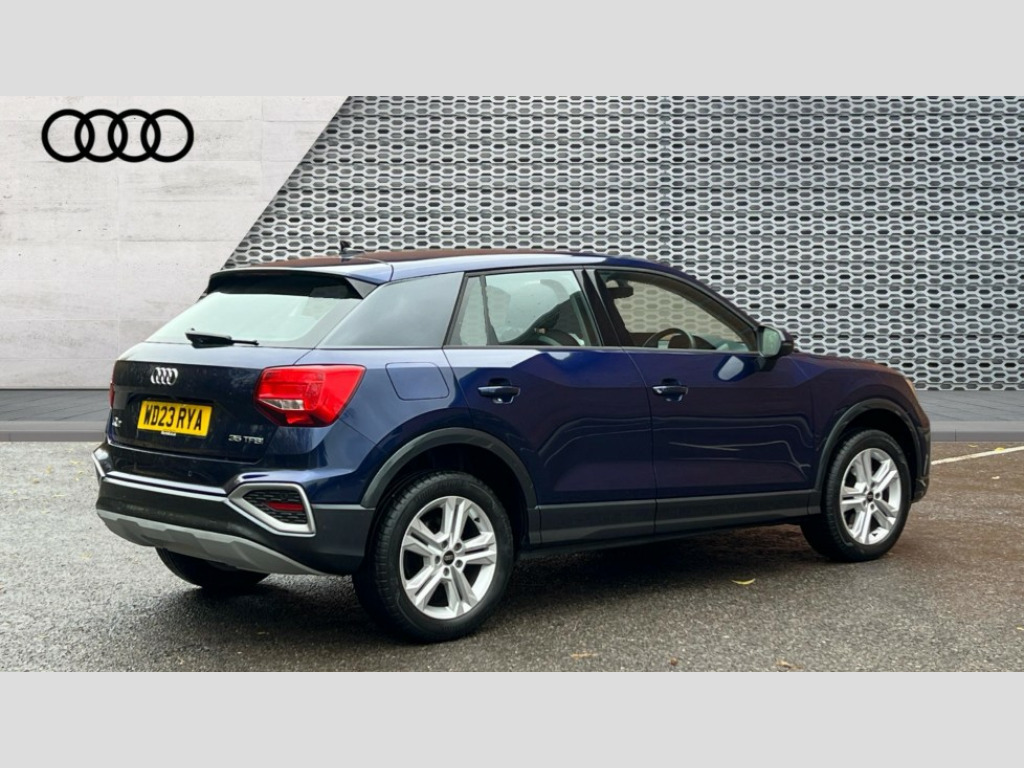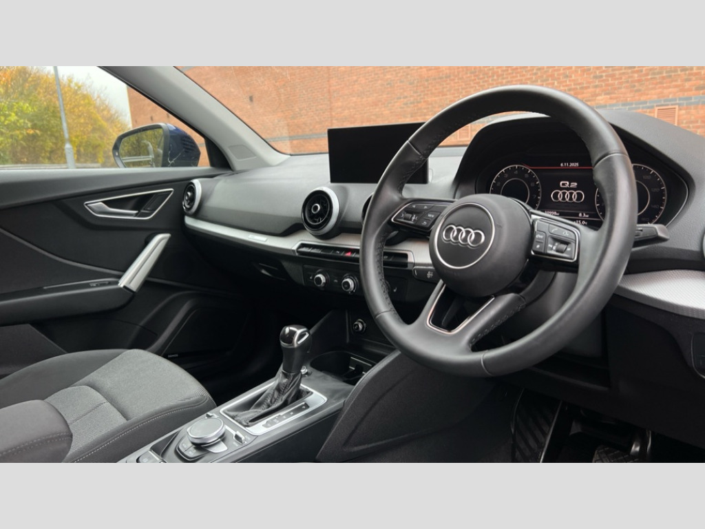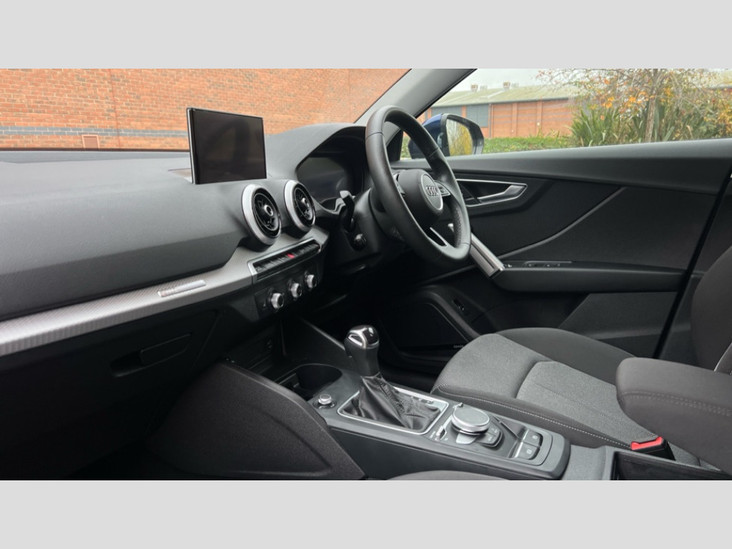 Audi Q2 35 TFSI Sport 5dr S Tronic 3D map display, Audi connect navigation and infotainment includes innovative services, Audi connect remote and control connects your vehicle to your smartphone, Audi drive select: S tronic - power steering assistance + engine + gearshift (modes: comfort, auto, dynamic, efficiency, individual), Audi smartphone interface - Apple carplay/Android Auto, USB connect, 2xSDXC card readers, voice control for navi, telephone, music and 3rd party apps, Audi virtual cockpit, Automatic start/stop system with recuperation, Bluetooth interface includes bluetooth audio streaming, Cruise control, E-call, Jukebox hard drive memory for music (10GB), MMI navigation plus with 8.3" colour MMI screen and MMI touch, Natural voice recognition, Power operated tailgate, Progressive steering, Rear parking sensors, 6 passive loudspeakers, DAB Digital radio, Auto dimming rear view mirror, Black window trims, Body colour door mirrors, Contrast bumpers in Manhattan grey, Electrically adjustable, folding, auto dimming and heated door mirrors with integrated LED side indicators, Front windscreen with grey tinted sunband, LED daytime running lights, LED headlights with dipped beam, high beam, position lights, indicators, LED third brake light, Rear side wing doors, Rear wiper, Side skirts in manhattan grey, Variable front intermittent wipers, Wheel arch trims in manhattan grey, 12V socket in front, 3 seat bench in 2nd row, 3 spoke leather trimmed multi-function steering wheel with height and reach adjustable, 4-way electric lumbar support for front seats including manual seat height adjustment for both front seats, 60/40 split folding rear seat bench, Black carpets, Front and rear head restraints, Front centre armrest, Front sport seats, Front/rear floor mats, Grey cloth headlining, Height/reach adjust steering wheel, Index cloth upholstery, ISOFIX child seat mounting in front passenger and rear outer seats, Manual air conditioning, Single front passenger seat, 3x3 point rear seatbelts, 6 airbags - Front, curtain and front side airbags, Electromechanical parking brake, Electronic stabilisation control including ABS, ASR and EDL, Front passenger airbag deactivation, Hill hold assist, Pre-sense front with pedestrian recognition, Seatbelt monitoring, Tyre pressure warning light with visual and acoustic warning, Warning triangle and first aid kit, Anti theft alarm, Anti theft wheel bolts, Electronically operated child locks, Remote central door locking, Aluminium interior element, Black dashboard, Inlays in silver grey diamond paint, Tool kit