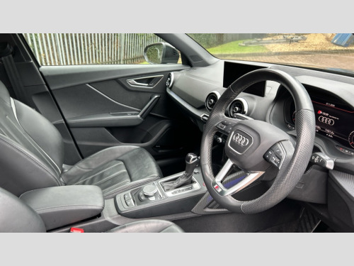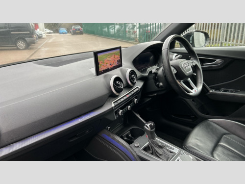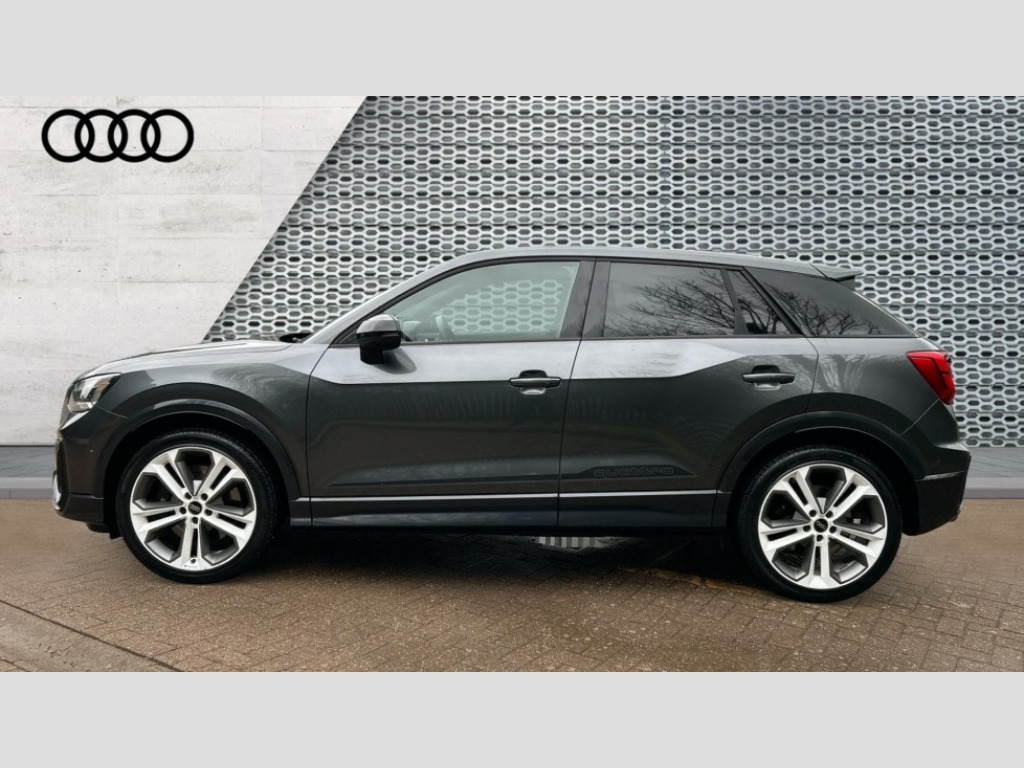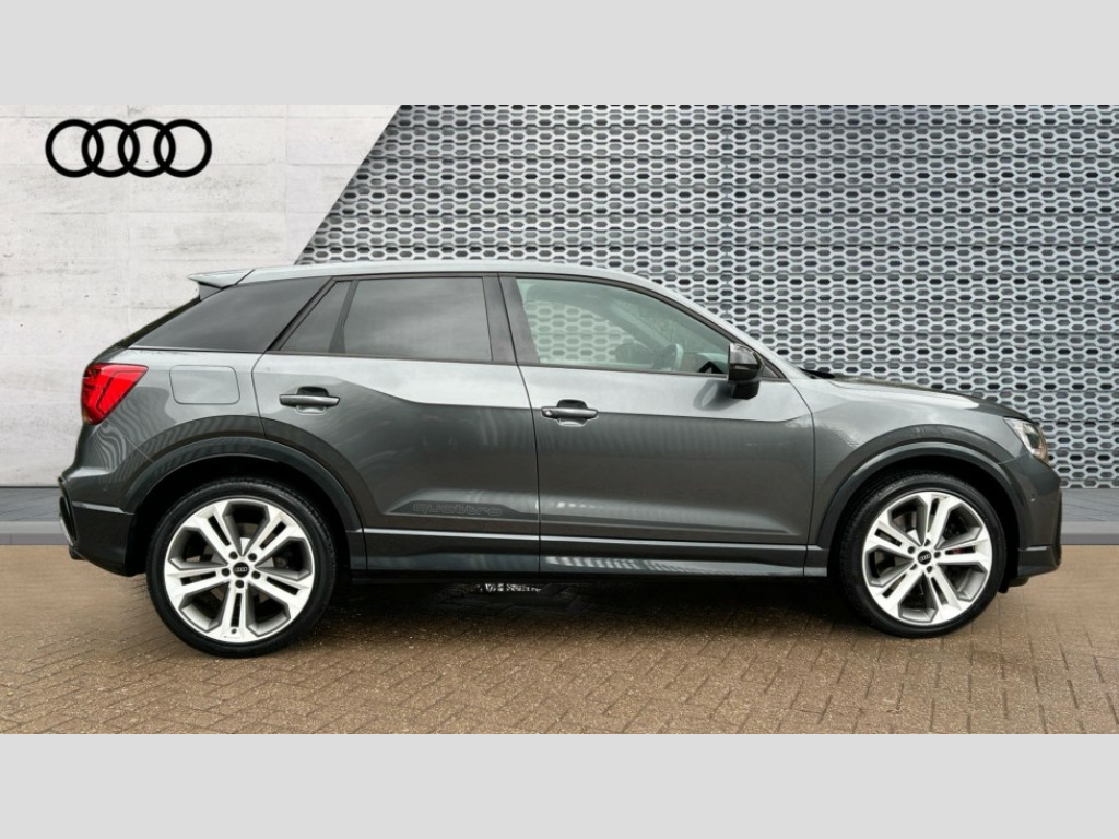 Audi Q2 SQ2 Quattro Vorsprung 5dr S Tronic Adaptive cruise control with active lane assist/emergency assist, Audi connect navigation and infotainment includes innovative services, Audi connect remote and control connects your vehicle to your smartphone, Audi drive select - Power steering assistance + engine + gearshift, Audi drive select with efficiency, Audi phone box with wireless charging, Audi side assist including rear cross-traffic assist and audi pre sense basic, Audi smartphone interface, Audi virtual cockpit, Automatic start/stop system with recuperation, Bluetooth interface includes bluetooth audio streaming, Camera based traffic sign recognition, E-call, Instrument dials with S logo, MMI navigation plus with MMI touch, Park assist system including front parking sensors, Power operated tailgate, Progressive steering, Rear parking sensors, Rear view camera, Traffic jam assist with emergency assist, Adaptive suspension with damping control, Quattro all wheel drive, 2 x SDXC card reader, DAB Digital radio, DVD Drive, Auto dimming rear view mirror, Black Audi rings and black badging, Black exhaust tailpipes, Black window trims, Brake lights, tail lights, reversing lights, and rear number plate lights in LED technology, Contrast bumper in grey, Electrically adjustable, folding, auto dimming and heated door mirrors with integrated LED side indicators, Enhanced rear spoiler, Front windscreen with grey tinted sunband, LED daytime running lights, LED third brake light, Matrix headlights with LED rear lights, dynamic rear indicators, cornering lights, Panoramic glass sunroof, Privacy glass - dark tinted rear and rear side windows from B-pillar backwards, Quattro decals on rear side flank, Rear side wing doors, Rear wiper, S design radiator grille with horizontal struts and SQ2 logo, S specific dual branch chrome tailpipes with twin tailpipes on both the left and right, Variable front intermittent wipers, Wheel arch trims in manhattan grey, 12V socket in front, 3 seat bench in 2nd row, 3 spoke leather trimmed multi function steering wheel with paddleshift features S badging, 4-way electric lumbar support for front seats including seat height adjustment for both front seat, 40/20/40 split folding rear seat bench with centre armrest and cupholder, Black cloth headlining, Dual zone electronic climate control, Front and rear head restraints, Front centre armrest, Front/rear floor mats, Height/reach adjust steering wheel, ISOFIX child seat mounting in front passenger and rear outer seats, Single front passenger seat, Stainless steel pedals, Black styling pack - SQ2, Comfort and sound pack - SQ2, Extended interior upholstery pack - SQ2, LED interior lighting pack advanced - Q2, 3x3 point rear seatbelts, 6 airbags - Front, curtain and front side airbags, Brake calipers painted black with S logo at the front, Electromechanical parking brake, Electronic stabilisation control including ABS, ASR and EDL, Front passenger airbag deactivation, Hill hold assist, Pre-sense front with pedestrian recognition, S model enhanced braking system, Seatbelt monitoring, Tyre pressure warning light, Warning triangle and first aid kit, Advanced key, Anti theft alarm, Anti theft wheel bolts, Electronically operated child locks, Remote central door locking, Aluminium interior element, Format design illuminated inlays, 19" 5 double spoke design alloy wheels in gloss white with diamond cut finish, Tool kit