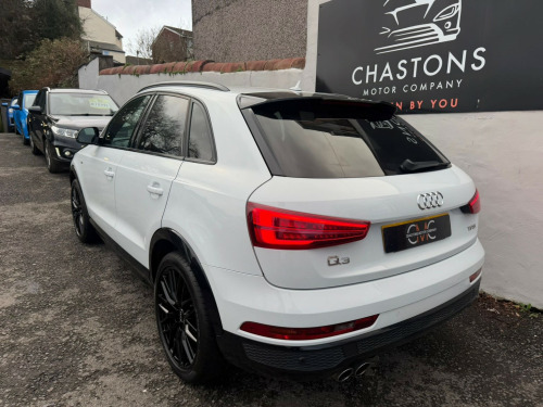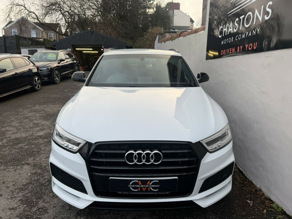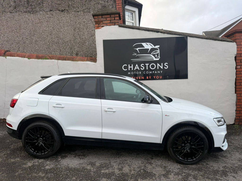 18 Plate Audi Q3 1.4Tfsi S-line Black Edition Manual 5dr finished in Metallic white with black pack. Comes with fantastic factory spec including 19 inch Black alloys, Sweeping indicators, Bose sound system, Auto lights/Wipers, Half leather half Alcantra, 6-Speed manual gearbox, Dual climate, Cruise control, Electric Folding mirrors and centre armrest. This is a very looked after and cared for example with full service history and 4 x Premium tyres. Will come with a fresh 12 months mot. Great value at £14699.00