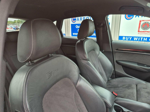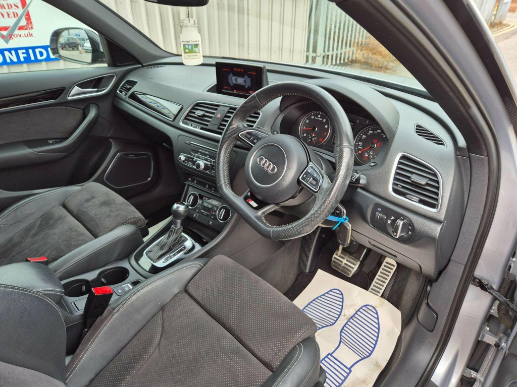This 2018 Audi Q3 TFSI Black Edition boasts a full service history and an MOT valid until October 2026, offering peace of mind for its next owner. This stylish SUV features a 1.4 litre Euro 6 compliant petrol engine, ensuring efficient performance. The Black Edition trim adds a touch of sophistication, complemented by LED headlights with dynamic rear indicators for enhanced visibility. Parking is made simple with the Audi Parking System Plus, including front and rear sensors, while the dual zone electronic climate control ensures comfort for all occupants. Stay connected on the go with the integrated Bluetooth interface, and let the light and rain sensor manage your headlights automatically. Experience the impressive acceleration of this Q3, reaching 0 to 62 miles per hour in just 8.9 seconds, a testament to its dynamic capabilities. With a fuel economy of 46 miles per gallon, this Audi Q3 offers a compelling blend of performance and efficiency, making it a standout choice compared to other vehicles in its class. The last service was completed at 53,480 miles, further underscoring its well maintained condition.
