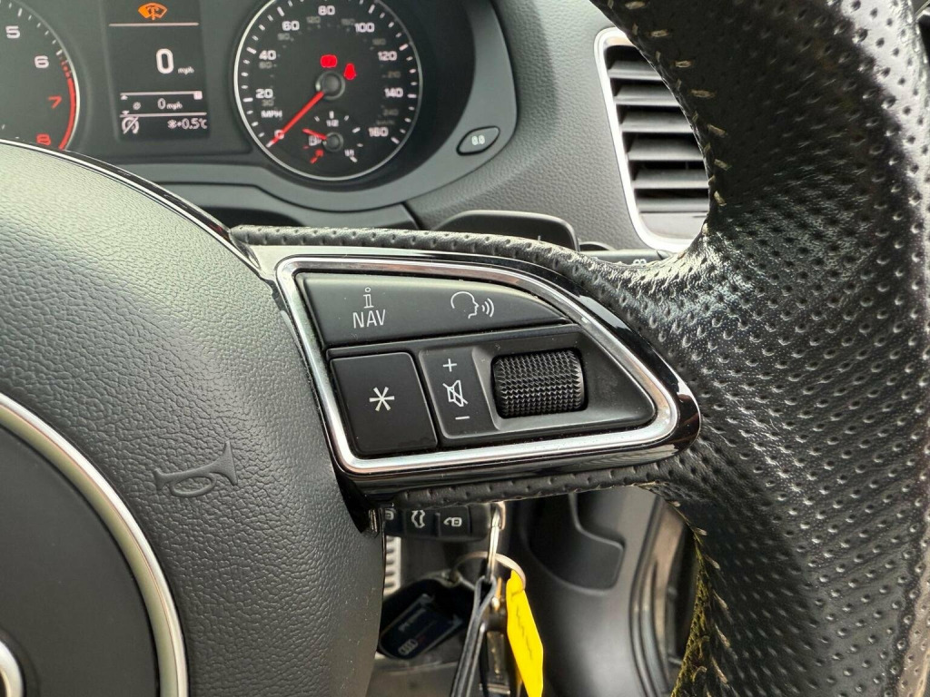 BM Vehicles are pleased to offer this stunning Audi Q3 S Line Black Edition. This vehicles has a massive specification including; DAB Radio, BOSE Sound System, Navigation, Bluetooth, Electric Tailgate, Front & Rear Parking Sensors, Cruise Control, 19-inch Gloss Black Alloys and much more! All our vehicles come with a minimum of 6 months service and MOT and are prepared to a high standard. 12 months breakdown cover provided on all vehicles. All vehicles are HPI clear, assuring you that there is no outstanding finance or that the vehicle has not been involved in a previous accident. Finance available from our large panel of lenders, (subject to status) - part exchanges accepted. Viewings by appointment only, please call our team for more information.