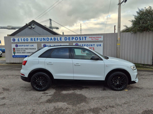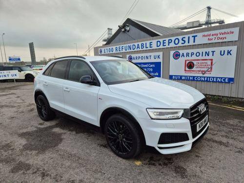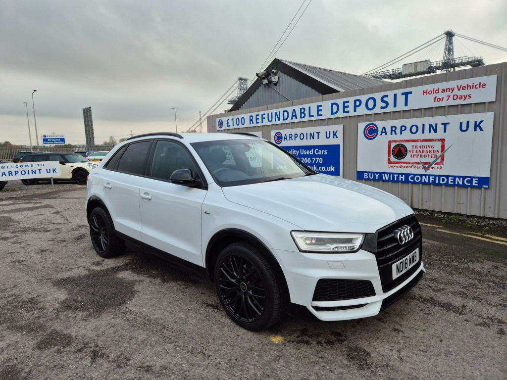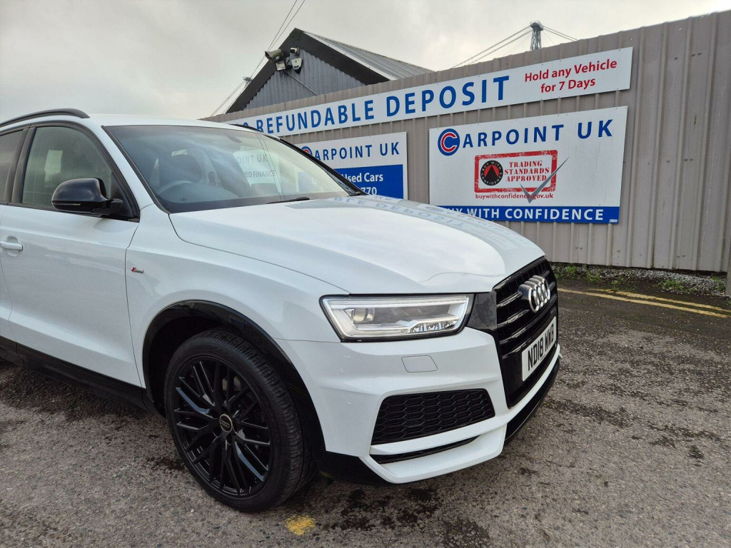 OUR DECEMBER EXTRAVAGANZA SALE IS NOW ON , DECEMBER 1ST - DECEMBER 31ST, ALL VEHICLES ARE IN THE SALE - WE HAVE DISCOUNTED PRICES BY UPTO £1000, SOME OF THE BEST VALUE CARS IN THE UK , £100 REFUNDABLE DEPOSIT HOLDS ANY VEHICLE FOR 7 DAYS , DRIVE AWAY SAME DAY , PART EXCHANGE ACCEPTED , WE SETTLE EXISTING FINANCE , 60 SECOND FINANCE DECISION , FREE WARRANTY ON EVERY VEHICLE, With its MOT valid until November 2026 and a full service history, this 2018 Audi Q3 TFSI Black Edition presents a compelling proposition for discerning buyers. This stylish SUV boasts a 1.4 litre Euro 6 compliant petrol engine, offering an impressive 0-62mph acceleration in just 8.9 seconds. The low mileage of 44,119 miles for its age is a significant advantage, complemented by a recent service completed on 3rd November 2025 at 44,119 miles. Notable features include Audi Hill Hold Assist for confident manoeuvring, Dual-Zone Electronic Climate Control for personalised comfort, and a premium BOSE Surround Sound System for an enhanced audio experience. Connectivity is seamless with the Bluetooth Interface, while the Audi Parking System Plus, featuring front and rear sensors, makes parking effortless. This Audi Q3 TFSI Black Edition stands out with its excellent fuel economy, achieving a highlighted 46 miles per gallon, and its low CO2 emissions, indicating a more environmentally conscious choice compared to many similar vehicles. The combination of its efficient 1.4 litre engine and the Black Edition styling ensures a driving experience that is both economical and engaging. This vehicle offers a well maintained and feature rich option for those seeking a premium compact SUV.