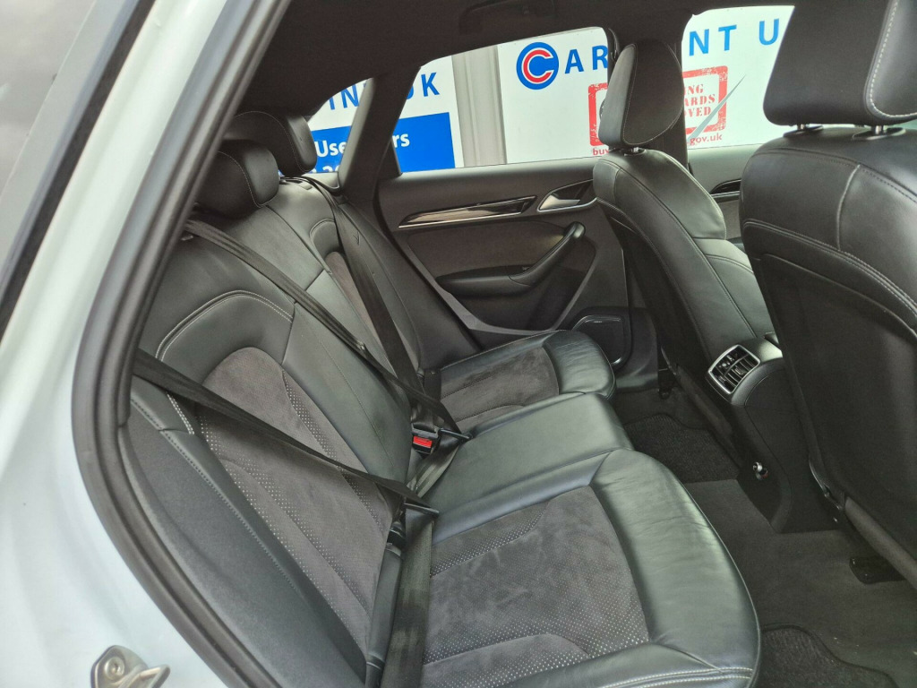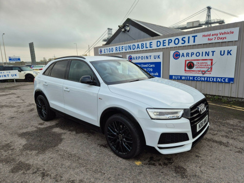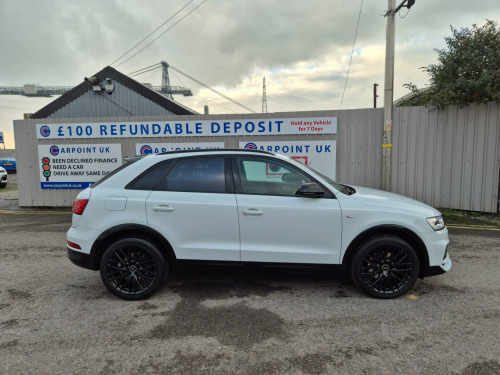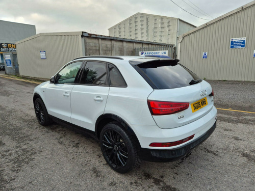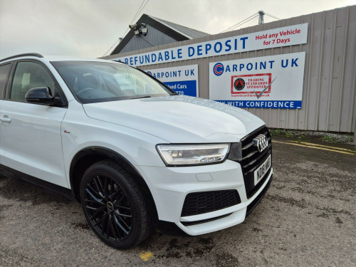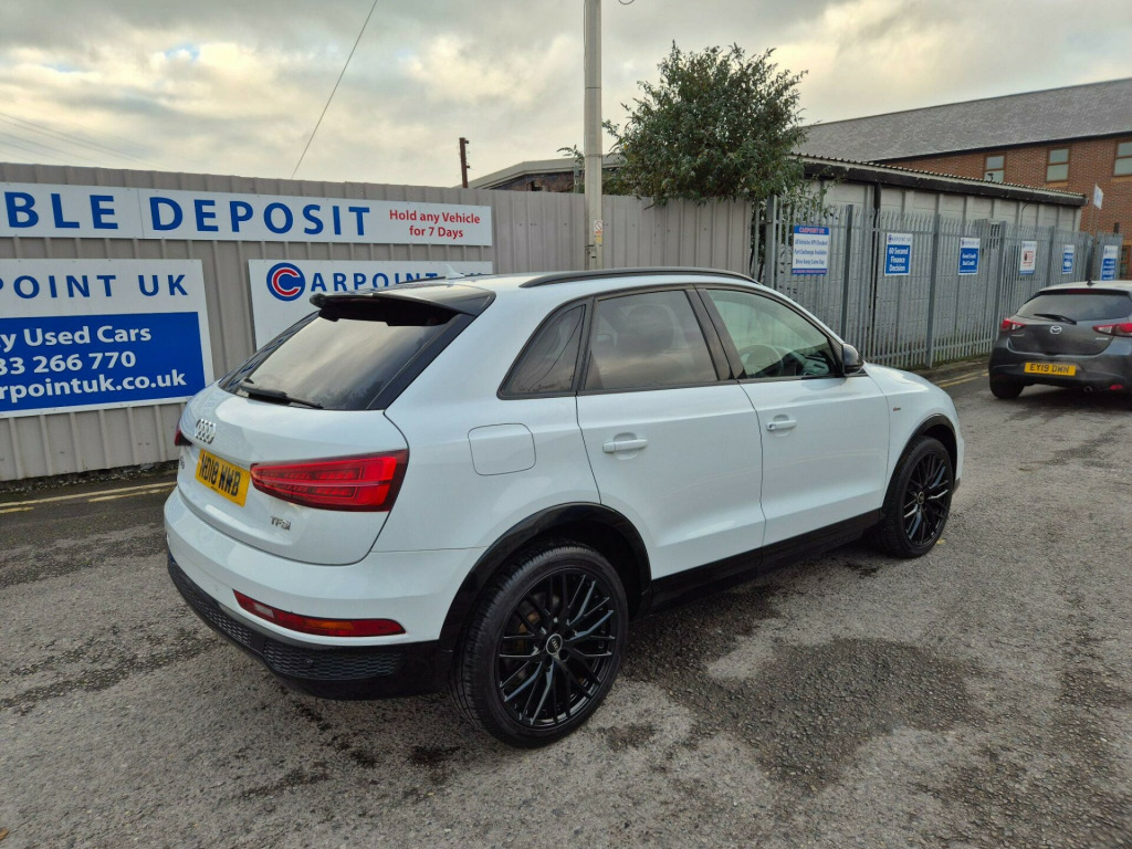 OUR DECEMBER EXTRAVAGANZA SALE IS NOW ON DECEMBER 1ST - DECEMBER 31STALL VEHICLE'S ARE IN THE SALE - WE HAVE DISCOUNTED PRICES BY UPTO £1000SOME OF THE BEST VALUE CARS IN THE UK £100 REFUNDABLE DEPOSIT HOLDS ANY VEHICLE FOR 7 DAYS DRIVE AWAY SAME DAY PART EXCHANGE ACCEPTED WE SETTLE EXISTING FINANCE 60 SECOND FINANCE DECISION FREE WARRANTY ON EVERY VEHICLEWith its MOT valid until November 2026 and a full service history, this 2018 Audi Q3 TFSI Black Edition presents a compelling proposition for discerning buyers. This stylish SUV boasts a 1.4 litre Euro 6 compliant petrol engine, offering an impressive 0-62mph acceleration in just 8.9 seconds. The low mileage of 44,119 miles for its age is a significant advantage, complemented by a recent service completed on 3rd November 2025 at 44,119 miles. Notable features include Audi Hill Hold Assist for confident manoeuvring, Dual-Zone Electronic Climate Control for personalised comfort, and a premium BOSE Surround Sound System for an enhanced audio experience. Connectivity is seamless with the Bluetooth Interface, while the Audi Parking System Plus, featuring front and rear sensors, makes parking effortless.This Audi Q3 TFSI Black Edition stands out with its excellent fuel economy, achieving a highlighted 46 miles per gallon, and its low CO2 emissions, indicating a more environmentally conscious choice compared to many similar vehicles. The combination of its efficient 1.4 litre engine and the Black Edition styling ensures a driving experience that is both economical and engaging. This vehicle offers a well maintained and feature rich option for those seeking a premium compact SUV.. 19in Alloy Wheels - 10-Y-Spoke Design - Diamond Cut Finish, 4-Way Electric Lumbar Support for Front Seats, 6.5in Colour Display Screen, AMI - Audi Music Interface, Anti Theft Locking Wheel Bolts, Anti-Theft Alarm, Audi Drive Select, Audi Parking System Plus, Auto-Dimming Rear-View Mirror, BOSE Surround Sound System, Black Roof Rails, Black Styling Pack with Black Roof Rails, Bluetooth Interface, Chrome-Plated Trims for Exhaust Tailpipes, Cloth Headlining in Black, Concert Radio, Cruise Control, DAB Digital Radio, Door Mirrors - Heated-Electrically Adjustable-Folding, Driver - Front Passenger - Front Side and Head Airbag System, Drivers Information System - DIS - 3.5in - Monochrome Display, Dual-Zone Electronic Climate Control, ESC - Electronic Stabilisation Control inc ABS - ASR and EDL, Electric Windows - Front, Electromechanical Parking Brake, Electromechanical Power Steering - Speed-Sensitive Provides a Precise Steering Feel at High Speeds and Excellent Assistance when Parking., Extendable Luggage Compartment Cover, First Aid Kit and Warning Triangle, Flat-Bottomed 3-Spoke Perforated Leather-Trimmed Multifunction Steering Wheel-Contrast Stitching with Paddles, Front Centre Armrest, Front Lip and Rear Diffuser in Full Paint Finish - Diffuser Insert Painted Platinum Grey, Front and Rear Floor Mats, Front and Rear Fog Lights, Full Body-colour Paint Finish with Front and Rear Bumpers - Wheel Arch Trims and Lower Door Trims in Gloss Black, Gear Knob - Perforated Leather, Gloss Black Door Mirrors, Gloss Black Rear Spoiler, ISOFIX Child Seat Mounting and Top Tether, Inlays - Piano Finish - Black, LED Headlights with LED Rear Lights and Dynamic Rear Indicators, LED Interior Light Package, Light and Rain Sensor, Manual Seat Adjustment, Pedals in Stainless Steel, Power Operated Tailgate, Privacy Glass, Remote Central Locking, Reversible Luggage Compartment Floor, S Line Badges on Front Wings, S Line Sports Suspension, Satellite Navigation System - SD Card Based, Seat Belt Monitoring, Secondary Collision Brake Assist, Space Saver Spare Wheel, Split-Folding Rear Seats, Stainless Steel Loading Sill Protector, Steering Wheel - Height and Reach Adjustable, Tool Kit and Car Jack, Towbar Preparation, Tyre Pressure Loss Indicator, Voice Control System, Windscreen with Acoustic Glazing, Audi Hill Hold Assist, Rear Side Airbags, 20in Alloy Wheels - 5-Arm Rotor Design with Matt Black Finish. Full service history
