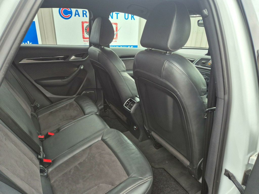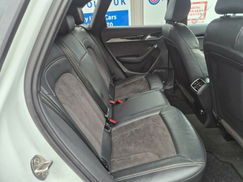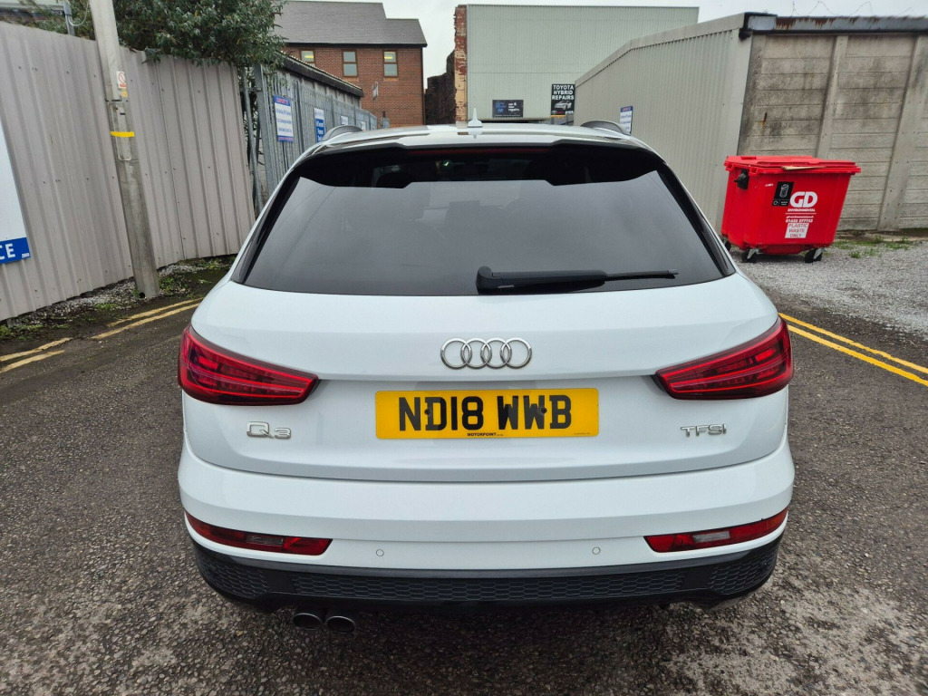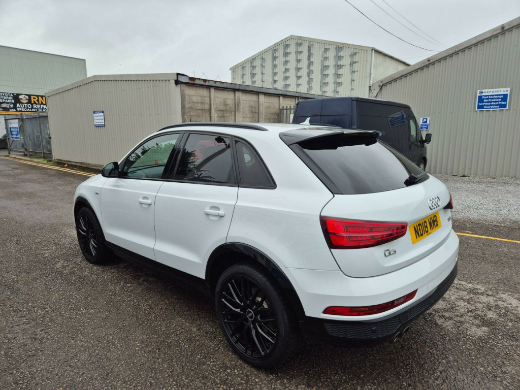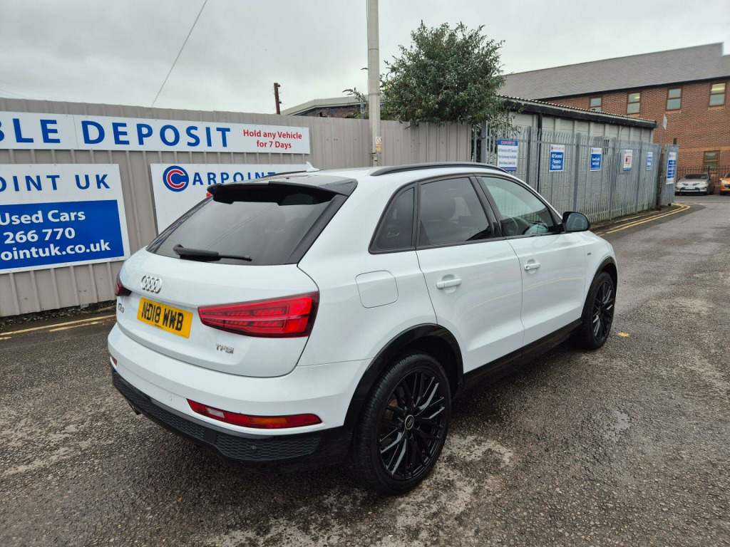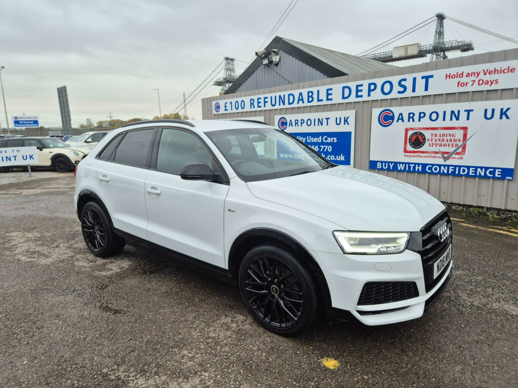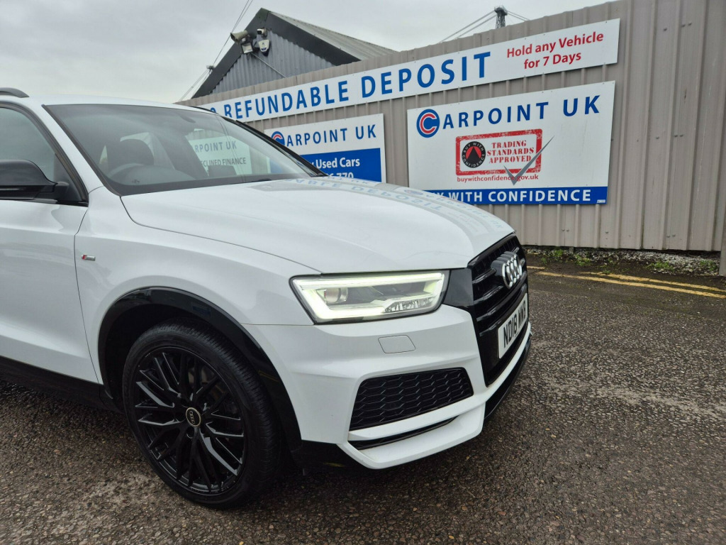With its MOT valid until November 2026 and a full service history, this 2018 Audi Q3 TFSI Black Edition presents a compelling proposition for discerning buyers. This stylish SUV boasts a 1.4 litre Euro 6 compliant petrol engine, offering an impressive 0-62mph acceleration in just 8.9 seconds. The low mileage of 44,119 miles for its age is a significant advantage, complemented by a recent service completed on 3rd November 2025 at 44,119 miles. Notable features include Audi Hill Hold Assist for confident manoeuvring, Dual-Zone Electronic Climate Control for personalised comfort, and a premium BOSE Surround Sound System for an enhanced audio experience. Connectivity is seamless with the Bluetooth Interface, while the Audi Parking System Plus, featuring front and rear sensors, makes parking effortless.This Audi Q3 TFSI Black Edition stands out with its excellent fuel economy, achieving a highlighted 46 miles per gallon, and its low CO2 emissions, indicating a more environmentally conscious choice compared to many similar vehicles. The combination of its efficient 1.4 litre engine and the Black Edition styling ensures a driving experience that is both economical and engaging. This vehicle offers a well maintained and feature rich option for those seeking a premium compact SUV.. 19in Alloy Wheels - 10-Y-Spoke Design - Diamond Cut Finish, 4-Way Electric Lumbar Support for Front Seats, 6.5in Colour Display Screen, AMI - Audi Music Interface, Anti Theft Locking Wheel Bolts, Anti-Theft Alarm, Audi Drive Select, Audi Parking System Plus, Auto-Dimming Rear-View Mirror, BOSE Surround Sound System, Black Roof Rails, Black Styling Pack with Black Roof Rails, Bluetooth Interface, Chrome-Plated Trims for Exhaust Tailpipes, Cloth Headlining in Black, Concert Radio, Cruise Control, DAB Digital Radio, Door Mirrors - Heated-Electrically Adjustable-Folding, Driver - Front Passenger - Front Side and Head Airbag System, Drivers Information System - DIS - 3.5in - Monochrome Display, Dual-Zone Electronic Climate Control, ESC - Electronic Stabilisation Control inc ABS - ASR and EDL, Electric Windows - Front, Electromechanical Parking Brake, Electromechanical Power Steering - Speed-Sensitive Provides a Precise Steering Feel at High Speeds and Excellent Assistance when Parking., Extendable Luggage Compartment Cover, First Aid Kit and Warning Triangle, Flat-Bottomed 3-Spoke Perforated Leather-Trimmed Multifunction Steering Wheel-Contrast Stitching with Paddles, Front Centre Armrest, Front Lip and Rear Diffuser in Full Paint Finish - Diffuser Insert Painted Platinum Grey, Front and Rear Floor Mats, Front and Rear Fog Lights, Full Body-colour Paint Finish with Front and Rear Bumpers - Wheel Arch Trims and Lower Door Trims in Gloss Black, Gear Knob - Perforated Leather, Gloss Black Door Mirrors, Gloss Black Rear Spoiler, ISOFIX Child Seat Mounting and Top Tether, Inlays - Piano Finish - Black, LED Headlights with LED Rear Lights and Dynamic Rear Indicators, LED Interior Light Package, Light and Rain Sensor, Manual Seat Adjustment, Pedals in Stainless Steel, Power Operated Tailgate, Privacy Glass, Remote Central Locking, Reversible Luggage Compartment Floor, S Line Badges on Front Wings, S Line Sports Suspension, Satellite Navigation System - SD Card Based, Seat Belt Monitoring, Secondary Collision Brake Assist, Space Saver Spare Wheel, Split-Folding Rear Seats, Stainless Steel Loading Sill Protector, Steering Wheel - Height and Reach Adjustable, Tool Kit and Car Jack, Towbar Preparation, Tyre Pressure Loss Indicator, Voice Control System, Windscreen with Acoustic Glazing, Audi Hill Hold Assist. Full service history