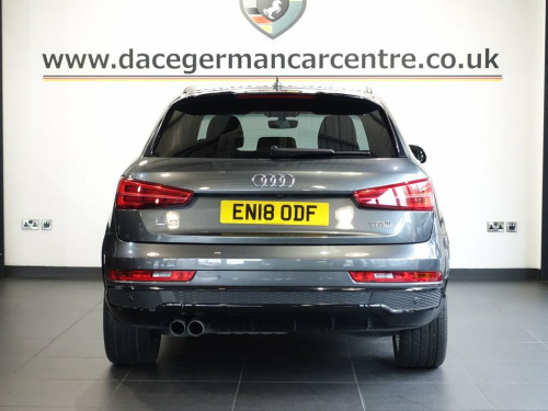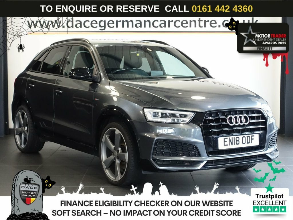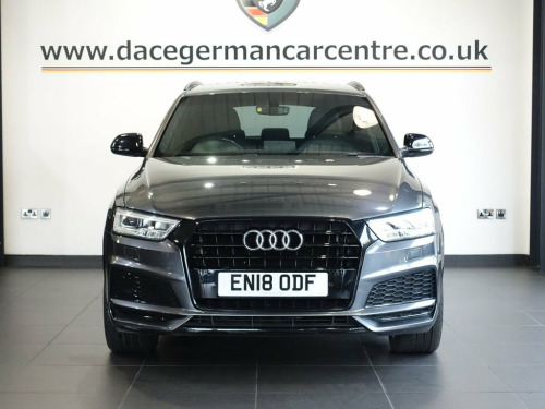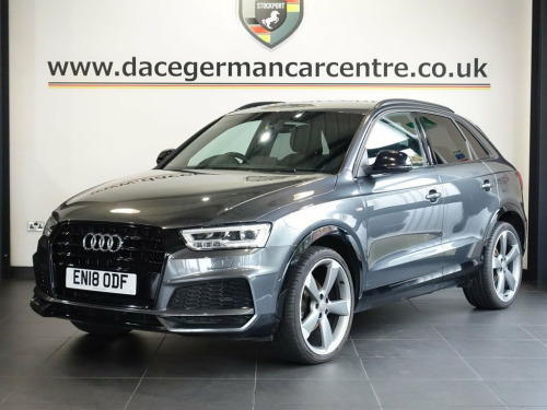 AUDI Q3 BLACK EDITION FINISHED IN A STUNNING DAYTONA GREY WITH BLACK HALF LEATHER INTERIOR, THIS CAR COMES WITH EXCELLENT SERVICE HISTORY, SATELLITE NAVIGATION, BOSE SPEAKERS + 20 INCH ALLOYS, PRIVACY GLASS, DRIVE MODE SELECT, PARK ASSIST, REAR PARKING SENSORS, IN CAR ENTERTAINMENT, DUAL CLIMATE CONTROL, AIR CONDITIONING, MULTI FUNCTION STEERING WHEEL, AUTO START / STOP FUNCTION, BLACK ROOF RAILS, ELECTRIC WINDOWS, ELECTRIC DOOR MIRRORS. •••••••••• F I N A N C E • A V A I L A B L E •••••••••• - *** NOT SURE YOU'RE ELIGIBLE FOR CAR FINANCE? *** CHECK TODAY USING OUR FREE CAR FINANCE CHECKER ON OUR WEBSITE.*** Dace Motor Group have a dedicated team of finance experts waiting to help with your enquiry. Over the past 30 years we have forged relationships with the country's largest and best finance houses. We are specialists in Hire Purchase (HP), Personal Contract Purchase (PCP) as well as assisting those with poor credit or previous credit problems - •••••••••• A B O U T • U S •••••••••• - At Dace German Car Centre, we are very proud to have been named the first Trading Standards Approved Car Retailer, with process and procedures developed with and applauded by them. We do recommend that customers RESERVE their choice of vehicle prior to making their tri 19in Alloy Wheels - 10-Y-Spoke Design - , 20in Alloy Wheels - 5-Arm Rotor Design w, 20in Alloy Wheels - 5-Arm Rotor Design w, 20in Alloy Wheels - 5-V-Spoke Design Mat, 4-Way Electric Lumbar Support for Front , 6.5in Colour Display Screen, AMI - Audi Music Interface, Anti Theft Locking Wheel Bolts, Anti-Theft Alarm, Audi Drive Select, Audi Parking System Plus, Auto-Dimming Rear-View Mirror, Black Roof Rails, Black Styling Pack with Black Roof Rails, Bluetooth Interface, BOSE Surround Sound System, Chrome-Plated Trims for Exhaust Tailpipe, Cloth Headlining in Black, Concert Radio, Cruise Control, Customised Paint, DAB Digital Radio, Daytona Grey, Door Mirrors - Heated-Electrically Adjus, Drive