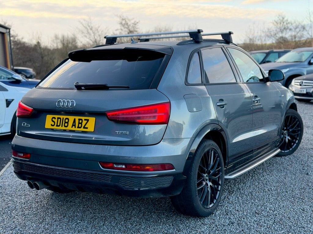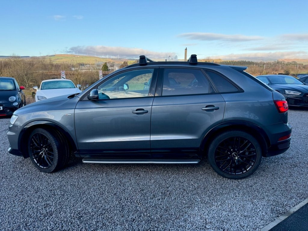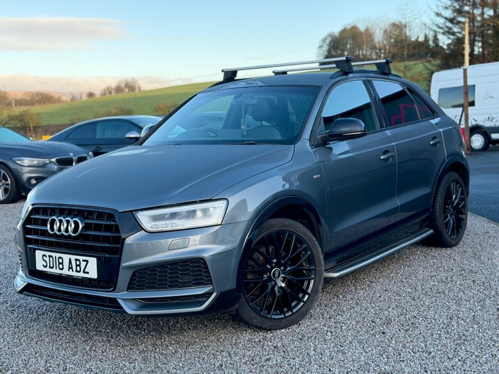 2018 (18) Audi Q3 1.4 TFSI CoD Black Edition S Tronic West Coast Motors are proud to present this lovely 2018 (18) Audi Q3 Black Edition, finished in Daytona Grey with black part leather interior. Powered by the 1.4 TFSI CoD petrol engine producing 150bhp, paired with a smooth S Tronic automatic gearbox. This example has covered 101,000 miles and is a one-owner car from new. It's in excellent condition inside and out with service history present. Factory spec includes BOSE surround sound, sat nav, front and rear parking sensors, cruise control, electric tailgate, flat-bottom leather steering wheel with paddles, LED headlights and rear lights, Bluetooth, DAB, dual-zone climate control, piano black inlays, part-leather/Alcantara interior, and black styling pack throughout. Roof bars are fitted but easily removed if preferred. 2 keys supplied Get in touch today to arrange a test drive or reserve this Audi Q3 Black Edition before it's gone! ???? 3 months Warranty as standard Part exchange welcome Low rate finance available Debit/credit cards accepted AA breakdown cover included 01294 443333 www.wcmotors.co.uk Daytona Grey, Audi Hill Hold Assist, Technology Package, Comfort and Sound Package, 19in Alloy Wheels - 10-Y-Spoke Design - , 4-Way Electric Lumbar Support for Front , 6.5in Colour Display Screen, AMI - Audi Music Interface, Anti Theft Locking Wheel Bolts, Anti-Theft Alarm, Audi Drive Select, Audi Parking System Plus, Auto-Dimming Rear-View Mirror, BOSE Surround Sound System, Black Roof Rails, Black Styling Pack with Black Roof Rails, Bluetooth Interface, Chrome-Plated Trims for Exhaust Tailpipe, Cloth Headlining in Black, Concert Radio, Cruise Control, DAB Digital Radio, Door Mirrors - Heated-Electrically Adjus, Driver - Front Passenger - Front Side an, Drivers Information System - DIS - 3.