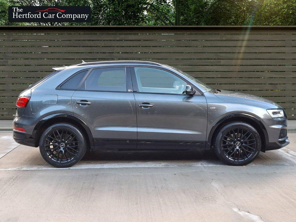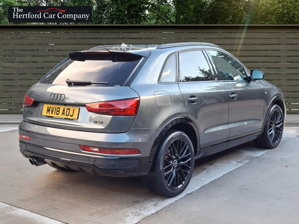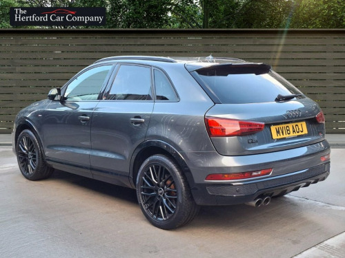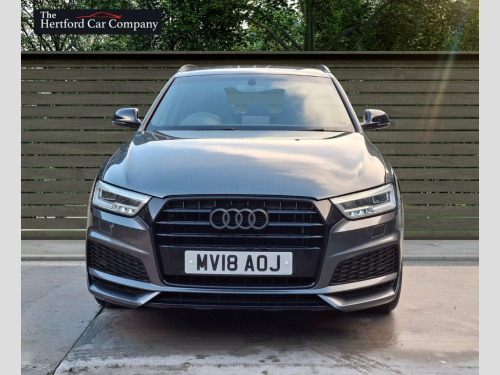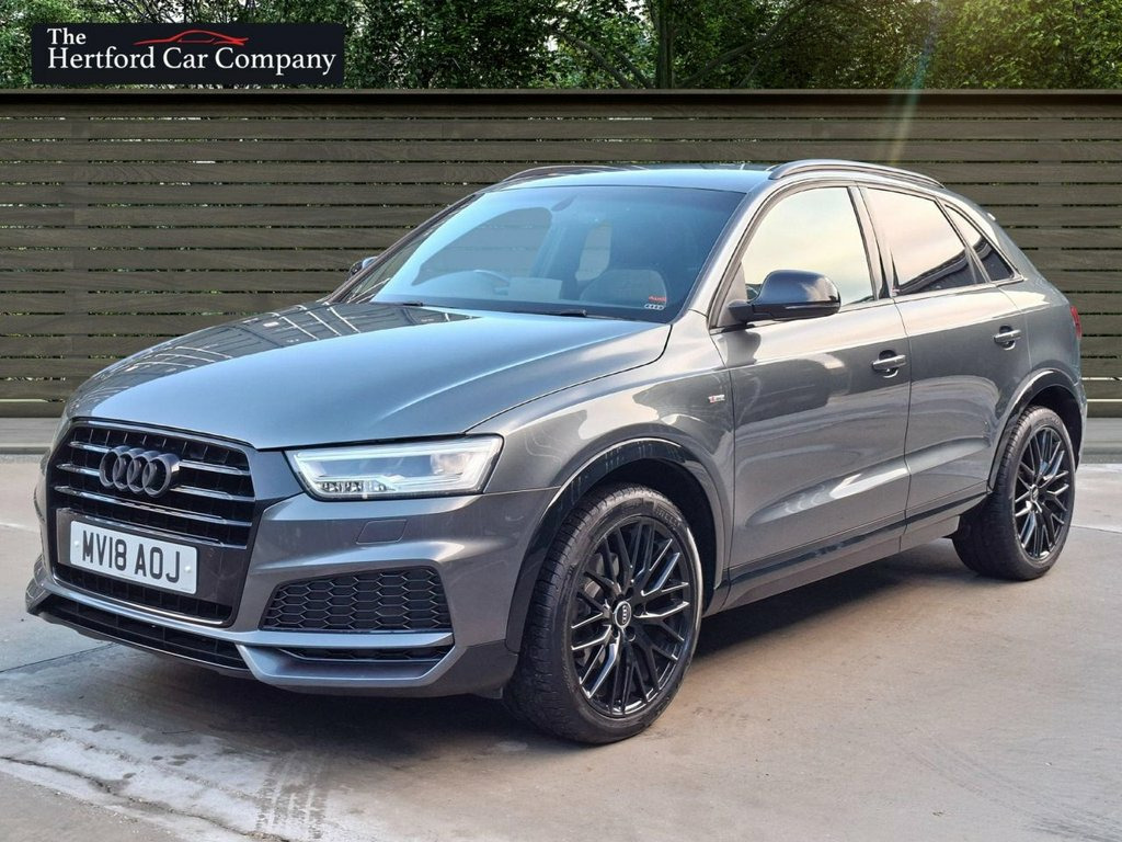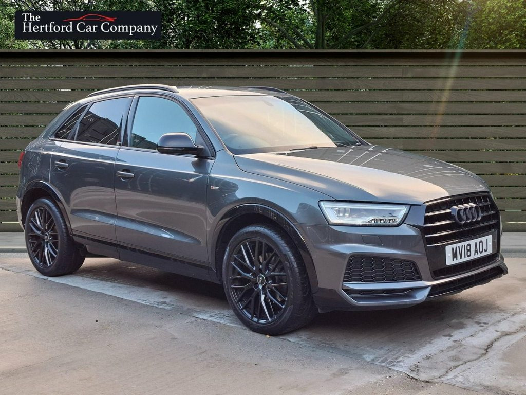 This 2018 Audi Q3 TFSI Black Edition boasts an exceptionally low mileage of just 50,000 miles for its age, complemented by a full service history. This Euro 6 compliant model features a 1.4 litre petrol engine and the desirable Black Edition trim. Notable features include the Comfort and Sound Package, which adds heated seats, a premium branded sound system, and rear parking assistance with a rear camera and sensors. Further enhancing its practicality, the Audi Parking System Plus provides front and rear sensors, while LED headlights with dynamic rear indicators ensure excellent visibility. Inside, you can enjoy the convenience of dual zone electronic climate control and the immersive BOSE surround sound system. The Q3 TFSI Black Edition offers an impressive fuel economy of 46 miles per gallon, making it an economical choice for your journeys. Its acceleration from 0 to 60 miles per hour in just 8.9 seconds indicates a responsive driving experience. These highlights demonstrate how this particular Q3 offers a compelling combination of efficiency, performance, and premium features, setting it apart from other vehicles in its class. Daytona Grey, Audi hill-hold assist, Door mirrors - auto-dimming, electricall, High Gloss Black Door Mirrors and Window, LED Interior Light Package, Auto-Dimming Rear-View Mirror, BOSE Surround Sound System, Cruise control, Comfort and Sound Package, 19in Alloy Wheels - 10-Y-Spoke Design - , 4-Way Electric Lumbar Support for Front , 6.5in Colour Display Screen, AMI - Audi Music Interface, Anti Theft Locking Wheel Bolts, Anti-Theft Alarm, Audi Drive Select, Audi Parking System Plus, Auto-Dimming Rear-View Mirror, Black Roof Rails, Black Styling Pack with Black Roof Rails, Bluetooth Interface, Chrome-Plated Trims for Exhaust Tailpipe, Cloth Headlining in Black, Concert Radio, Cruise Control, D