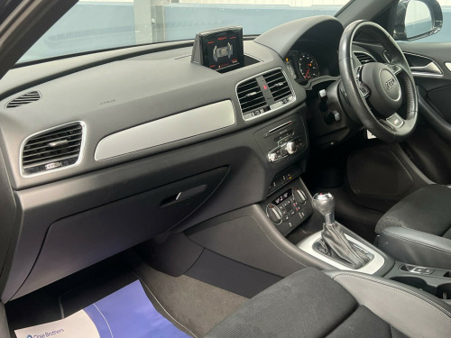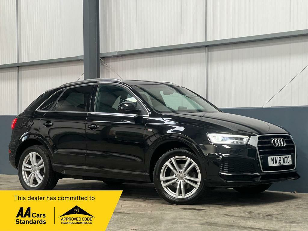 Station Specialist Cars are proud to offer this Audi Q3 1.4 TFSI CoD S line Edition S Tronic. This vehicle boasts a service history. All our vehicles undergo a 307-point mechanical and structural inspection, this even includes computer diagnostics on every car, along with a full HPI Check. At Station Specialist Cars we have over 40 years of experience in the motor industry, and we pride ourselves in getting it right first time. The exterior is finished in Brilliant Black with matching 18'' 10-spoke alloy wheels while the Interior is upholstered in black. As previously mentioned this Audi Q3 has recently undergone a full inspection, Service & MOT. Please ask about low rate financing options. We also offer free local home delivery. We now have three sites across York, Selby and Newcastle. Please call or email the office to enquire where this vehicle is stocked. 07490 026368 or 07999300826., di hill hold assist, rear side airbags, 18in alloy wheels - 5-arm off-road design, door mirrors - heated-electrically adjustable-folding-auto-dimming drivers, privacy glass, comfort and sound package, fine nappa leather - sports seats - s line embossed - black, led interior light package, technology package, perforated alcantara-leather - sports seats - s line embossed - black, 18in alloy wheels - 5-twin-spoke design partly polished, 4-way electric lumbar support for front seats, 6.5in colour display screen, 8 passive speakers, ami - audi music interface, aluminium roof rails, aluminium window trims, anti theft locking wheel bolts, anti-theft alarm, audi drive select, audi parking system plus, auto-dimming rear-view mirror, bluetooth interface, body coloured door mirrors, chrome-plated trims for exhaust tailpipes, cloth headlining in black, concert radio, cruise control, dab digital radio, door mirrors - heated-electrically adjustable-folding, door sill trims with s line logo, driver - front passenger - front side and head airbag system, drivers information system - dis - 3.5in - monochrome display, dual-zone electronic climate control, dynamic suspension, esc - electronic stabilisation control inc abs - asr and edl, electric windows - front, electromechanical parking brake, electromechanical power steering - speed-sensitive provides a precise steering feel at high speeds and excellent assistance when parking., extendable luggage compartment cover, first aid kit and warning triangle, front centre armrest, front lip and rear diffuser in full paint finish - diffuser insert painted platinum grey, front and rear floor mats, front and rear fog lights, gear knob - perforated leather, isofix child seat mounting and top tether, inlays - matt brushed aluminium, led headlights with led rear lights and dynamic rear indicators, light and rain sensor, manual seat adjustment, power operated tailgate, remote central locking, reversible luggage compartment floor, s line badges on front wings, s line body styling, s line radiator grille with horizontal struts in high-gloss black, satellite navigation system - sd card based, seat belt monitoring, secondary collision brake assist, space saver spare wheel, split-folding rear seats, stainless steel loading sill protector, steering wheel - 3-spoke leather-multifunction-shift paddles-q-design, steering wheel - height and reach adjustable, tool kit and car jack, towbar preparation, tyre pressure loss indicator, voice control system, windscreen with acoustic glazing