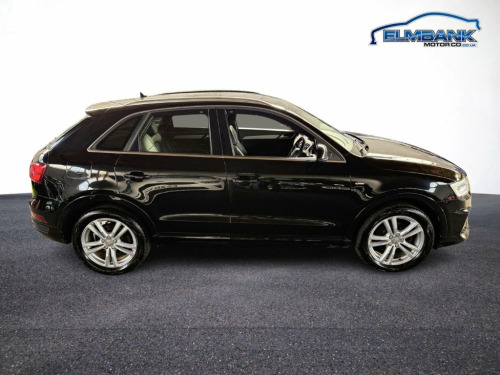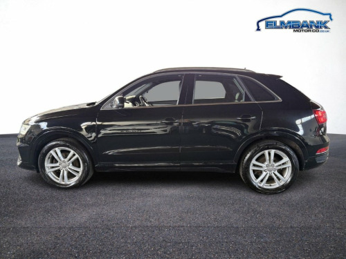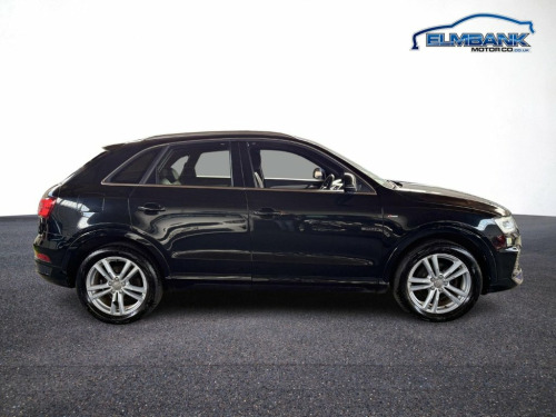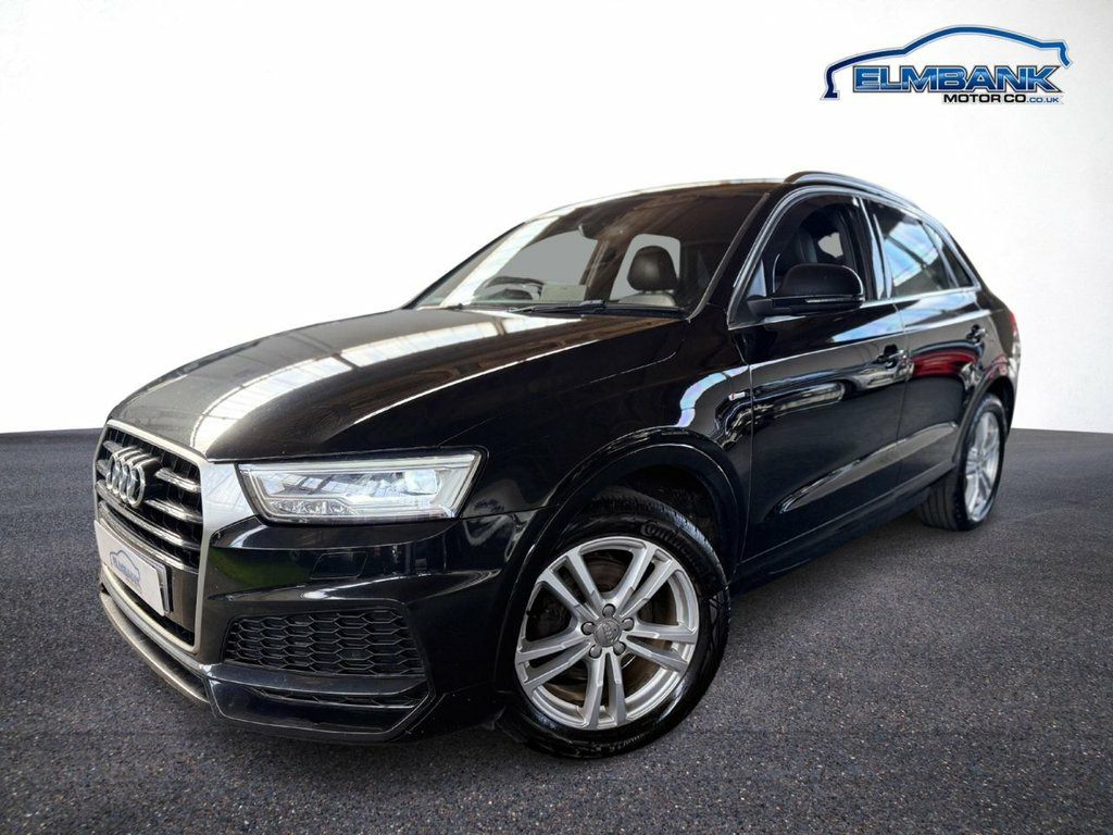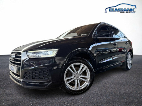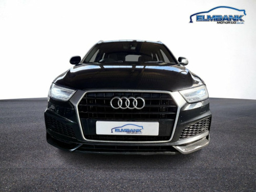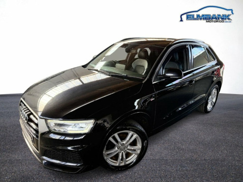 2017 AUDI Q3 1.4 TFSI COD S LINE EDITION SUV 5DR PETROL MANUAL EURO 6 (s/s) (150 ps). ULEZ COMPLIANT, 5 DOOR, MANUAL PETROL SUV IN BLACK. SPECIFICATIONS INCLUDE 6 GEAR MANUAL BOX , BLUETOOTH, NAVIGATION SYSTEM, COLOUR CODED BODY, CRUISE CONTROL, FRONT AND REAR PARKING SENSOR, XENON HEADLAMPS, ISOFIX, ALLOY WHEELS, CLIMATE CONTROL, CENTRAL LOCKING, PARTIAL LEATHER SEAT TRIM, IMMOBILISER AND CD/RADIO. LOW ROAD TAX. SUPPLIED WITH 12 MONTHS MOT INCLUDING PRE DELIVERY SERVICE AND INSPECTION. WE CAN OFFER BESPOKE FINANCE PACKAGES AND PART EXCHANGE FACILITIES. FOR MORE INFORMATION PLEASE CONTACT ELMBANK MOTOR COMPANY. 18in Alloy Wheels - 5-Twin-Spoke Design , 4-Way Electric Lumbar Support for Front , 6.5in Colour Display Screen, 8 Passive Speakers, AMI - Audi Music Interface, All Weather LED Headlights, Aluminium Roof Rails, Aluminium Window Trims, Anti Theft Locking Wheel Bolts, Audi Drive Select, Audi Parking System Plus, Auto-Dimming Rear-View Mirror, Bluetooth Interface, Body Coloured Door Mirrors, Chrome-Plated Trims for Exhaust Tailpipe, Cloth Headlining and Dashboard in Black, Concert Radio, Cruise Control, DAB Digital Radio, Door Mirrors - Heated-Electrically Adjus, Door Sill Trims with S Line Logo, Driver - Front Passenger - Front Side an, Drivers Information System - DIS, Dual-Zone Electronic Cl