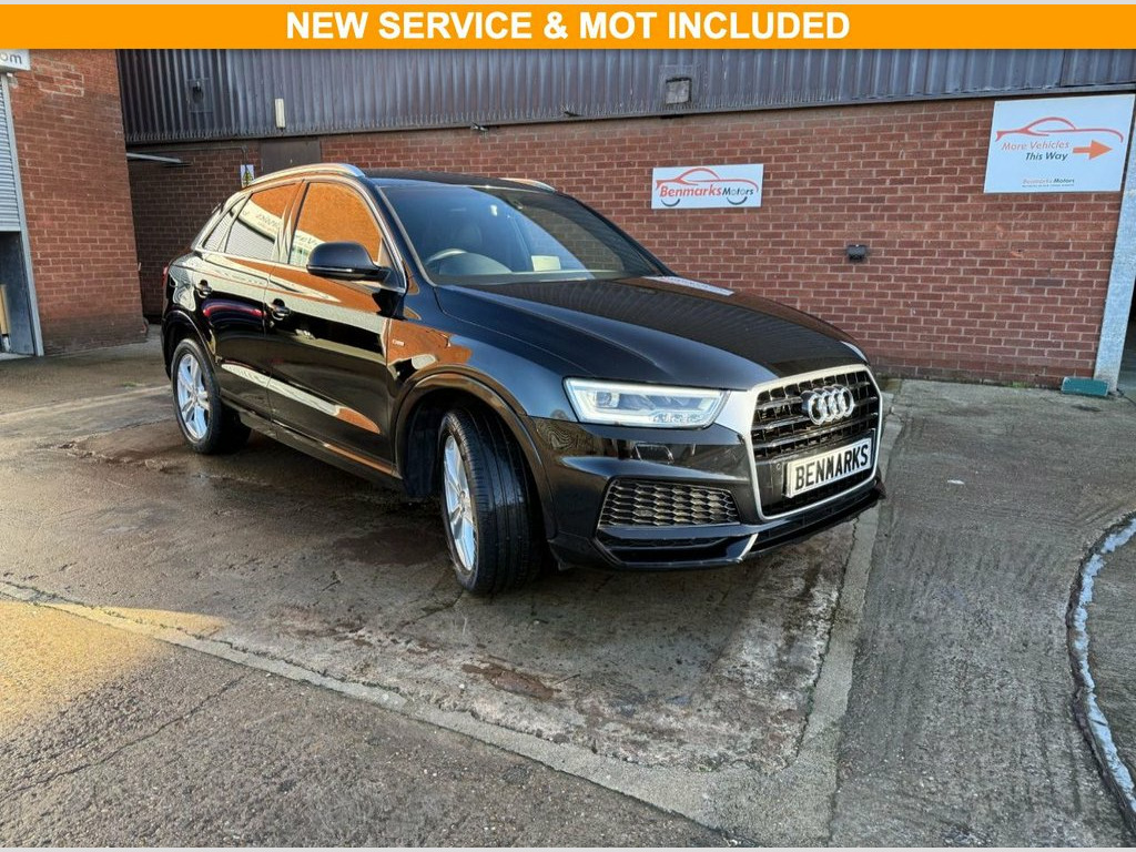This 2017 Audi Q3 1.4 TFSI CoD S line Edition is a stylish and refined compact SUV that delivers premium quality, strong performance, and impressive efficiency. Finished in sleek black, it has covered 53,660 miles and is powered by Audi's reliable 1.4-litre turbocharged petrol engine producing 150 PS. Paired with a 6-speed manual gearbox and Euro 6 compliant, it provides a smooth, responsive drive that's ideal for both city use and long-distance journeys. It comes with proof of 5 services and will benefit from a fresh service and a new 12-month MOT at point of sale for complete peace of mind. Road tax is just £195 per year, making this Q3 both practical and affordable to run. As an S line Edition, it features sportier styling, upgraded alloy wheels, half-leather sport seats, LED lighting, and Audi's premium interior finish. It combines SUV practicality with the sharp handling and refined comfort Audi is known for. Supplied with 2 keys and a 6-Months Warranty included free of charge, with options to upgrade for extended cover, this Q3 offers exceptional value for money. With its premium design, strong service record, and solid reputation for reliability, this Audi Q3 S line Edition is a fantastic opportunity to own a stylish and versatile SUV. 18in Alloy Wheels - 5-Twin-Spoke Design , 4-Way Electric Lumbar Support for Front , 6.5in Colour Display Screen, 8 Passive Speakers, Aluminium Roof Rails, Aluminium Window Trims, AMI - Audi Music Interface, Anti Theft Locking Wheel Bolts, Anti-Theft Alarm, Audi Drive Select, Audi Parking System Plus, Auto-Dimming Rear-View Mirror, Bluetooth Interface, Body Coloured Door Mirrors, Chrome-Plated Trims for Exhaust Tailpipe, Cloth Headlining in Black, Concert Radio, Cruise Control, DAB Digital Radio, Door Mirrors - Heated-Electrically Adjus, Door Sill Trims with S Line Logo, Driver - Front Passenger - Front Side an, Drivers Information System - DIS - 3.5in, Dual-Zone Electronic Climate Control, D