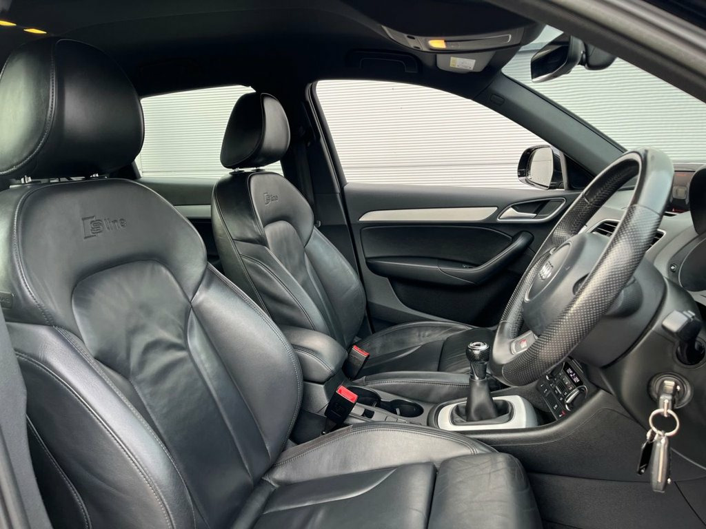 This 2017 Audi Q3 TFSI S line Edition offers a compelling blend of style and efficiency, boasting a remarkable fuel economy of up to 50 miles per gallon. As a Euro 6 compliant vehicle, it represents a commitment to lower emissions, making it a sensible choice for the environmentally conscious driver. The S line Edition trim signifies a sporty and refined aesthetic, complemented by the responsive 1.4 litre petrol engine. The performance of this Q3 is noteworthy, achieving 0 to 60 miles per hour in just 9.2 seconds. This acceleration figure, combined with its impressive fuel economy and low CO2 emissions, demonstrates how this Audi Q3 TFSI S line Edition stands out from other vehicles in its class, offering a superior driving experience that balances spirited performance with economical running costs. 18in Alloy Wheels - 5-Twin-Spoke Design , 4-Way Electric Lumbar Support for Front , 6.5in Colour Display Screen, 8 Passive Speakers, AMI - Audi Music Interface, Aluminium Roof Rails, Aluminium Window Trims, Anti Theft Locking Wheel Bolts, Anti-Theft Alarm, Audi Drive Select, Audi Parking System Plus, Auto-Dimming Rear-View Mirror, Bluetooth Interface, Body Coloured Door Mirrors, Chrome-Plated Trims for Exhaust Tailpipe, Cloth Headlining in Black, Concert Radio, Cruise Control, DAB Digital Radio, Door Mirrors - Heated-Electrically Adjus, Door Sill Trims with S Line Logo, Driver - Front Passenger - Front Side an, Drivers Information System - DIS - 3.5in, Dual-Zone Electronic Climate Control, D