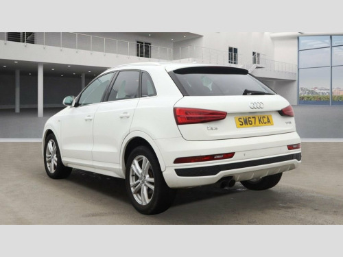 Why This Audi Q3 Wins? This 2017 Audi Q3 TFSI S line Edition blends premium design with impressive efficiency, delivering up to 50 mpg from its responsive 1.4L petrol engine while meeting Euro 6 emissions standards. With its sporty S line Edition styling and refined driving dynamics, it's an ideal compact SUV for those wanting Audi quality without sacrificing running costs. Capable of accelerating from 0–62 mph in just 9.2 seconds, it strikes a confident balance between performance and economy. Inside and out, this Q3 feels every bit the premium choice. It's equipped with All Weather LED Headlights, a Light and Rain Sensor for automatic lighting, and Audi Parking System Plus with front and rear sensors for stress-free manoeuvring. The cabin offers Dual-Zone Electronic Climate Control for personalised comfort and a Bluetooth interface to keep you seamlessly connected on every journey. Your Peace of Mind? - Clear vehicle history check - Optional 3–36-month extendable warranties - Free 12-month AA roadside assistance - Fully prepared to showroom standard with its existing MOT and servicing, and we can organise any further MOT or service enhancements at your request. - Drive Away, Insurance Available - No hidden or extra costs, like admin fees Autotrader's 2024 Insights: Top 3 Q3 Buyer Priorities: - Low running costs and strong fuel economy - Premium interior quality and comfort - Advanced safety and parking technology - This Q3 delivers 6.5in Colour Display Screen, 8 Passive Speakers, AMI - Audi Music Interface, Bluetooth Interface, Concert Radio, DAB Digital Radio, Drivers Information System - DIS - 3.5in, Satellite Navigation System - SD Card Ba, Towbar Preparation, Privacy Glass, 18in Alloy Wheels - 5-Twin-Spoke Design , Aluminium Roof Rails, Aluminium Window Trims, Anti Theft Locking Wheel Bolts, Body Coloured Door Mirrors, Chrome-Plated Trims for Exhaust Tailpipe, Door Mirrors - Heated-Electrically Adjus, Electric Windows - Front, Front Lip and Rear Diffuser in Full Pain, S Line Badges on Front Wings, S Line Body Styling, S Line Radiator Grille with Horizontal S, Space Saver Spare Wheel, Windscreen with Acoustic Glazin