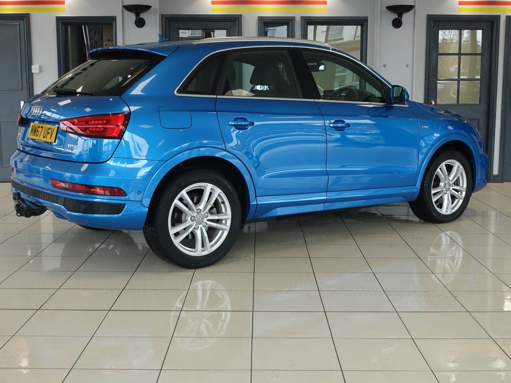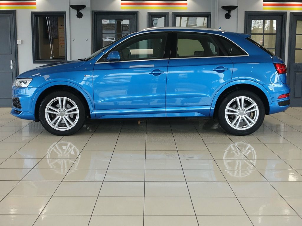 FINISHED IN A STUNNING METALLIC HAINAN BLUE, COMPLIMENTED WITH BLACK HALF LEATHER, SPORT SEATS + WITHOUT QUESTION THE HIGHEST PEDIGREE, LOW MILEAGE Q3 AVAILABLE  - 1 OWNER FROM NEW AND COMES WITH AN IMPECCABLE, FULL AUDI MAIN DEALER SERVICE HISTORY + SATELLITE NAVIGATION + PARK ASSIST WITH REAR VIEW CAMERA + BLUETOOTH PHONE CONNECTIVITY INCLUDING MEDIA STREAMING + AUDI FITTED TOW BAR + DUAL ZONE CLIMATE CONTROL + AIR CONDITIONING + LEATHER MULTI FUNCTIONAL STEERING WHEEL + FRONT AND REAR PARKING SENSORS + CRUISE CONTROL + PRIVACY GLASS + LED DAY TIME RUNNING LIGHTS + AUTOMATIC WIPERS WITH RAIN SENSORS + ELECTRIC WINDOWS + ELECTRIC POWERFOLDING, HEATED DOOR MIRRORS + 18 INCH ALLOY WHEELS + AUTO DIMMING REAR VIEW MIRROR + ROOF RAILS + ROOF SPOILER + 60/40 FOLDING REAR SEATS.... ***NOT SURE YOU'RE ELIGIBLE FOR CAR FINANCE? CHECK TODAY USING THE FREE CAR FINANCE CHECKER ON OUR WEBSITE.*** Dace Motor Group have a dedicated team of finance experts waiting to help with your enquiry. Over the past 30 years we have forged relationships with the countrys largest and best finance houses. We are specialists in Hire Purchase (HP), Personal Contract Purchase (PCP) as well as assisting those with poor credit or previous credit problems. ------------ABOUT US------------ At Dace Specialist Car Centre Stockport, we are very proud to have been named the first Trading Standards Approved Car Retailer, with process and procedures developed with and applauded by them. We do recommend that cust 18in Alloy Wheels - 5-Twin-Spoke Design , 4-Way Electric Lumbar Support for Front , 6.5in Colour Display Screen, 8 Passive Speakers, Aluminium Roof Rails, Aluminium Window Trims, AMI - Audi Music Interface, Anti Theft Locking Wheel Bolts, Anti-Theft Alarm, Audi Drive Select, Audi Parking System Advanced with Revers, Audi Parking System Advanced with Revers, Audi Parking System Plus, Auto-Dimming Rear-View Mirror, Bluetooth Interface, Body Coloured Door Mirrors, Chrome-Plated Trims for Exhaust Tailpipe, Cloth Headlining in Black, Concert Radio, Cruise Control, Customised Paint, DAB Digital Radio, Door Mirrors - Heated-Electrically Adjus, Door Mirrors - Heated-Electrically Adjus, Door Sill Tri
