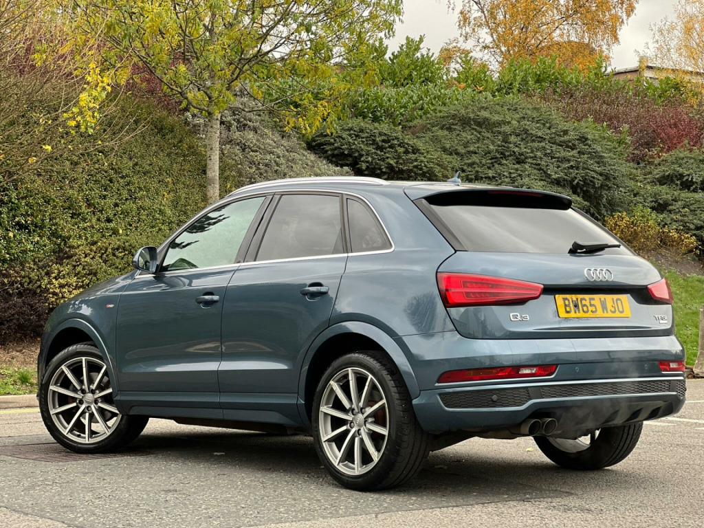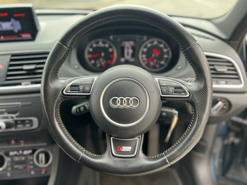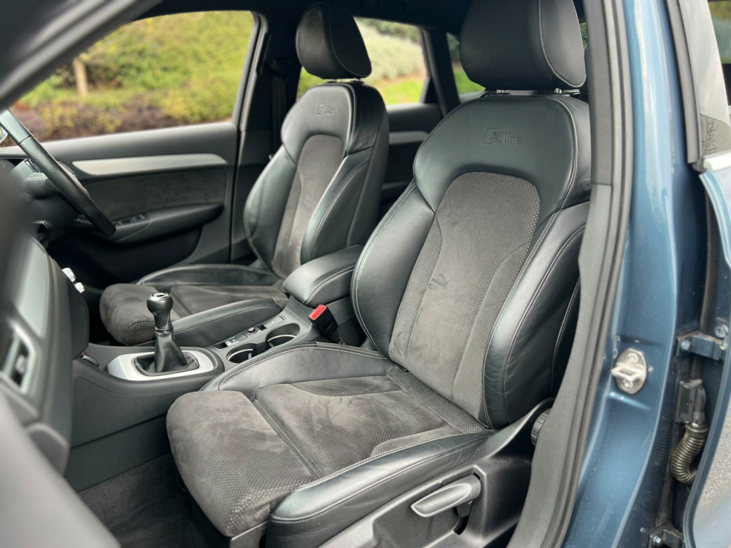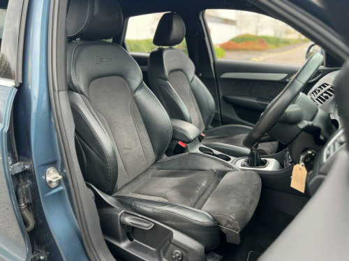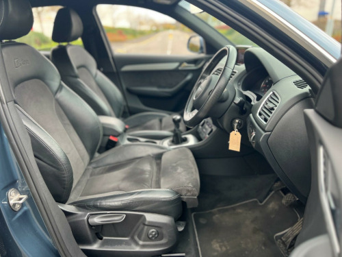 Audi Q3 1.4 TFSI 150 S LINE StationWagon Manual Petrol Finished in Blue. 80880 warranted miles on the clock. MOT til 05th September 2026. 1 former keepers from new. Service History Available; 2 Main dealer services. Car drives well with no mechanical faults. Full V5 available. Comes with a top spec including; Parking Sensor, Climate Control, Half Leather Trim, Space Saver Spare Wheel, 19'' Alloy Wheels, Privacy Glass, leather steering wheel, multi-functional steering wheel, cruise control, Radio DAB/FM, electric windows, central locking, AC/Climate control, Bluetooth, Sweeping Indicators, Leather Steering wheel, Multi-Functional Steering Wheel, automatic headlights, TPMS, cup holders and many more. Nationwide delivery available. P/X welcome. HPI clear. ULEZ compliant. Any questions do not hesitate to contact us on 07443456706 v power socket - rear centre console, 18in alloy wheels - 5-twin spoke design, 6.5in display screen, abs - anti-lock braking system, ami - audi music interface, asr - anti slip regulation, airbags - driver, airbags - front passenger, airbags - front side, airbags - head system, alarm - thatcham category 1, all weather led headlights, aluminium-effect door mirror housings, anti theft locking wheel bolts, audi drive select, automatic wipers with rain sensor, brake lights - led, bumpers - front and rear - s line design, car jack, cloth headlining in black, concert radio - mp3/cd player, dab digital radio, dashboard - black, diffuser insert and centre front spoiler lip painted in platinum grey, door mirrors - automatic kerb view dipping function when reversing, door mirrors - body coloured with integrated led indicators, door mirrors - heated-electrically adjustable-folding, door sill trims with s line logo, drivers information system - dis, dual-zone electronic climate control, dynamic rear indicators, dynamic suspension, ebd - electronic brakeforce distribution, edl - electronic differential lock, esp - electronic stability programme, electric windows - front and rear, electrically adjustable 4-way lumbar support, electromechanical parking brake, electromechanical power steering, exhaust tailpipe - chrome plated, first aid kit, floor mats - front and rear in velour, folding storage compartment in front centre armrest, front centre armrest - adjustable, front fog lights, front passenger airbag deactivation switch, full paint finish, gear knob - perforated leather, headlights - automatic activation, headlights - automatic adjustment, headlights - automatic dynamic range control, headlights - coming-leaving home function, headlights washers, heated windscreen washer jets, isofix child seat mounting for front passenger, isofix child seat preparation for rear seats with top tether, inlays - matt brushed aluminium, led daytime running lights, led rear indicators, led rear lights, manual front seat adjustment, mobile telephone preparation - bluetooth interface, power operated tailgate, preparation for sd card-based navigation system, radiator grille - with vertical chrome bars, rear parking sensors, remote central locking with 2 fold away keys, reversible luggage compartment floor, roof rails - aluminium, s line badges on front wings, s line body styling, sdhc card reader x2, seat belt reminder, seats - front sports - s line embossed, secondary collision brake assist, smoking package, space saver spare wheel, speakers x8, split-folding rear seats, stainless steel loading sill protector, steering wheel - 3-spoke leather-multifunction-q-design, steering wheel - height and reach adjustable, steering wheel - multi-function, sunband for windscreen, tp memo - automatically saves traffic news, tool kit, towbar preparation, trip computer, tyre pressure monitoring system, voice control - telephone, warning triangle, washer fluid level indicator, window surrounds - aluminium