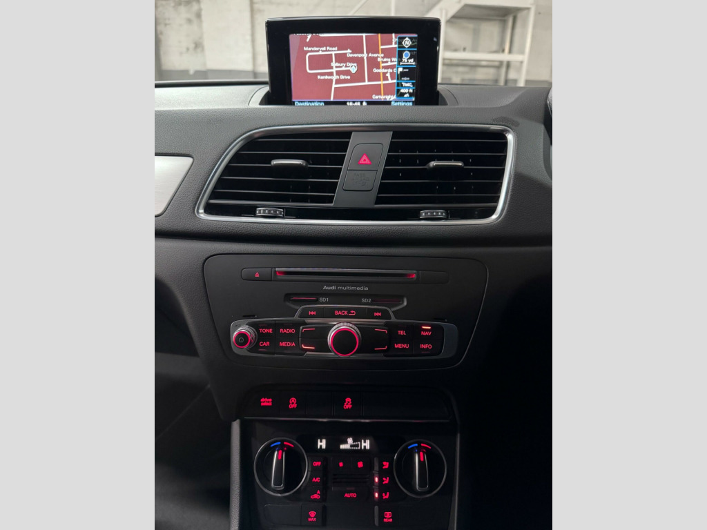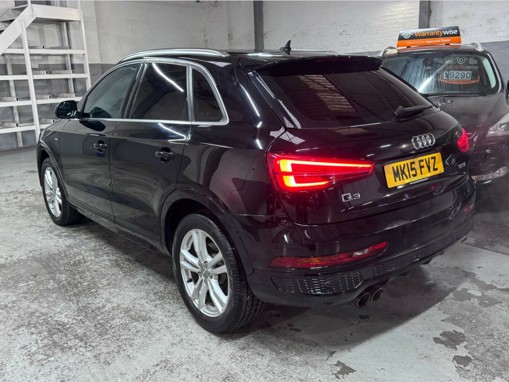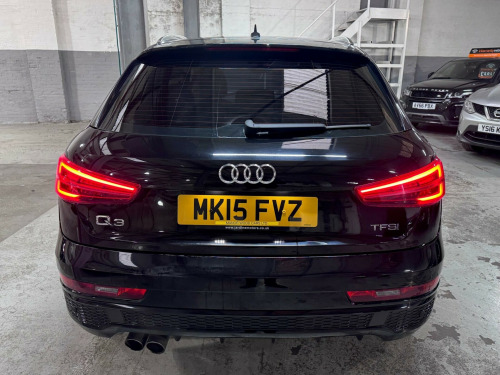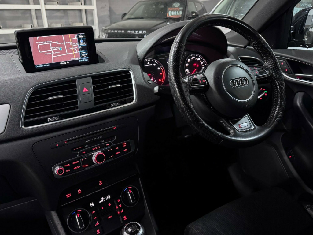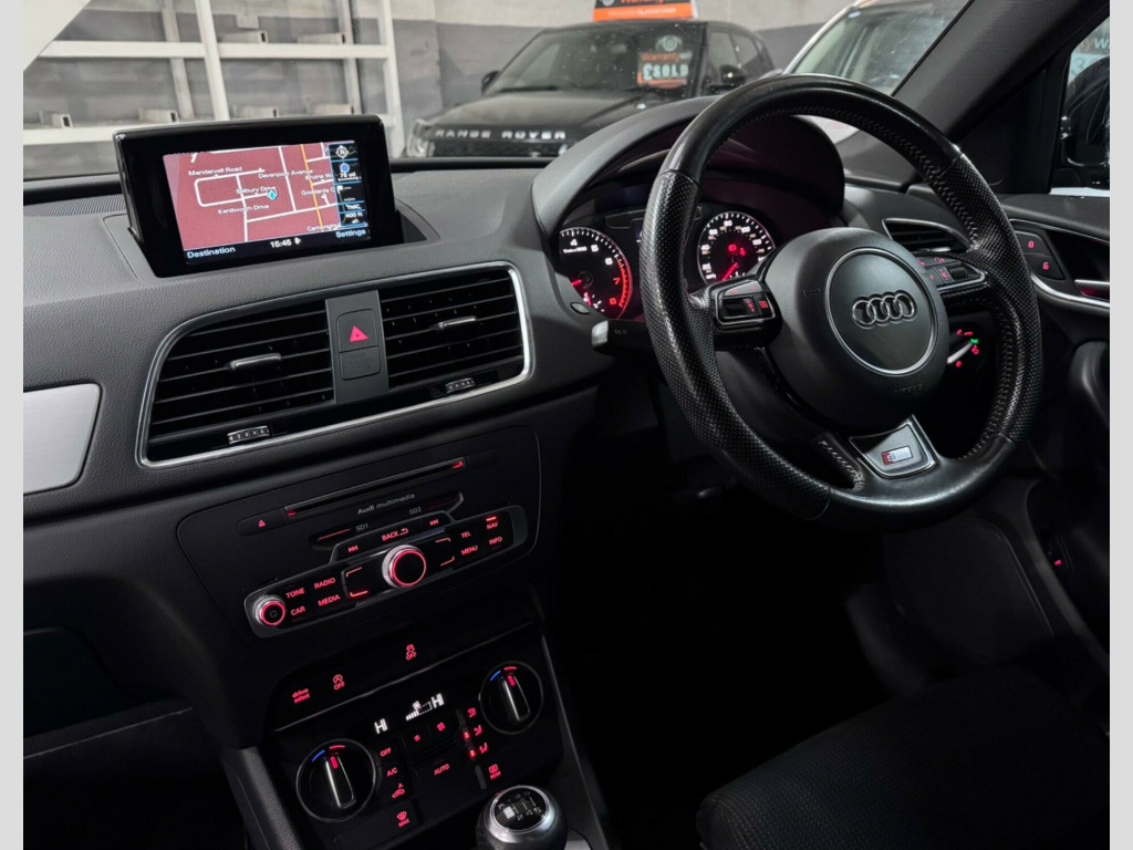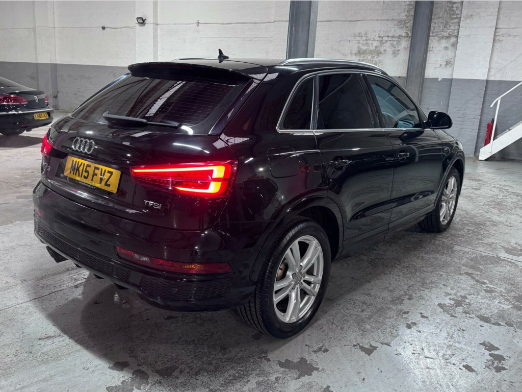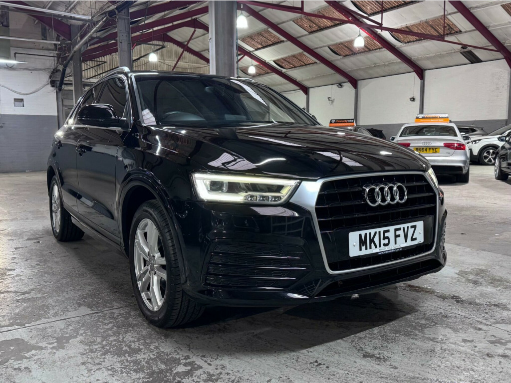 With an MOT valid until November 2026, this Audi Q3 TFSI S line offers excellent peace of mind. Registered in 2015, this S line variant is equipped with a 1.4 litre petrol engine and meets Euro 6 emissions standards. It benefits from a partial service history, with the last service completed on 24 November 2025. Notable features include Satellite Navigation, Reverse parking sensors, mobile telephone preparation with Bluetooth, privacy glass for added discretion, and rear parking sensors to assist with manoeuvring. The vehicle also boasts all weather Xenon LED headlights with automatic activation, ensuring optimal visibility in various conditions.This Audi Q3 TFSI S line delivers an impressive fuel economy of 50 miles per gallon, making it an economical choice for your journeys. Its low CO2 emissions further contribute to its environmental credentials. For those who appreciate performance, it accelerates from 0 to 60 miles per hour in just 8.9 seconds. These highlights demonstrate how this Q3 stands out from other vehicles in its class, offering a compelling blend of efficiency, technology, and driving dynamics.. 12V Power Socket - Rear Centre Console, 18in Alloy Wheels - 5-Twin Spoke Design, 6.5in Display Screen, ABS - Anti-Lock Braking System, AMI - Audi Music Interface, ASR - Anti Slip Regulation, Airbags - Driver, Airbags - Front Passenger, Airbags - Front Side, Airbags - Head System, Alarm - Thatcham Category 1, All Weather LED Headlights, Aluminium-Effect Door Mirror Housings, Anti Theft Locking Wheel Bolts, Audi Drive Select, Automatic Wipers with Rain Sensor, Brake Lights - LED, Bumpers - Front and Rear - S Line Design, Car Jack, Cloth Headlining in Black, Concert Radio - MP3/CD Player, DAB Digital Radio, Dashboard - Black, Diffuser Insert and Centre Front Spoiler Lip Painted in Platinum Grey, Door Mirrors - Automatic Kerb View Dipping Function When Reversing, Door Mirrors - Body Coloured with Integrated LED Indicators, Door Mirrors - Heated-Electrically Adjustable-Folding, Door Sill Trims with S Line Logo, Drivers Information System - DIS, Dual-Zone Electronic Climate Control, Dynamic Rear Indicators, Dynamic Suspension, EBD - Electronic Brakeforce Distribution, EDL - Electronic Differential Lock, ESP - Electronic Stability Programme, Electric Windows - Front and Rear, Electrically Adjustable 4-Way Lumbar Support, Electromechanical Parking Brake, Electromechanical Power Steering, Exhaust Tailpipe - Chrome Plated, First Aid Kit, Floor Mats - Front and Rear in Velour, Folding Storage Compartment in Front Centre Armrest, Front Centre Armrest - Adjustable, Front Fog Lights, Front Passenger Airbag Deactivation Switch, Full Paint Finish, Gear Knob - Perforated Leather, Headlights - Automatic Activation, Headlights - Automatic Adjustment, Headlights - Automatic Dynamic Range Control, Headlights - Coming-Leaving Home Function, Headlights Washers, Heated Windscreen Washer Jets, ISOFIX Child Seat Mounting for Front Passenger, ISOFIX Child Seat Preparation for Rear Seats with Top Tether, Inlays - Matt Brushed Aluminium, LED Daytime Running Lights, LED Rear Indicators, LED Rear Lights, Manual Front Seat Adjustment, Mobile Telephone Preparation - Bluetooth Interface, Power Operated Tailgate, Preparation for SD Card-Based Navigation System, Radiator Grille - with Vertical Chrome Bars, Rear Parking Sensors, Remote Central Locking with 2 Fold Away Keys, Reversible Luggage Compartment Floor, Roof Rails - Aluminium, S Line Badges on Front Wings, S Line Body Styling, SDHC Card Reader x2, Seat Belt Reminder, Seats - Front Sports - S Line Embossed, Secondary Collision Brake Assist, Smoking Package, Space Saver Spare Wheel, Speakers x8, Split-Folding Rear Seats, Stainless Steel Loading Sill Protector, Steering Wheel - 3-Spoke Leather-MultiFunction-Q-Design, Steering Wheel - Height and Reach Adjustable, Steering Wheel - Multi-function, Sunband for Windscreen, TP Memo - Automatically Saves Traffic News, Tool Kit, Towbar Preparation, Trip Computer, Tyre Pressure Monitoring System, Voice Control - Telephone, Warning Triangle, Washer Fluid Level Indicator, Window Surrounds - Aluminium, Satellite Navigation System - SD Card Based, Sprint Cloth-Leather - Sport Seats - S Line Embossed Logo - Black, Mobile Telephone Preparation - Low with Bluetooth, Privacy Glass. Part service history