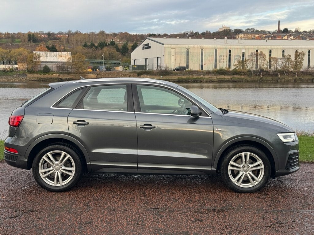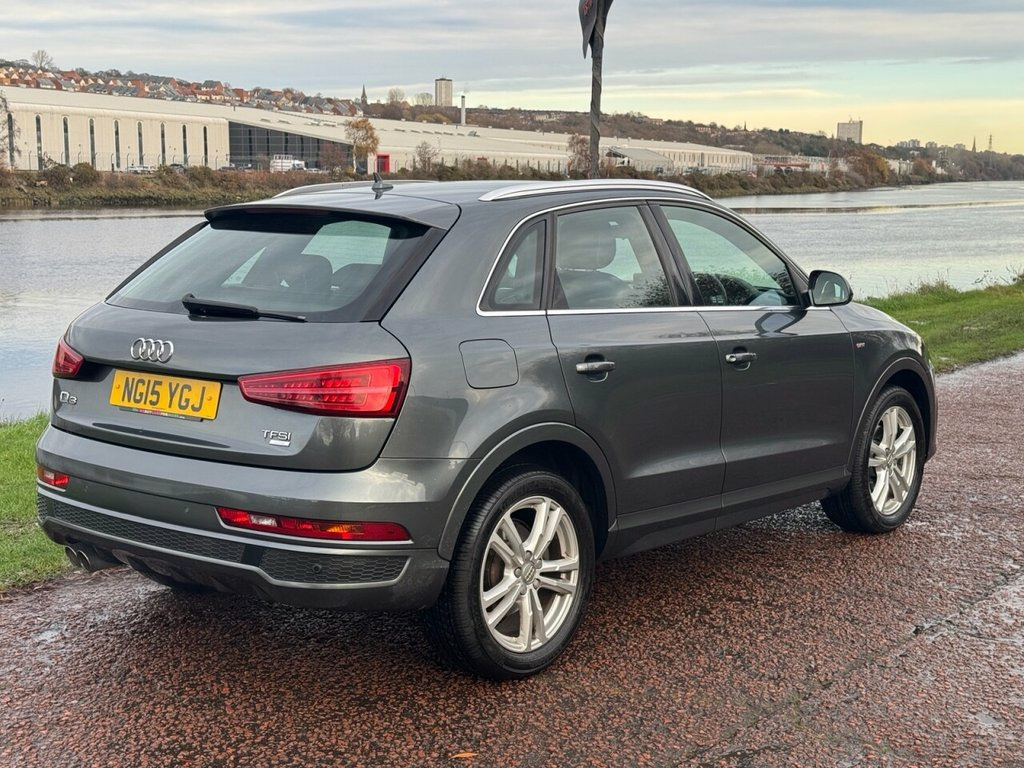 STUNNING AUDI Q3 IN DAYTONA GREY WITH 18" ALLOY WHEELS, CHROME TRIM, ROOF RAILS, FRONT AND REAR PARKING SENSORS, THIS CAR IS IMMACULATE AND COMES WITH SOME LOVELY SPEC INCLUDING S LINE EMBOSSED PART LEATHER SEATS, MULTI FUNCTIONING STEERING WHEEL, CENTRAL ARM REST, DUAL AIR CON, AUTO LIGHTS, AUDI DRIVE SELECT, BLUETOOTH, DAB AND LOTS MORE THIS CAR COMES WITH A FULL SERVICE HISTORY, SERVICED EVERY YEAR LAST DONE IN JULY 2025 ALONG WITH 4 TYRES. 12V Power Socket - Rear Centre Console, 18in Alloy Wheels - 5-Twin Spoke Design, 6.5in Display Screen, ABS - Anti-Lock Braking System, Airbags - Driver, Airbags - Front Passenger, Airbags - Front Side, Airbags - Head System, Alarm - Thatcham Category 1, All Weather LED Headlights, AMI - Audi Music Interface, Anti Theft Locking Wheel Bolts, ASR - Anti Slip Regulation, Audi Drive Select, Automatic Wipers with Rain Sensor, Brake Lights - LED, Bumpers - Front and Rear - S Line Design, Car Jack, Cloth Headlining in Black, Concert Radio - MP3/CD Player, DAB Digital Radio, Dashboard - Black, Diffuser Insert and Centre Front Spoiler, Door Mirrors - Automatic Kerb View Dippi, Door Mirrors - Body Colo