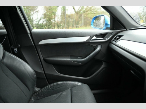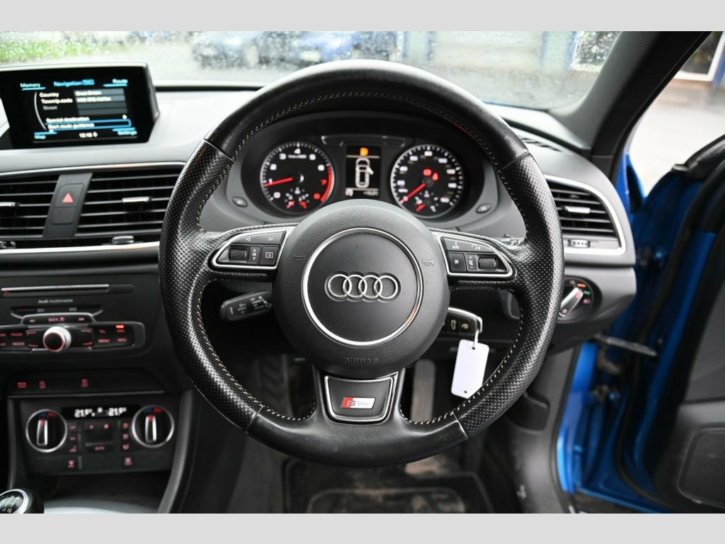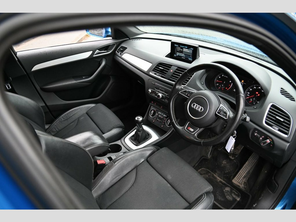 Prestige Car Supermarket in York presents the 2015 Audi Q3 1.4 TFSI CoD S line, finished in Hainan Blue with Sprint Cloth-Leather Sport seats featuring S line embossing, complemented by privacy glass and upgraded 19in 5-Spoke V-Design Titanium finish alloys. Exterior enhancements include S line body styling, full paint finish, aluminium window surrounds, aluminium-effect mirror housings, roof rails, platinum grey front spoiler lip and diffuser insert, LED headlights with washers, LED daytime running lights, LED rear lights, dynamic rear indicators, chrome-plated exhaust tailpipe and heated, electrically adjustable and folding mirrors with kerb-view dipping. The interior offers Matt Brushed Aluminium inlays, black cloth headlining, a 6.5in display screen, Concert radio with DAB, Audi Music Interface, Bluetooth preparation, SDHC readers, voice control and the Driver Information System. Comfort and convenience are supported by dual-zone electronic climate control, manual front seat adjustment with 4-way lumbar, adjustable front armrest with storage, reversible boot floor, power-operated tailgate, rear parking sensors, automatic wipers, automatic headlights, heated washer jets and electromechanical parking brake. Safety and driving functions include Audi Drive Select, dynamic suspension, ASR, EBD, EDL, ESP, Secondary Collision Brake Assist, ISOFIX front and rear with top tether, multiple airbags, TP Memo, tyre pressure monitoring, alarm, anti-theft wheel bolts and remote central Sprint Cloth-Leather - Sport Seats - S L, Hainan Blue, Privacy Glass, 19in Alloy Wheels - 5-Spoke V Design Tit, 12V Power Socket - Rear Centre Console, 6.5in Display Screen, ABS - Anti-Lock Braking System, AMI - Audi Music Interface, ASR - Anti Slip Regulation, Airbags - Driver, Airbags - Front Passenger, Airbags - Front Side, Airbags - Head System, Alarm - Thatcham Category 1, All Weather LED Headlights, Aluminium-Effect Door Mirror Housings, Anti Theft Locking Wheel Bolts, Audi Drive Select, Automatic Wipers with Rain Sensor, Brake Lights - LED, Bumpers - Front and Rear - S Line Design, Cloth Headlining in Black, Concert Radio - MP3/CD Player, DAB Digital Radio, Dashboard - Black, Diffuser