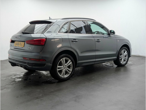 18" alloys, Navigation, Comfort package, Audi drive select and Bluetooth. Last service done at 26445 miles. With an exceptionally low mileage of just 26,400 miles for a 2016 model, this Audi Q3 TFSI S line presents a remarkable find. This Euro 6 compliant vehicle has had only two owners and boasts a clear vehicle history check, ensuring peace of mind. Its S line trim level is complemented by a responsive 1.4 litre petrol engine and comes equipped with All Weather LED Headlights, a Bluetooth Interface for seamless connectivity, Dual-Zone Electronic Climate Control for personalised comfort, and a Light and Rain Sensor for automatic headlight activation. For added convenience, it also features Rear Parking Sensors to assist with manoeuvring. This Audi Q3 TFSI S line offers impressive performance and efficiency, achieving 0-60mph in just 8.6 seconds, a testament to its dynamic capabilities. Its fuel economy is a notable highlight, returning an excellent 48 miles per gallon, which is better than many similar vehicles. Furthermore, its low CO2 emissions contribute to a more environmentally conscious drive. With an MOT valid until October 2026, this well maintained Q3 is ready for its next owner. 18in Alloy Wheels - 5-Twin-Spoke Design , 3-Spoke Multi-Function Q-Design Steering, 4-Way Electric Lumbar Support for Front , 6.5in Display Screen, 8 Passive Speakers, All Weather LED Headlights, Aluminium Roof Rails, Aluminium Window Trims, AMI - Audi Music Interface, Anti Theft Locking Wheel Bolts, Audi Drive Select, Bluetooth Interface, Body-Coloured Door Mirrors - Electricall, Bright Moulding, Chrome-Plated Trims for Exhaust System, Cloth Headlining and Dashboard in Black, Comfort Package, Concert Radio, DAB Digital Radio, Door Mirrors - Heated-Electrically Adjus, Door Sill Trims with S Line Logo, Driver - Front Passenger - Front Side an, Drivers Information System - DIS, Dual-Zone Elect